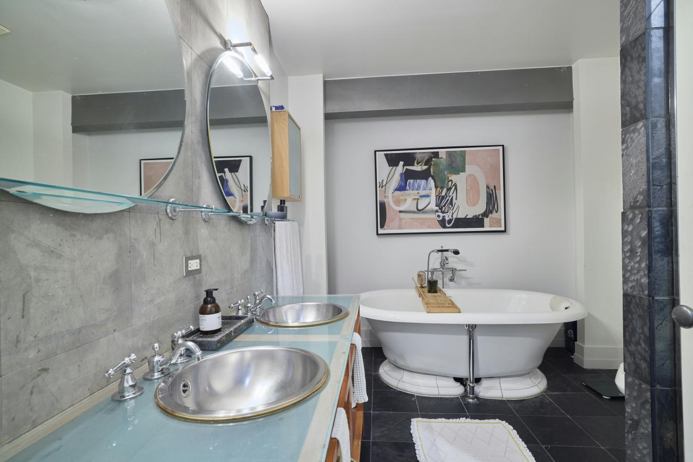This meticulously renovated Tribeca loft seamlessly blends the iconic character of the neighborhood with contemporary luxury living. Atop a 5- story walkup and crowned with a 420 SF private roof deck this home offers a unique layout of multiple levels and an unparalleled indoor-outdoor living experience in one of NYCs most coveted neighborhoods. Tucked away on a picturesque, tree-lined street, this 2-bed, 2.5-bath loft exudes classic Tribeca charm-soaring beamed ceilings, exposed brick, and a stunning wall of floor-to-ceiling windows where you can enjoy sunset views over the cobblestone streets and eclectic architecture of the surrounding area. The gourmet kitchen seamlessly integrates into the living/dining area, featuring Carrara marble countertops and top-tier Bosch and Bertazzoni appliances. Thoughtfully designed for privacy, both bedrooms have en-suite baths and generous closet space, positioned on opposite sides of the loft. Enter the primary suite through a salvaged freight elevator door from the original manufacturing space, where youll find 14 ceilings, a skylight, a sitting area perfect for a home office or dressing room, a walk-in closet, and a luxurious marble bath with a deep soaking tub. A retractable staircase in the living room leads to a landscaped private outdoor space with additional access to the buildings furnished common roof deck. As an added bonus, the original mechanical room for the buildings freight elevator shaft has been reconstructed into a flexible space unlike any other in NYC. With its own heating/cooling system, this space is ideal as a gym, home office, studio, or anything you could imagine, and is currently configured as an exercise room. Additional highlights of this one of a kind home include multi zone central air & heating, an in-unit washer/dryer, abundant built in closet space throughout and a video intercom. Please note: gas and water are an additional 153/month. 1 Worth Street offers unparalleled access to one of NYCs most sought-after neighborhoods. Known for its cobblestone streets, historic architecture, and vibrant arts scene, Tribeca is home to some of the citys best dining, shopping, and entertainment. Indulge in Michelin-starred cuisine at Marc Forgione or enjoy classic Italian at Locanda Verde and modern French cuisine at The Odeon. For brunch, Bubbys is a neighborhood favorite. High-end shopping awaits at Shinola and Patron of the New, while the Tribeca Film Festival adds a cultural touch each year. Enjoy outdoor escapes at Hudson River Park and Pier 25, featuring waterfront views, a skate park, and mini golf. Convenient access to multiple subway lines (1, 2, 3, A, C, E, 4, 5, 6, R, W) ensures effortless travel throughout the city.