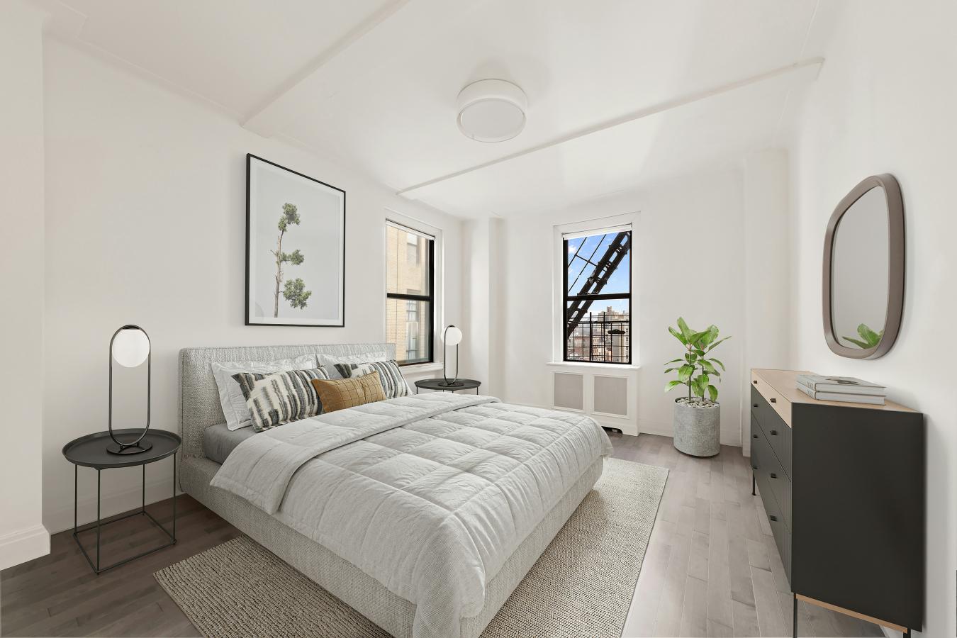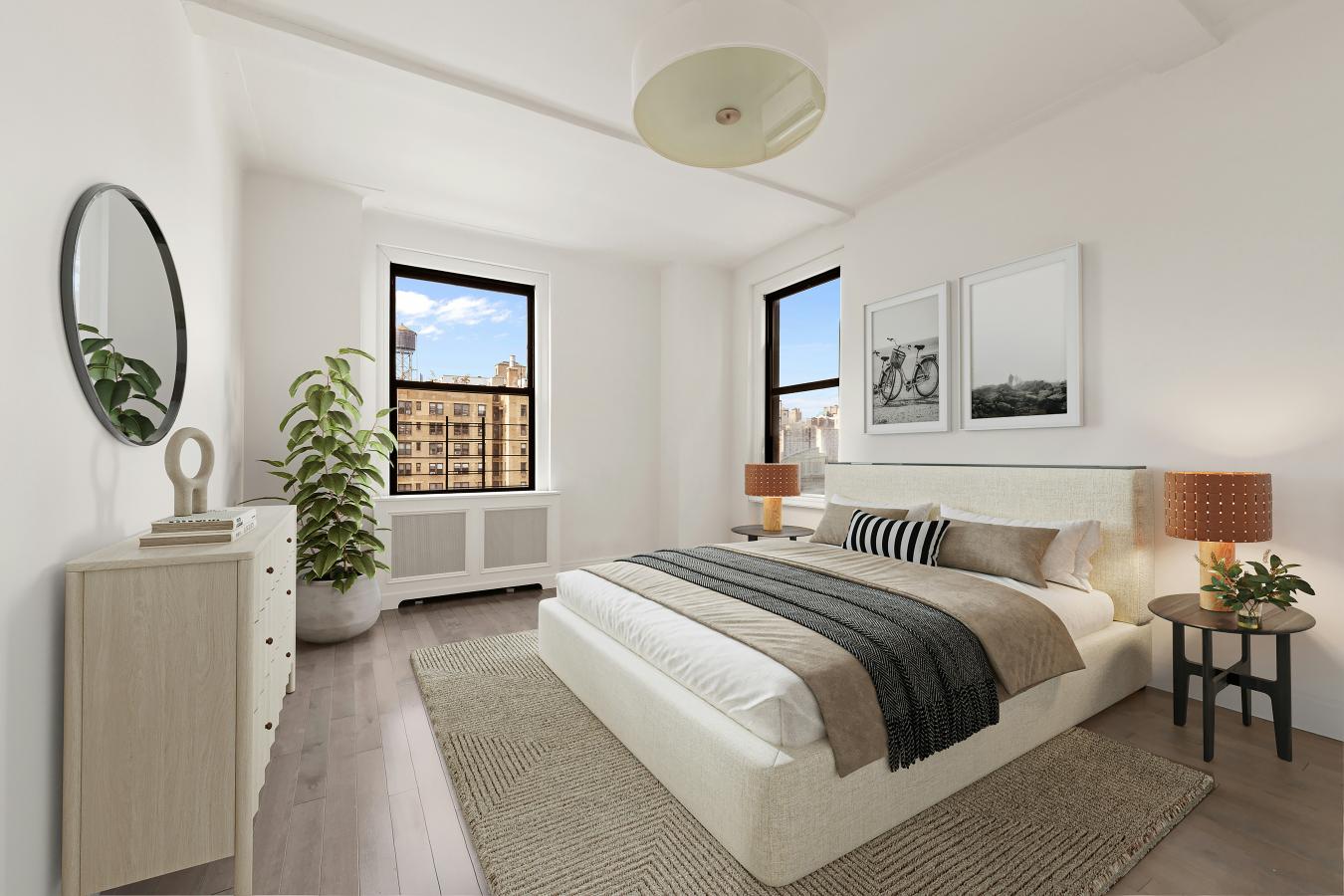 New to Market! Elegant and sun-drenched, this 2-bedroom, 2-bathroom condominium is perfectly situated on one of the most desirable blocks of the Upper West Side. Perched on a high floor, this corner home boasts north, south, and east exposures, flooding every room with radiant natural light and offering open city vistas. The spacious living and dining area provides an inviting backdrop for both relaxation and entertaining, enhanced by warm hardwood floors and a graceful layout that maximizes flow and comfort. A beautiful dry bar with glass-top cabinets and a granite countertop delineates these two spaces. While a Lutron lighting system has been installed and allows for all lights to be controlled via a smartphone app. The beautifully finished windowed kitchen features a GE Profile stove and convection oven, GE Café refrigerator, Bosch dishwasher, and double Elkay sink with touch faucet. The kitchen island features generous under-counter storage and a wine rack finished with a granite countertop. The raised dining bar seats four and is topped with a richly refurbished live edge Claro walnut wood. The welcoming dining nook completes the dining experience. The primary suite serves as a private sanctuary, featuring a luxurious en suite bathroom with a Jacuzzi tub, a Toto bidet, and mother-of-pearl tile work. All perfect for unwinding after a long day. The second bedroom is generous in size with excellent closet space and easy access to the homes second full bathroom. Both closets have built-in California Closet custom organization systems and face north over a double-wide street that allows for abundant natural light. 110 West 86th Street is a well-maintained, full-service condominium offering the convenience of a live-in super, doorperson, elevator, and laundry facilities. W/D can be installed with board approval. Just moments from Central Park, the 1/B/C subway lines, fine dining, shopping, and cultural institutions, this home combines serene living with quintessential Upper West Side charm.