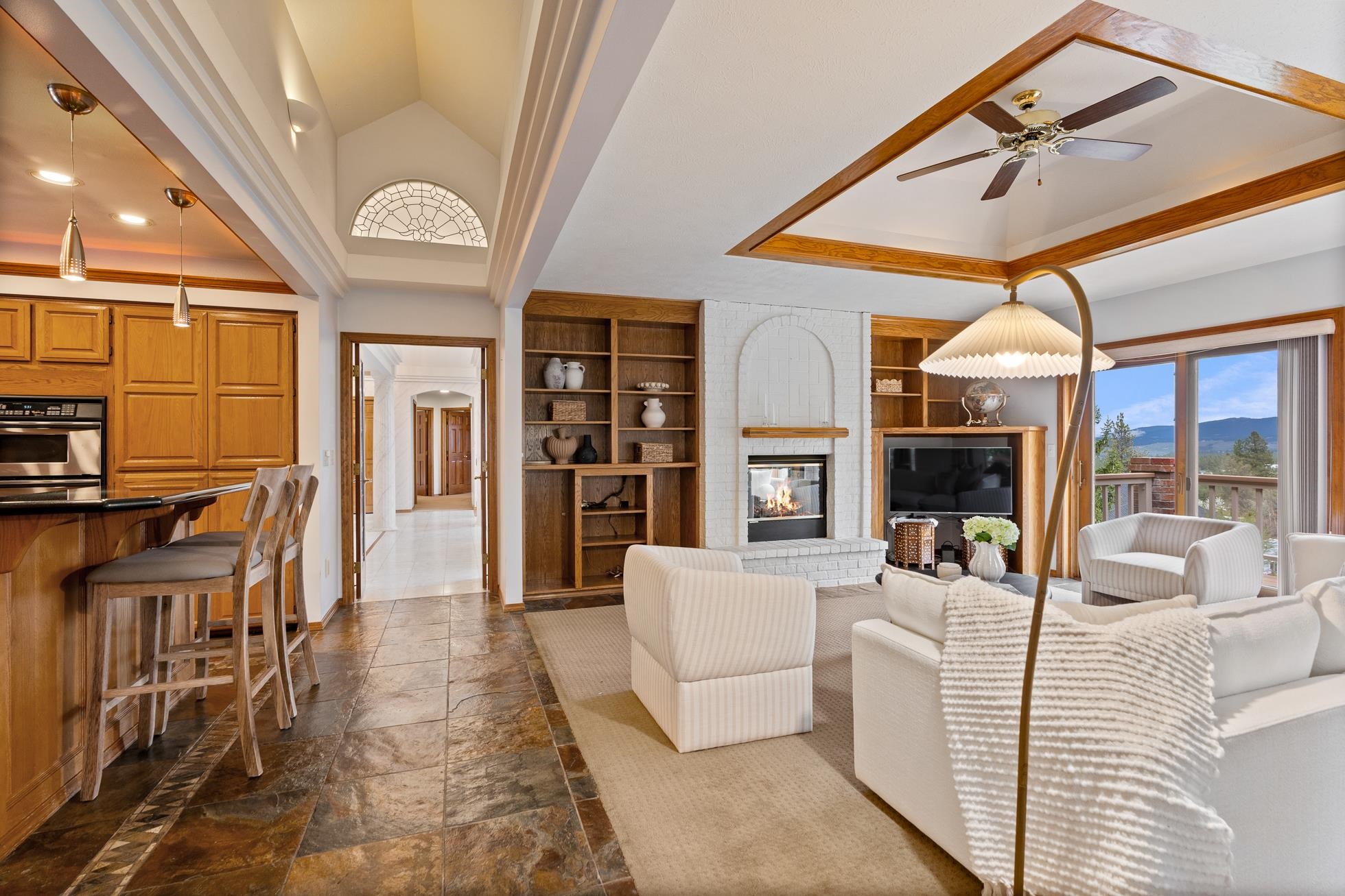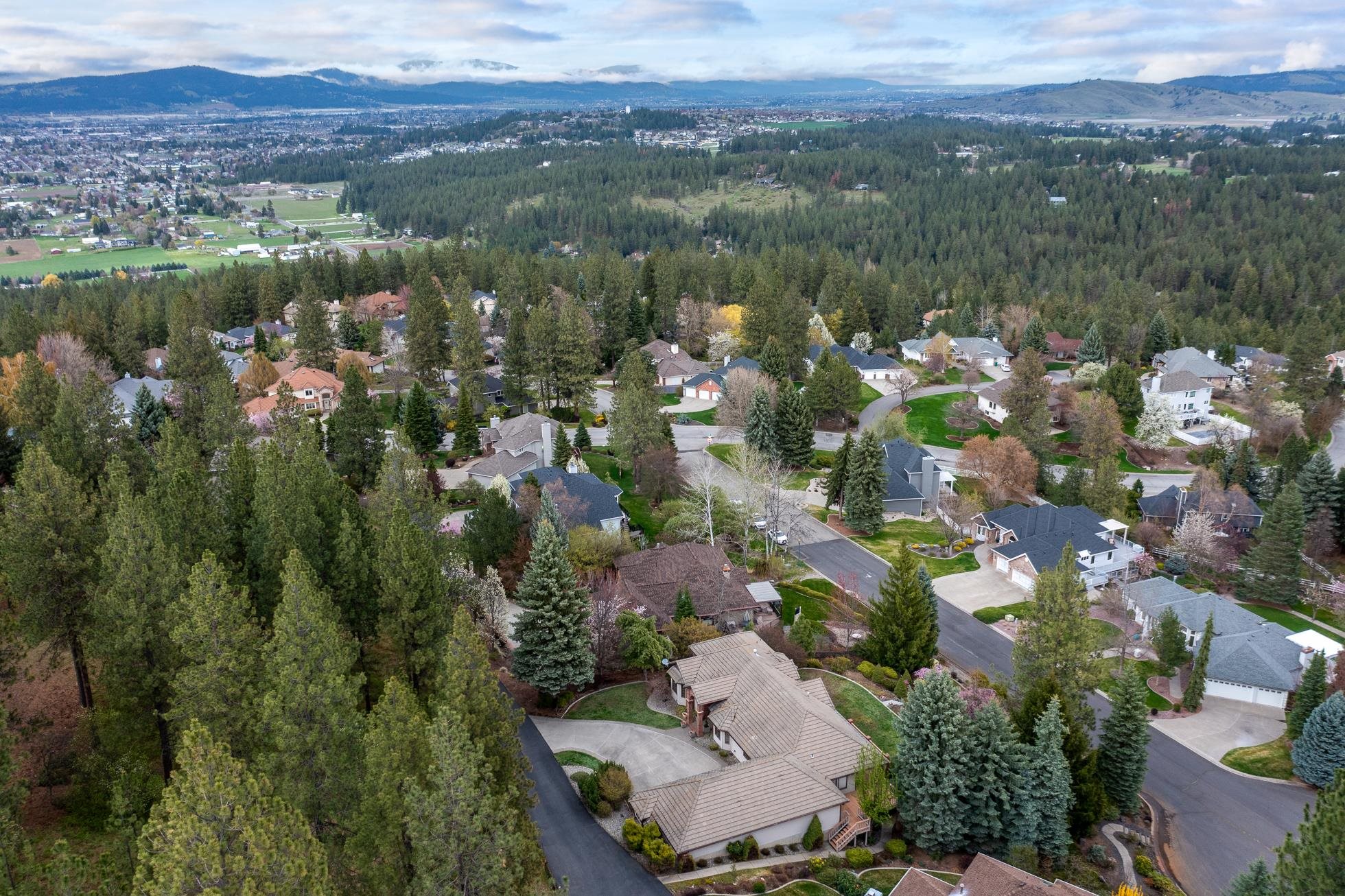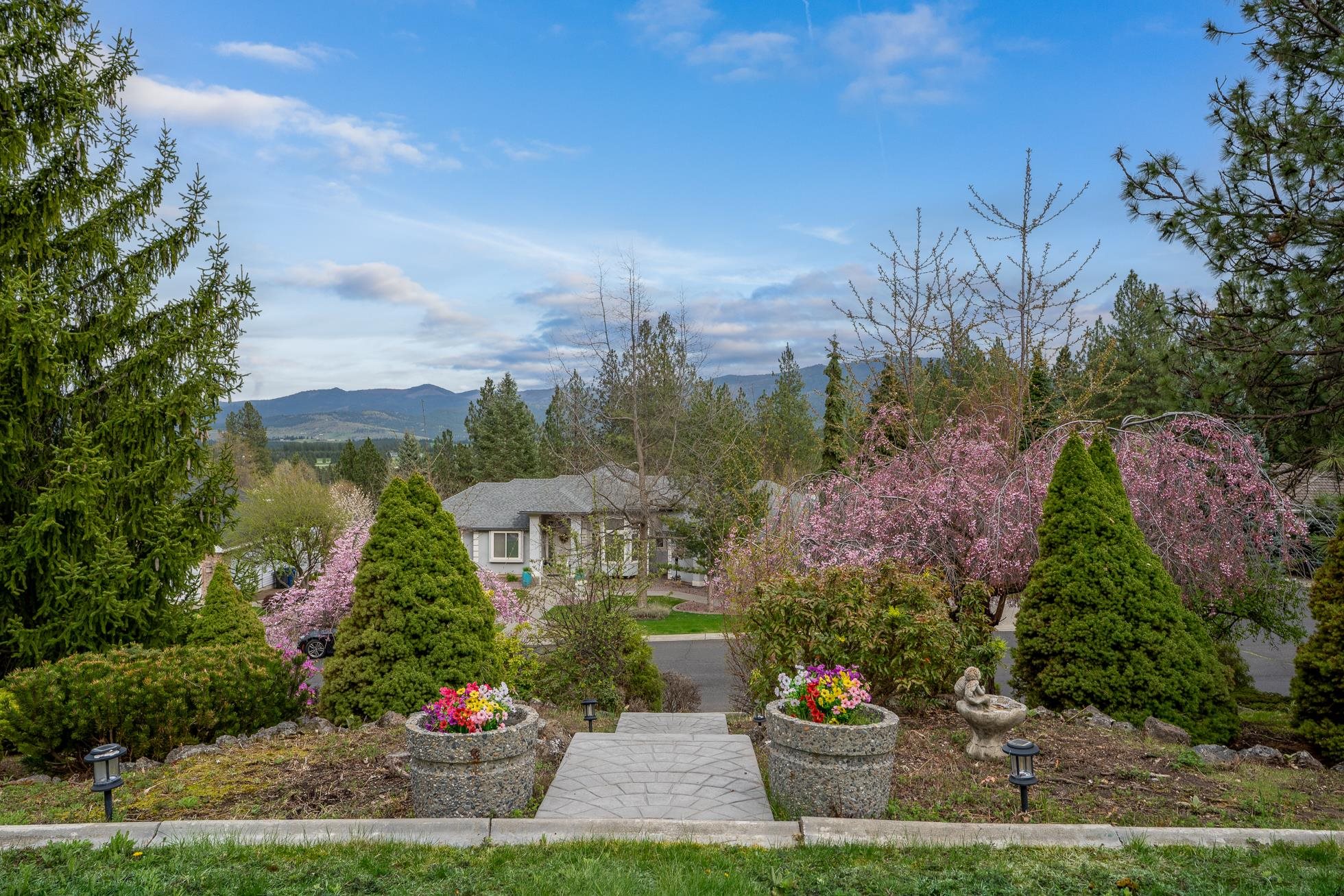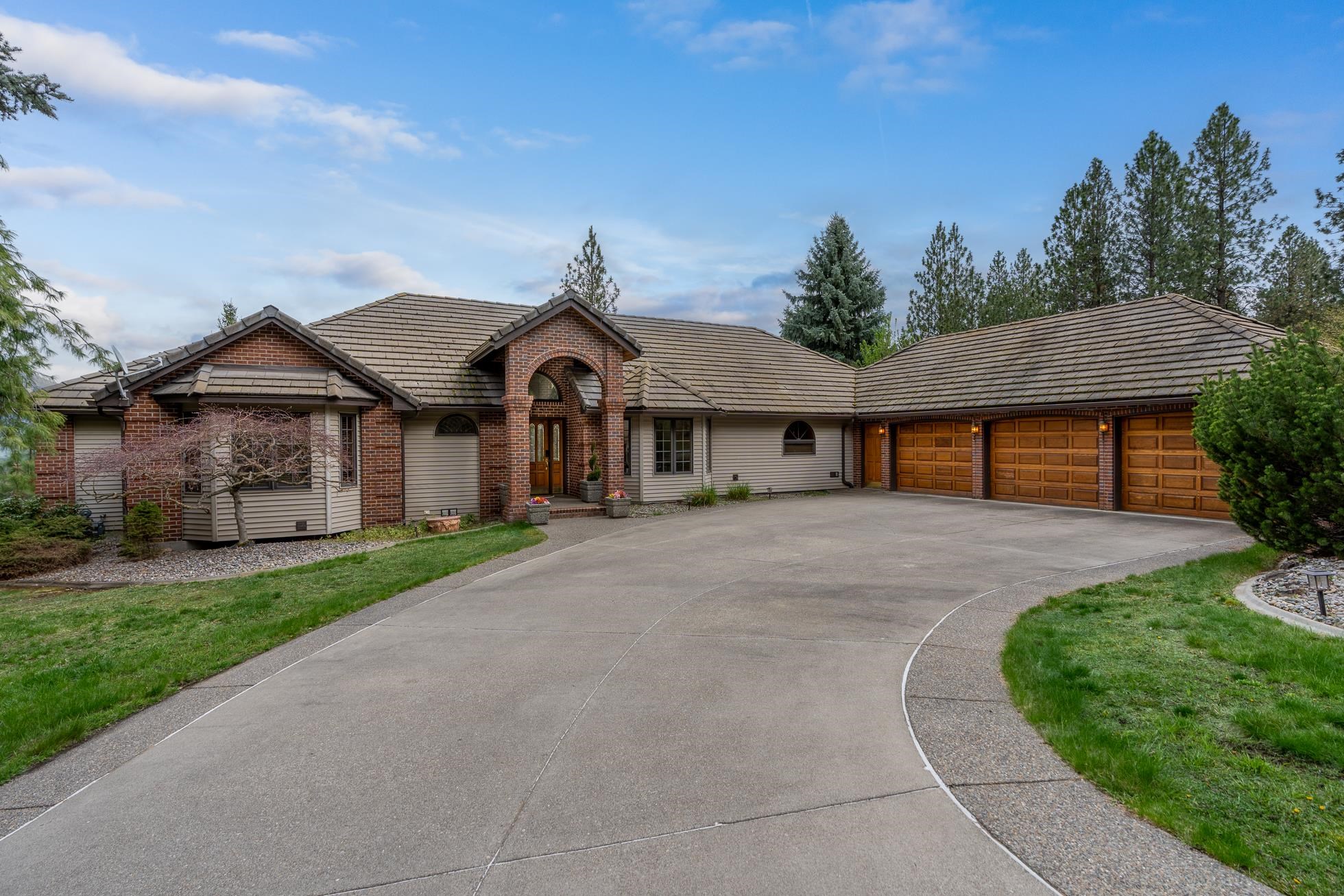Tucked at the end of a quiet cul-de-sac on a private drive, this 5 bed, 5 bath home offers privacy, panoramic Mica Peak views, and exceptional entertaining space. Featuring two master suites, a chef's kitchen with JennAir range, and a full wet bar seating 10 with wine storage, beverage fridges, icemaker, and tap system. The family room is equipped with surround sound, while the primary suite offers a spa-style bath with heated floors, waterfall heads, side jets, and Grohe fixtures. Cedar sauna, jetted tub, pool table, and double-sided gas fireplaces complement the home's amenities. Custom woodwork, stained glass, and Carrara marble add character throughout. Oversized 4-car garage and updated HVAC, water heaters, and whole-house Zilmet water softener system complete this exceptional home.