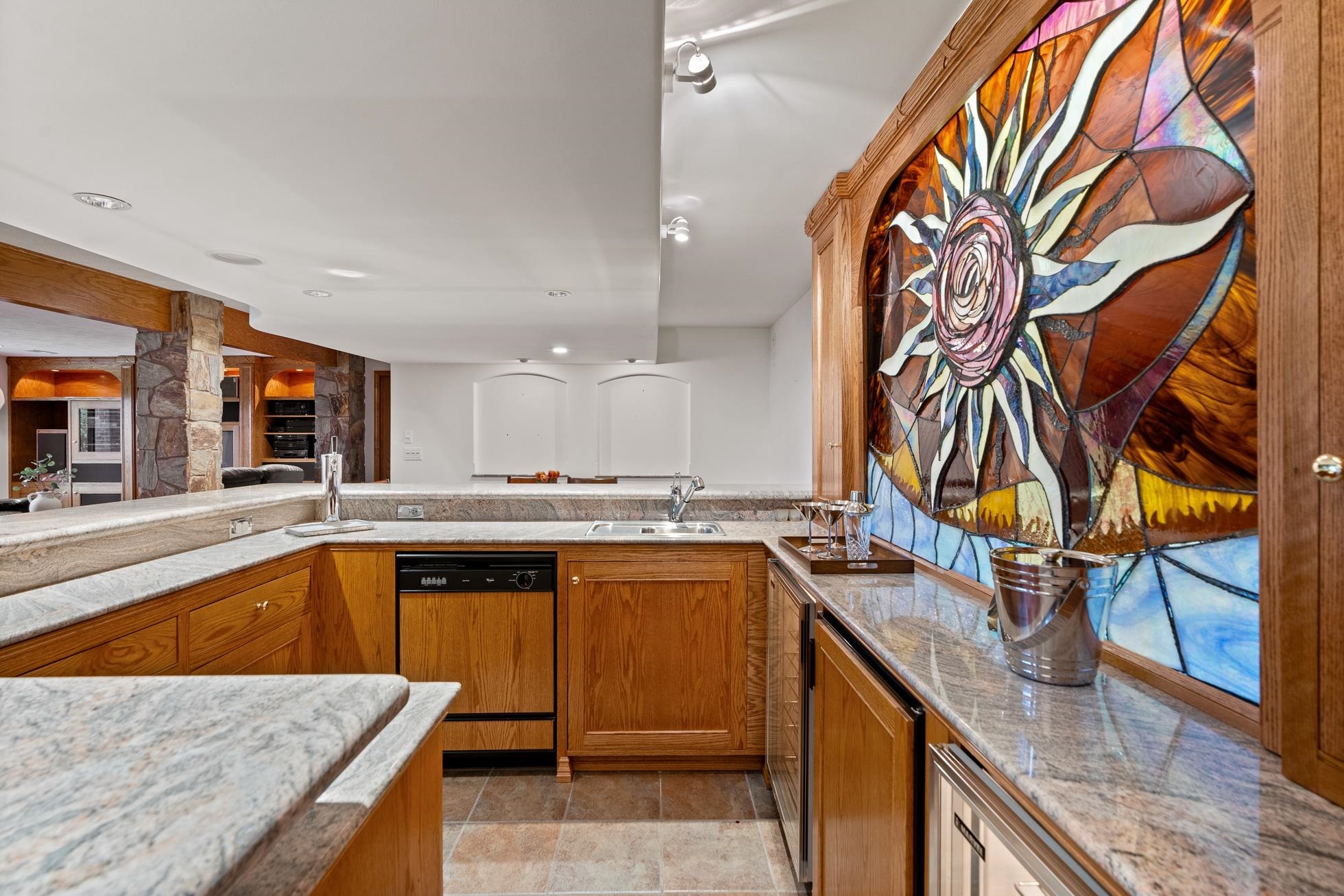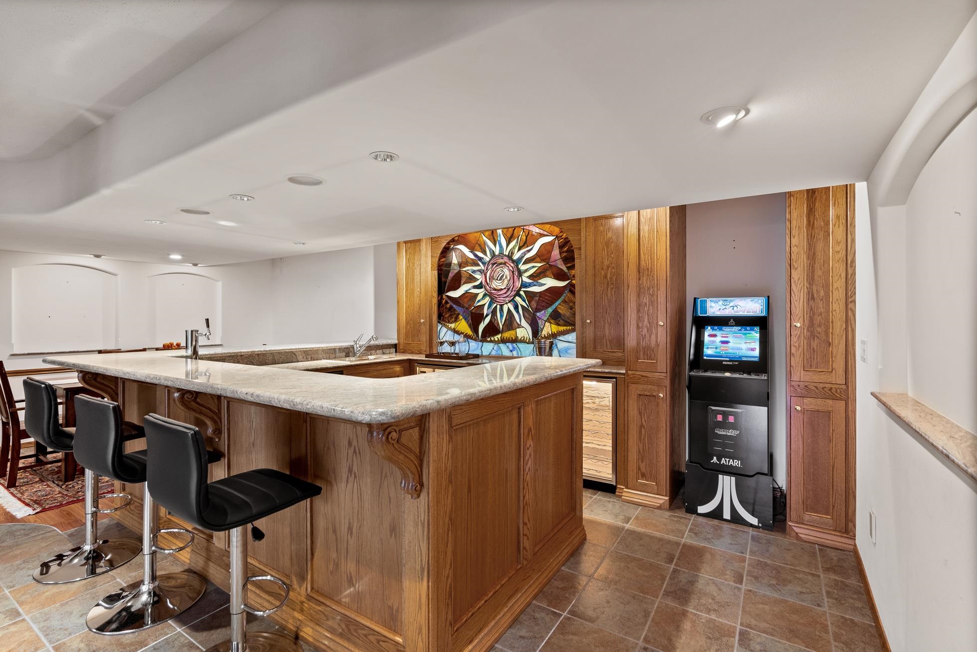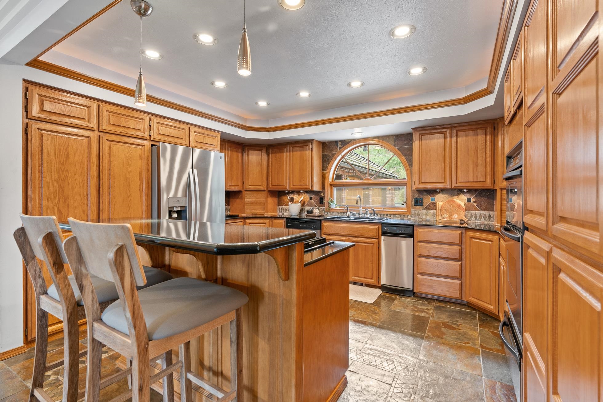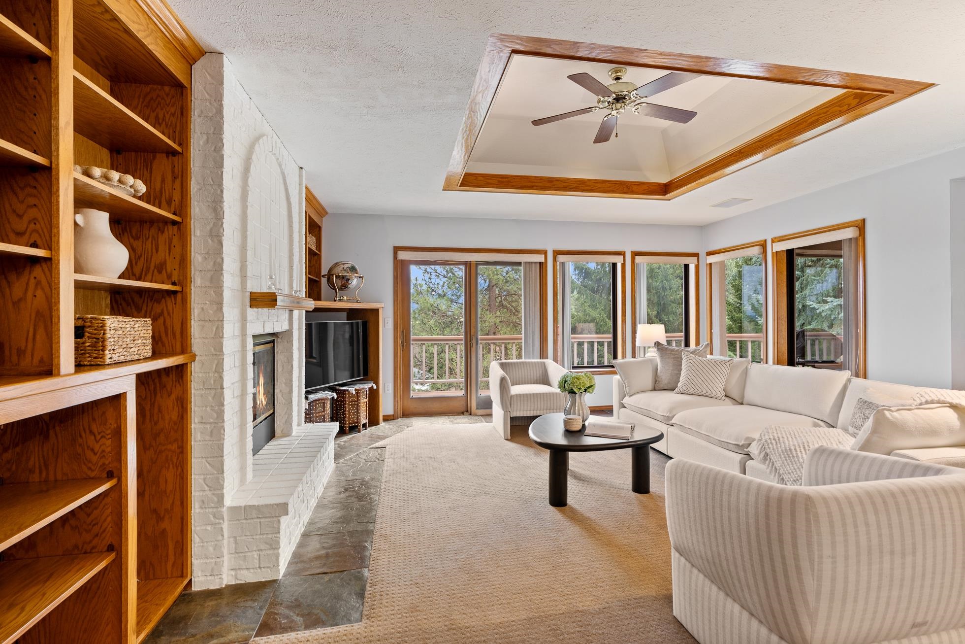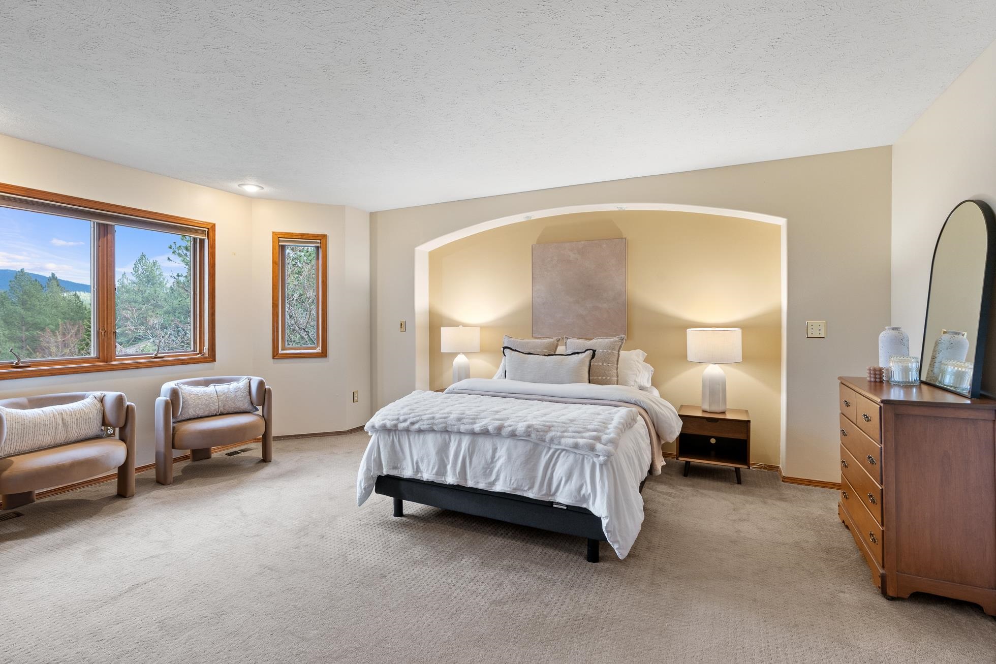 Tucked at the end of a quiet cul-de-sac on a private drive, this 5 bed, 5 bath home offers privacy, panoramic Mica Peak views, and exceptional entertaining space. Featuring two master suites, a chef's kitchen with JennAir range, and a full wet bar seating 10 with wine storage, beverage fridges, icemaker, and tap system.