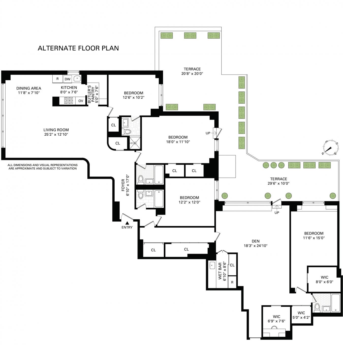 A Trophy Duplex Above Central Park Perched high above Central Park in the prestigious 980 Fifth Avenue cooperative, this rare 10-room duplex showcases sweeping views of the Manhattan skyline, the Metropolitan Museum of Art, and the Parks endless greenery. Twelve oversized south- and west-facing windows flood the residence with light throughout the day and frame some of the citys most iconic vistas. The apartment offers four spacious bedrooms plus a staff room, an elegant bar, and a windowed eat-in kitchen. A striking spiral staircase links the two levels, providing both architectural drama and a gracious flow. With grand entertaining rooms balanced by private quarters, the residence is both impressive in scale and inviting in design, ready for its next owner to personalize and bring to life. Available for the first time in several decades. 980 Fifth Avenue is one of Manhattans most distinguished cooperatives, designed by Paul Resnick and H.F. Green and home to just forty-five residences. A circular driveway with porte-cochere leads to an on-site garage with discounted rates for shareholders. Amenities include a rooftop observation deck with panoramic views, individual storage units, and impeccable staffing with a full-time doorman, concierge, and live-in resident manager. Pied-à-terre ownership is welcome, financing up to 50% is now permitted, and there is a 2.5% flip tax.