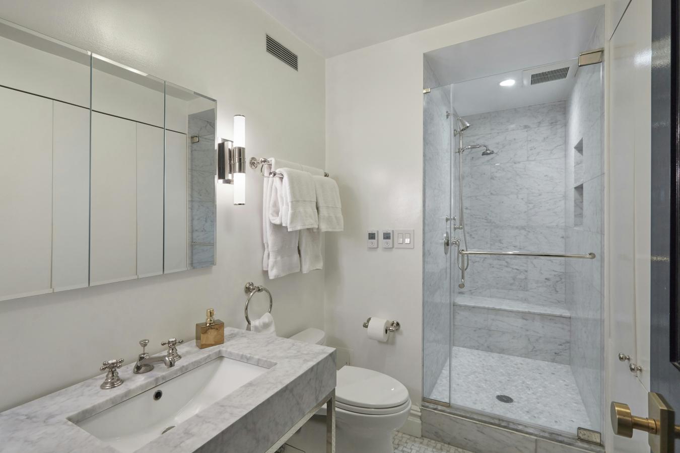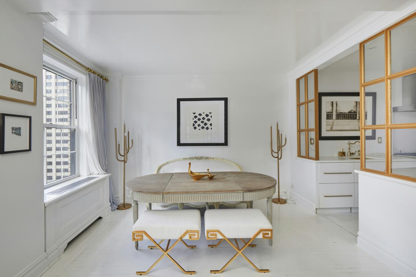 Unit 10 at 891 Park Avenue is a true jewel box nestled in the heart of the Upper East Side. This chic full-floor home is comprised of two-bedrooms, two-and-a-half-bathrooms and a solarium planned in a gracious layout. The sumptuously appointed private elevator landing sets the tone to the spacious foyer, adorned with classic prewar details including moldings and a preserved vintage mail chute, unique to find inside the residence. Located just off the foyer, overlooking Park Avenue through three oversized west-facing windows, is the stately living room and accompanying dining room. The gas fireplaces mantel along the north wall, a stunning piece of hand-carved Sienna marble with gold Ormolu details salvaged from The Plaza Hotel, anchors the room. Built-in storage with glass shelving symmetrically flanking either side of this dramatic showstopper makes for the perfect dry bar or at-home library for the voracious reader. The windowed dining area, adjacent to the living room, allows for ideal easy flow while entertaining. Natural light pours through the generous windows and shines bright on the white wood floors found throughout the home. The picturesque kitchen located just a stones throw away from the dining area is both functional and stylish. Residence #10s custom-made French windows were designed for the kitchen to feel as its own distinct, purposeful space while still allowing for an abundance of natural lighting. This decorative element, alongside brass and gold hardware, introduces a pop of color amidst the clean, white lacquered cabinetry. Final elements of this designer kitchen are comprised of a six-burner Wolf range with vented hood and paneled appliances that include a pair of SubZero refrigerated drawers and a Bosch dishwasher. Stainless steel cabinets curated from the New York Times building put an authentically New York finishing touch on this posh Park Avenue kitchen. A long gallery with plenty of art walls places the bedrooms in a separate wing of the residence and creates excellent separation of space. Both bedrooms are tucked away in the quiet eastern wing of the apartment, allowing for both peace and privacy. The king-sized primary bedroom has dual south and east exposure and can accommodate the most robust of wardrobes thanks to a large walk-in closet. An updated ensuite marble bathroom, complete with heated floors and spa glass shower, finalize this upscale primary retreat. The second bedroom is also generously sized with a full ensuite bathroom and an idyllic solarium that presents the perfect seating nook. Additional features of this extravagant residence include a powder room and laundry closet with a stacked in-unit Samsung washer/dryer. Crown and baseboard molding, beamed ceilings, recessed lighting, an abundance of storage, and a heat and air conditioning system can be found throughout the entire home. A private storage unit in the basement transfers with the sale. This is a rare opportunity to own a full-floor residence in a charming boutique co-op with only 15 units. Built in 1931 by Arthur Paul Hess, 891 Park Avenue features a live-in resident manager as well as doorman on duty 24 hours from Friday to Sunday, and from 7:00am-11:00pm on Monday to Thursday. The co-op allows pied-a-terre ownership, co-purchasing, purchasing in a Trust, 50% financing, and pets, all with Board approval. Taxes here are not included in the monthly maintenance and are covered by a semiannual real estate tax assessment of 11,235. A transfer fee of 3% is payable by the purchaser.
