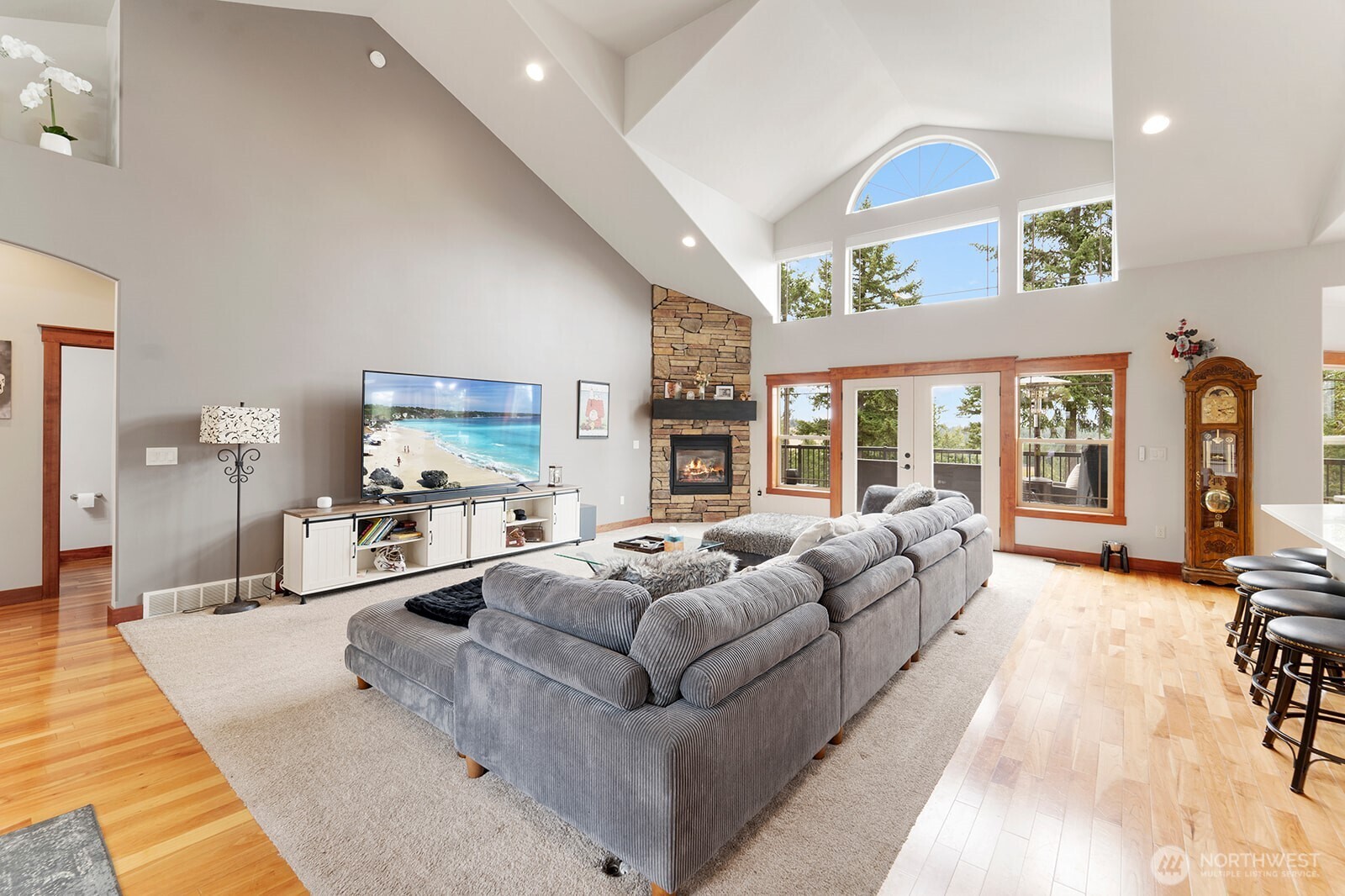 Refined South Hill living with timeless architecture and light-filled interiors. This beautifully maintained home welcomes you with soaring ceilings and new white oak hardwood floors throughout the main living spaces. The elegant great room with gas fireplace flows seamlessly into a thoughtfully updated kitchen featuring quartz counters, custom cabinetry, stainless appliances, and a generous island. A main-floor office with French doors offers flexibility, while the private primary suite provides comfort and retreat. Enjoy effortless indoor-outdoor living with a secluded deck ideal for morning coffee or evening gatherings. Elevated finishes include solid wood doors, new base and case, Kohler fixtures, custom tile, designer wallpaper, and electronic shades. With two gas fireplaces, dual living and dining spaces, a sunroom, and three bedrooms, this home blends function, quality, and turnkey elegance in one exceptional offering.