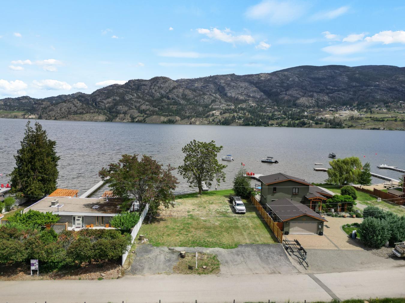 CLICK TO VIEW VIDEO: 85 of waterfront situated on a quiet no-through road in Kaleden-a once-in-a-lifetime opportunity! Wake up, and you are 2 steps away from the KVR trails for running or biking and then 2 steps away from jumping in the lake to cool off! This property has already had an amazing dock installed. The property also has had a survey done with high water mark setbacks known.