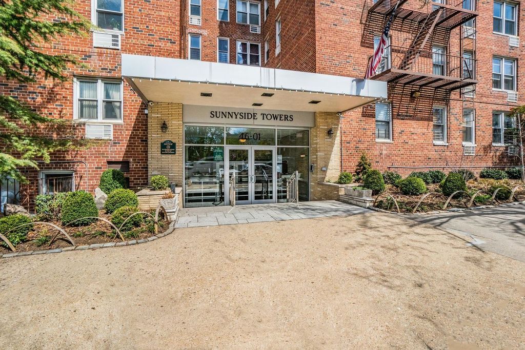 NOT JUST A PLACE TO LIVE !Lovely & Spacious Top Floor 1 Br Co-Op in the well maintained SUNNYSIDE TOWERS Co-Op Complex located in the landmarked Sunnyside Gardens Historic District . This bright apartment consists of welcoming foyer , L-Shape LR/DR , kitchen, bath rm & king size bedroom.