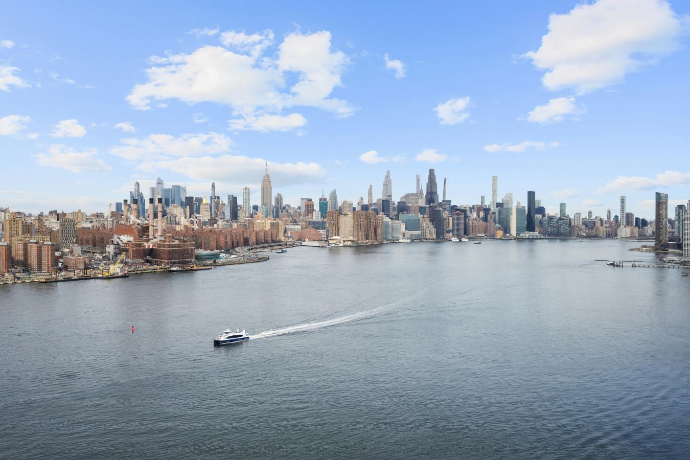 Apartment 27A is a corner 2-bedroom, 2-bath residence with walls of windows framing Western and Southern views spanning from Manhattans midtown skyline to the iconic Brooklyn Bridge. The open kitchen features lacquered cabinetry, SubZero and Bosch appliances with large stone center island overlooking the bright dedicated dining area. An expansive living area flows onto your private balcony, the perfect perch for morning coffee or sunset cocktails over the East River. The open, airy living room is bathed in natural light and includes built-ins for books, music, and TV. The primary suite is a tranquil retreat with two generous closets and an en-suite, stone-clad five-fixture bathroom. The thoughtful layout includes a split-bedroom plan and separate home office and washer/dryer. A large storage unit transfers with the sale. On the scenic Williamsburg waterfront, 2 Northside Piers is a full-service Condominium with 24-hour concierge service, resident manager and on-site parking garage for ultimate convenience. Residents enjoy an impressive suite of amenities, including indoor pool and hot tub, sauna, state-of-the-art fitness center with yoga room, a stylish lounge with private screening room, and a fully equipped childrens playroom. Perfectly positioned along the East River promenade and just moments from the Bedford Avenue L train and the Ferry to Manhattan, commuting is effortless. Enjoy Williamsburgs bustling and creative downtown, with diverse eateries, night life, shopping and cultural events. 2 Northside Piers places you at the center of it all while offering a serene retreat to call home. The building benefits from a 421 Tax Abatement until 2036.