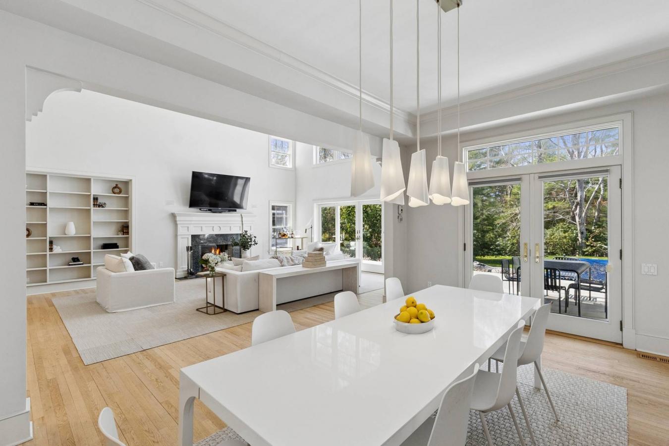 Set on 1.52- acres down a charming, quiet cul-de-sac at the fringe of East Hampton Village, this exceptional residence offers a rare combination of scale, privacy, and refined Hamptons living. Spanning approximately 4,650- square feet-with an additional 2,300- square feet of beautifully finished lower level-the home features 8 bedrooms and 6 bathrooms, thoughtfully designed for both relaxed living and effortless entertaining. A grand entrance welcomes you into an expansive open-concept living and dining area, highlighted by soaring ceilings, a fireplace, and walls of glass doors that frame picturesque views of the lush grounds. The eat-in kitchen flows seamlessly into a tranquil screened-in porch, creating the perfect setting for indoor-outdoor dining. The first-floor primary suite is a private retreat, complete with a spacious sitting room or library featuring a wood-burning fireplace, dramatic double-height ceilings, and direct access to the backyard. The upper level features a total of five well-appointed rooms, including an en suite junior master with a walk-in closet, and an additional ensuite guest bedroom. The finished lower level offers exceptional versatility, including a large recreation room that doubles as the eighth bedroom, complete with a full bath and double sliding doors leading to a secluded bluestone patio. The back grounds of the property have been extensively enhanced with all-new landscaping, a newly installed bluestone patio, and an inviting 18x40 swimming pool with a new liner. A firepit and multiple gathering areas provide ideal spaces for relaxation and entertaining, complemented by the convenience of a two-car garage. Adding to the sense of tranquility, a large reserve sits directly across the street, ensuring lasting privacy. Residents also enjoy access to two community tennis courts, now thoughtfully updated with pickleball markings. This is a rare opportunity to own a spacious and beautifully updated home in one of East Hamptons most desirable and peaceful settings, all with proximity to the Village.