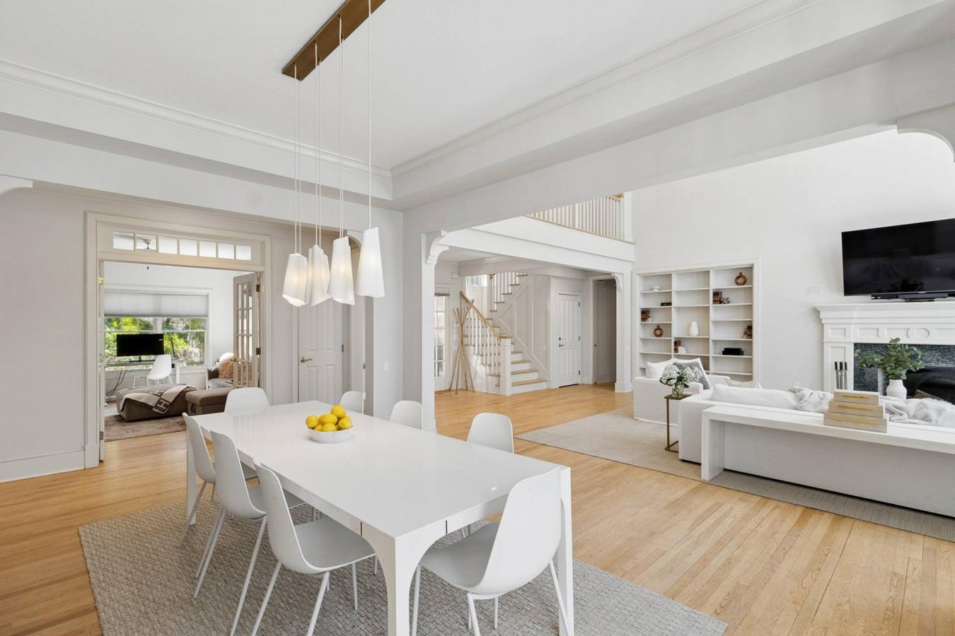 This elegant East Hampton Village home (circa 1870) underwent a gut renovation in 2023 under the acute eyes of architect Mark Zeff. Today, the home provides all modern amenities with special touches from years gone by. The large front porch welcomes you, the foyer offers a beautiful staircase with period detailing.