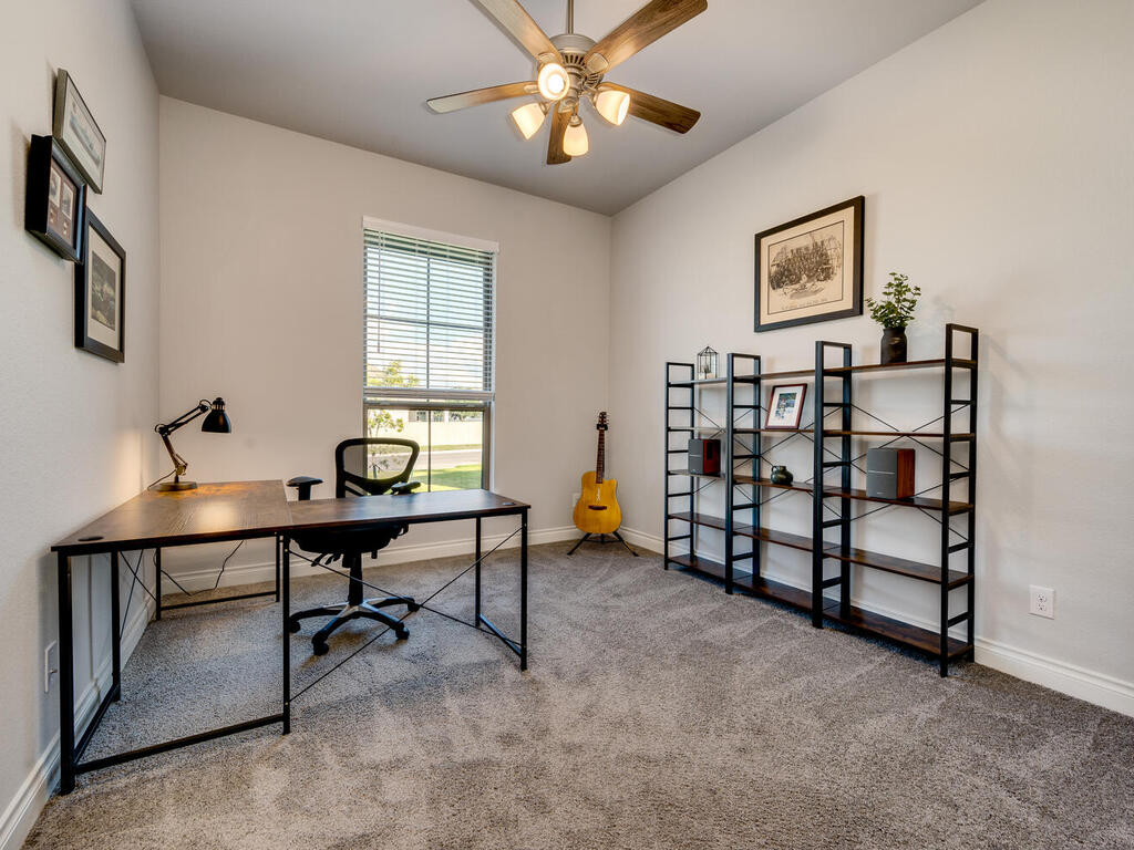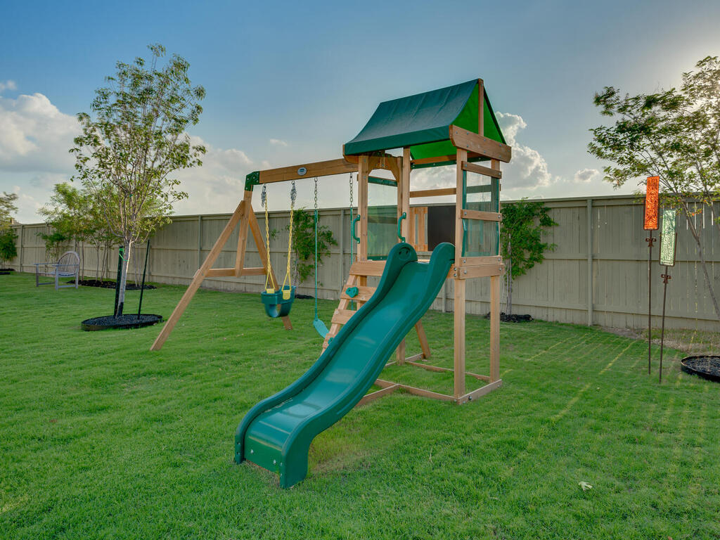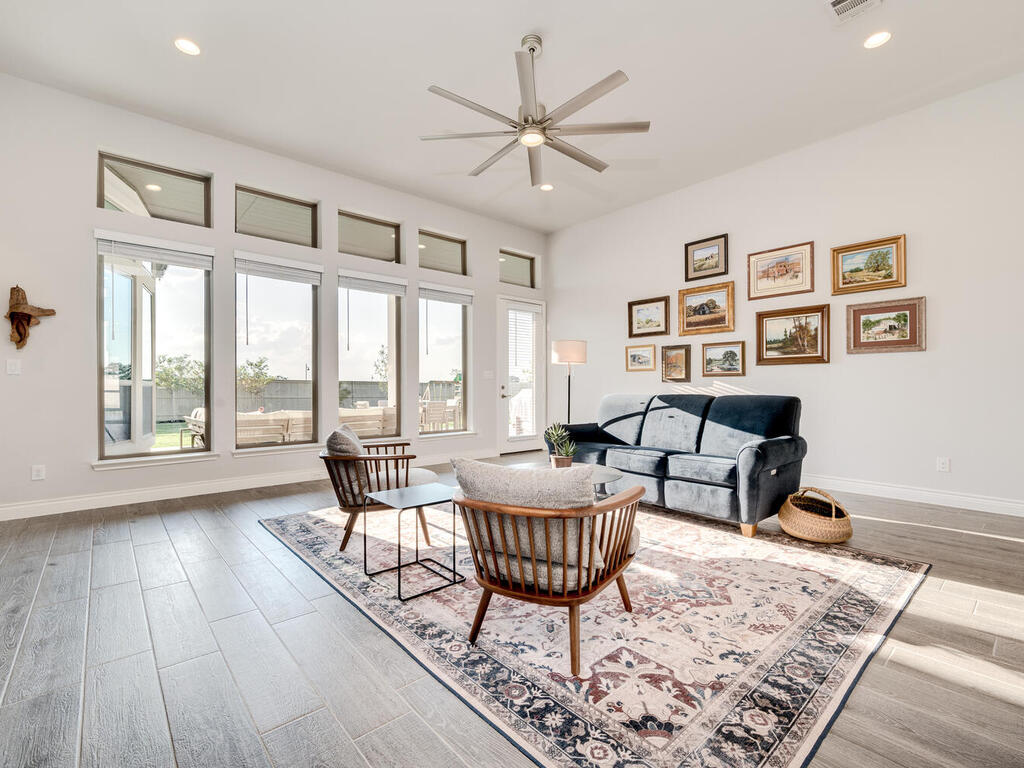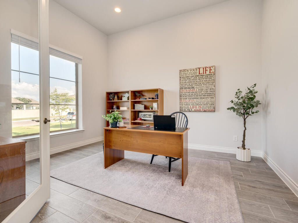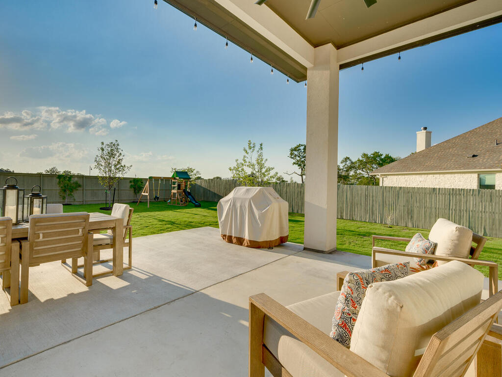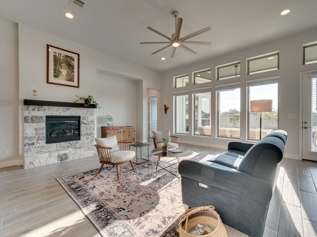 Why wait for a house to be built? Ready for move in. Immaculate Single Story home in Santa Rita Ranch, top-selling master-planned community in the Austin area with countless amenities to enjoy. New elementary school plans to open in Fall 2024 within walking distance. Pristine landscaping adds to the curb appeal of this stunning home. The flow of the floor plan allows for easy entertainment with family and friends. Wood look tile floors throughout living areas. 2 spacious living areas, one with cozy stone fireplace and wall of windows to capture views of private backyard. Abundant natural light throughout. 2nd living area can be media room or game room. Large kitchen with quartz countertops and ample cabinet space makes for a chef's delight. Kitchen island has sink, perfect for meal preparation. Additional counter space for beverage bar. Breakfast room has work space/study desk. Fabulous formal dining room for holiday dinners or dinner parties. Private office with double glass French doors makes working remotely enjoyable. Primary bedroom with bay window allows for additional sitting area, great for sipping coffee in the morning while planning your day. Spa-like primary bath great for relaxation. Upgraded ceiling fans and abundant storage throughout. Extended covered patio with lighting illuminates this spectacular outdoor living area. Plenty of Room for a Pool. Playscape conveys. 3 Car Garage. Enjoy the Santa Rita Ranch amenities including two resort style pools, parks, nature trails, fitness center and much more.