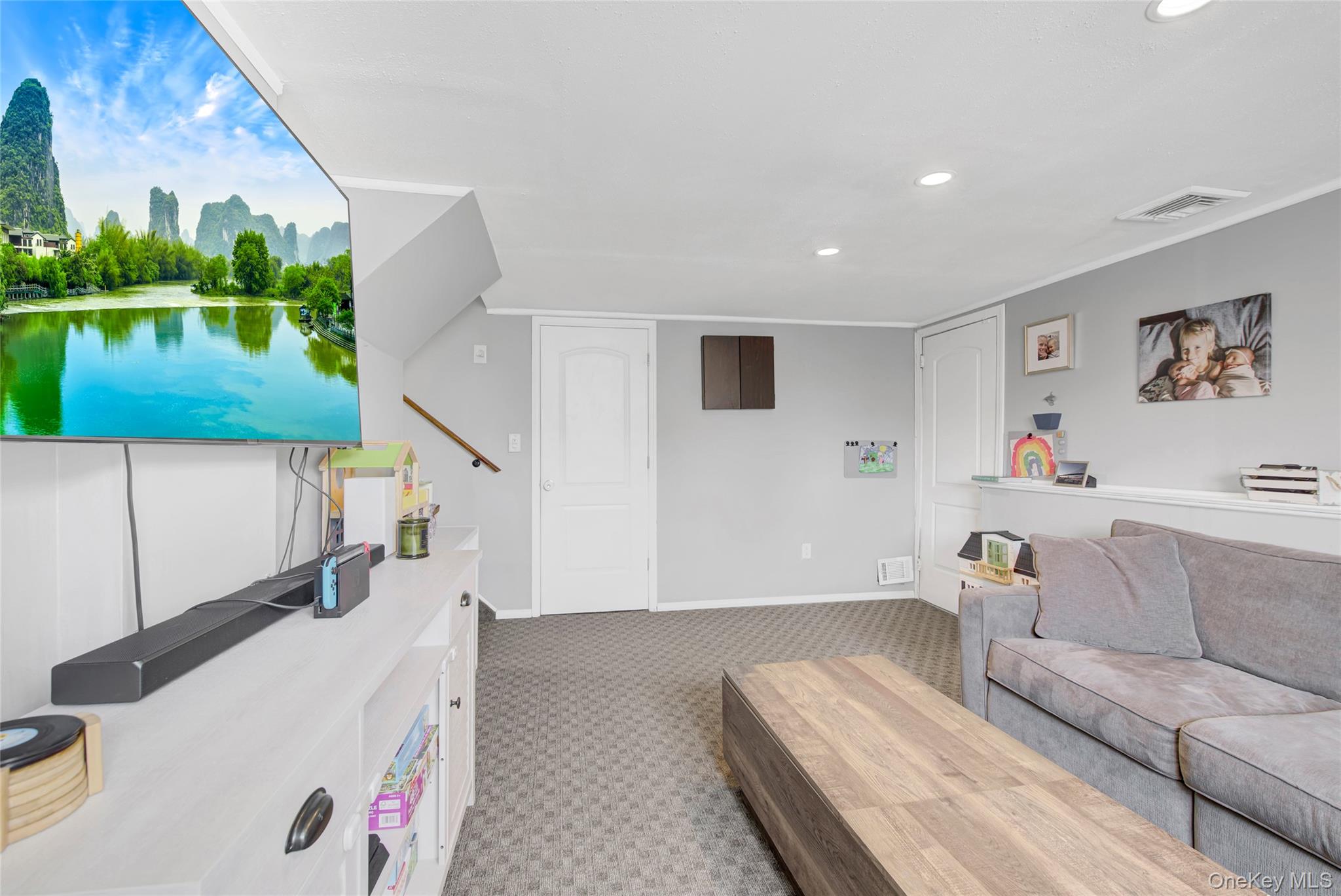 Welcome to this move in ready split level home perfectly situated in a prime mid block location in desirable Massapequa Park! Offering 3 spacious bedrooms and 2.5 bathrooms, this home combines comfort and functionality. The upper level features generously sized bedrooms, including a primary suite with its own ensuite bathroom, along with an additional full bathroom. On the main level, enjoy a bright and inviting layout with a spacious living room, kitchen, and formal dining area with sliding doors leading out to a deck and backyard, perfect for entertaining or relaxing outdoors.The lower level provides excellent additional living space, ideal for a den or recreation area, complete with a half bathroom and sliding doors to the yard. A partial basement offers ample storage options.This home is loaded with desirable features including central air, gas heat, radiant heated floors on the lower level, recessed lighting, crown molding, hardwood floors throughout, pull down attic access, and 200 amp electric. Exterior highlights include a 1 car attached garage, 7 zone in ground sprinklers, and a beautifully finished paver walkway and front steps. A true turn key opportunity!