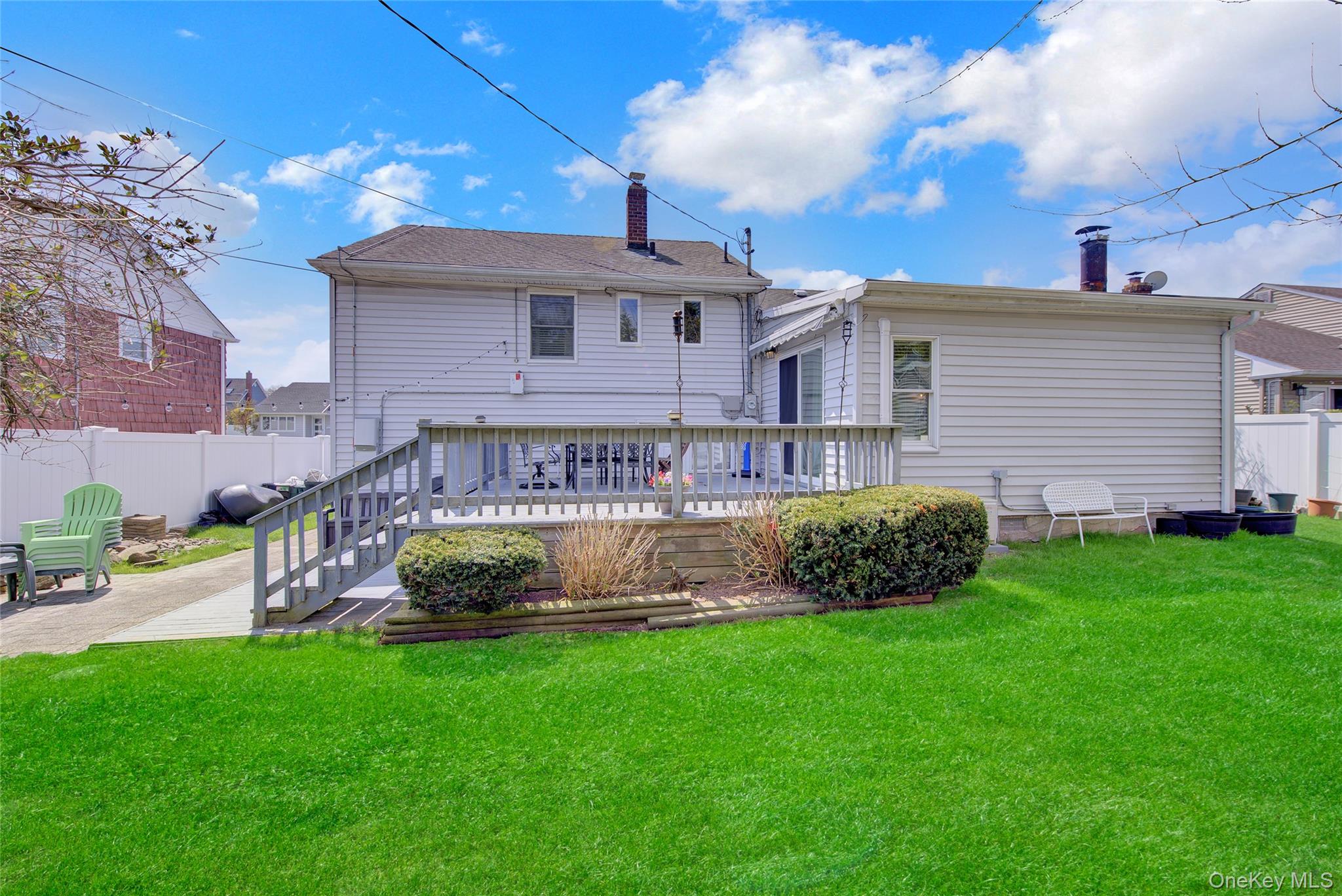 Welcome to this beautiful Hi-Ranch set on a spacious quarter-acre lot, offering the perfect blend of comfort, space, and convenience. This well-maintained home features 5 bedrooms and 2 full bathrooms, providing plenty of room for extended family or guests. The open floor plan showcases a large eat-in kitchen with granite countertops and ample cabinetry, seamlessly flowing into the living room and dining area, creating an ideal layout for everyday living and entertaining. The first floor expands the living space and offers excellent flexibility, perfect for guest quarters, extended family, or private living space. Step outside to enjoy a spacious fenced backyard, ideal for gatherings, outdoor activities, or simply relaxing. Additional highlights include hardwood floors, in-ground sprinklers, and a security system with cameras. Conveniently located within walking distance to the tranquil waters of South Oyster Bay, this home offers a wonderful lifestyle with nature, recreation, and coastal beauty just moments away.