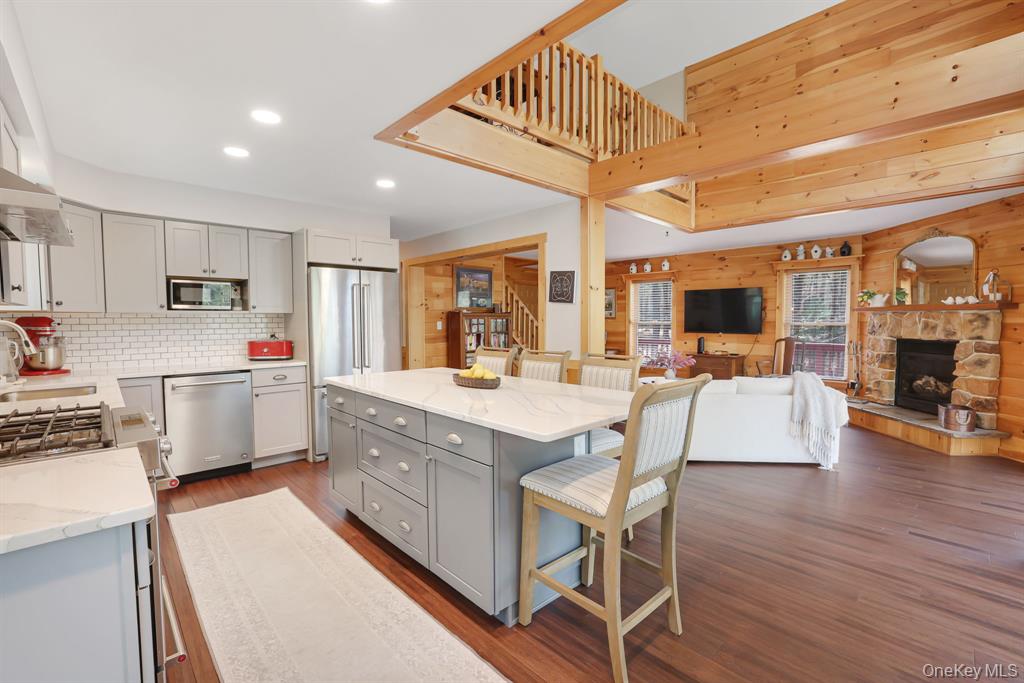 Escape to Modern Luxury in the Catskills Experience ultimate privacy on 3 acres with deeded rights to a 100-acre natural glacier lake. Just 2 hours from NYC, this stunning custom-built home blends superior craftsmanship with modern tech. The sun-drenched great room features skylights, a double stone fireplace, and French doors that open to an expansive entertaining deck.