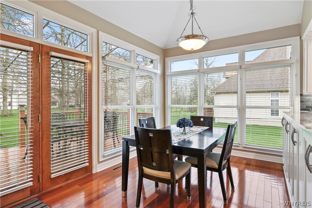 Welcome to 102 Covent Garden Ln in Williamsville, a beautifully maintained custom-built brick front home located in the highly desirable Williamsville School District. Offering 4 bedrooms, 3 full bathrooms, and 2 half baths. This home features an open floor plan with high ceilings, abundant natural light, and stunning Brazilian cherry hardwood floors throughout. Step inside to a grand two-story foyer filled with natural light, with a private office and convenient half bath just off the entry. The first-floor primary suite offers a spacious retreat with a large bedroom, two closets, and a luxurious ensuite bath featuring a jetted soaking tub and a walk-in shower. The spacious living room is filled with natural light from oversized windows and anchored by a gas fireplace, creating a warm yet open feel. The space flows seamlessly into the updated kitchen (2020), complete with granite countertops, a center island, and ample cabinetry. All appliances are included. Enjoy both a formal dining room and a bright eat-in dining area surrounded by windows, perfect for everyday living and entertaining. Additional first-floor highlights include a pantry, laundry area, and access to the attached 2.5-car garage. Upstairs, youll find three generously sized bedrooms and two full bathrooms, including one bedroom with its own private ensuite full bath, ideal for guests or added privacy. The full basement features 8-ft ceilings, a half bath, and is ready to be finished for additional living space, complete with dual sump pumps with backup. Outside, enjoy a private backyard with a deck and awning, perfect for relaxing or entertaining, along with a shed and beautifully maintained landscaping that enhances the homes curb appeal. Additional updates include a tankless hot water system (2015), high-efficiency furnace and A/C (2015), and a whole-house generator installed in December 2023, along with a new front door and a new garage door. This home offers the perfect combination of space, updates, and location Close to shopping, dining, and everyday conveniences. Open House Saturday, April 25th from 1–3 PM. Offers due Tuesday, April 28th at 12:00 PM.