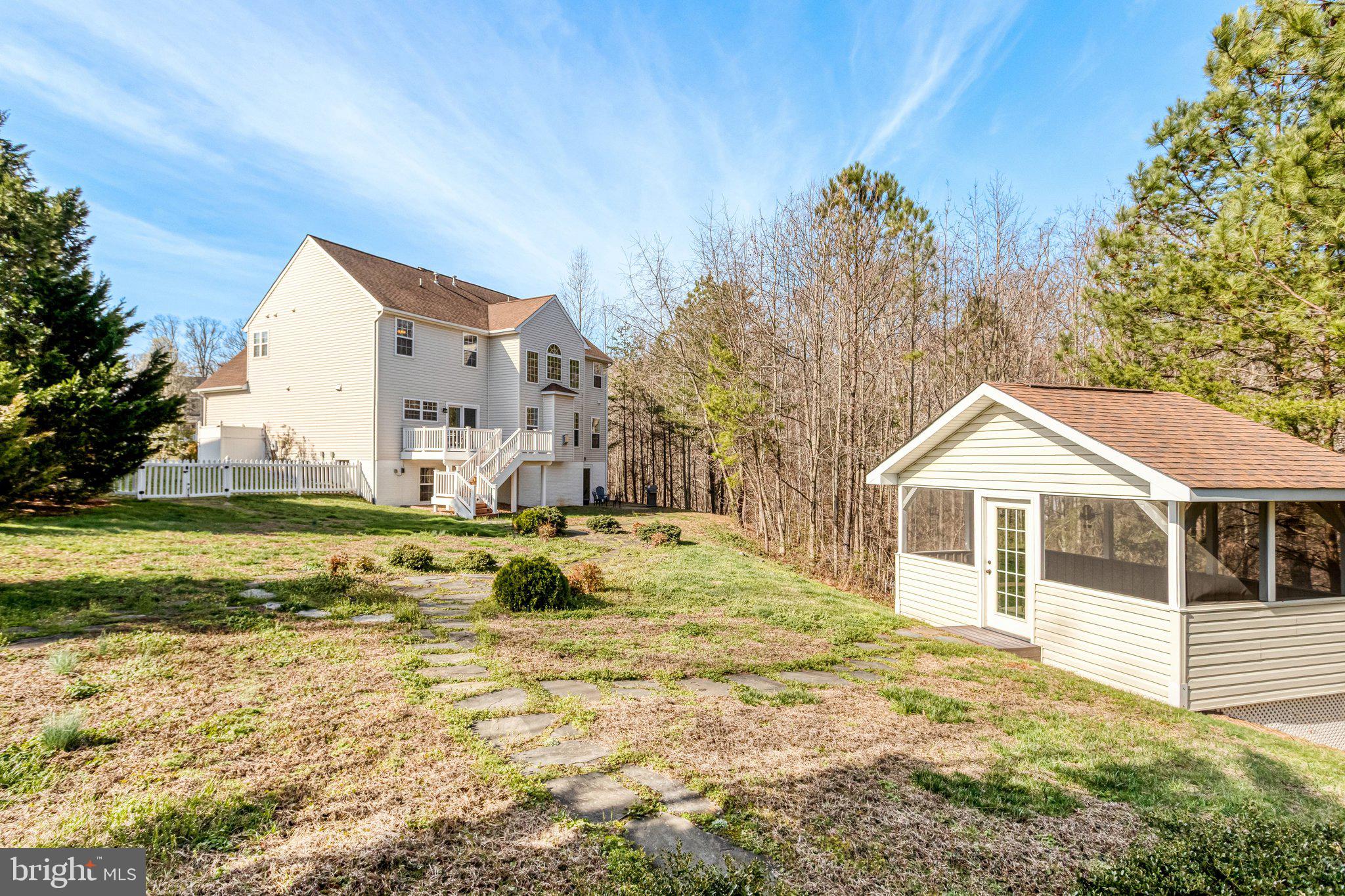 OPEN HOUSE SATURDAY 4/11 from 12:00 pm to 2:00 pm Welcome to this stunning newer home, perfectly tucked away on a quiet cul-de-sac in one of Fredericksburg’s most convenient and desirable locations. Situated on over half an acre, this property boasts one of the largest private wooded lots in the cul-de-sac—offering exceptional space, privacy, and tranquility just minutes from everything.With over 4,200 square feet of beautifully finished living space, this home is designed to impress at every turn. Enjoy peaceful mornings and relaxing evenings on the charming wrap-around porch overlooking mature trees and scenic surroundings.Inside, a bright and open floor plan welcomes you with a dramatic two-story foyer and family room, highlighted by a cozy fireplace and expansive windows that fill the home with natural light. The main level also features a formal dining room, living room, and private office, all accented with hardwood flooring.The gourmet kitchen is ideal for both everyday living and entertaining, offering granite countertops, double wall ovens, ample workspace, and seamless flow into the main living areas. Step outside to the composite deck—perfect for hosting gatherings or enjoying the serene, fully fenced backyard complete with a charming “she shed.”The spacious primary suite serves as a true retreat, featuring a luxurious ensuite bath with soaking tub, separate shower, double vanity, and an oversized walk-in closet. A main-level office provides the perfect work-from-home setup. Three more generous size bedrooms and full bathroom are on this level.The fully finished walkout basement offers incredible additional living space, including two large recreation/entertainment area, a versatile den ideal for a guest room or second office, and a full bathroom. Step out to the patio and enjoy evenings by the firepit in your private backyard oasis.Additional highlights include a two-car garage and thoughtful upgrades throughout. Dual HVACLocation is everything, and this home delivers:Less than one mile to the Historic Downtown Fredericksburg District with its charming shops, dining, and entertainment. Minutes to Central Park, one of the region’s premier shopping and dining destinations.Quick access to I-95 for easy commuting, Convenient to the Fredericksburg VRE Station with direct access to Northern Virginia and Washington, D.C.. Close proximity to Marine Corps Base QuanticoThis rare combination of space, privacy, and unbeatable location makes this home a truly exceptional opportunity in Fredericksburg.
