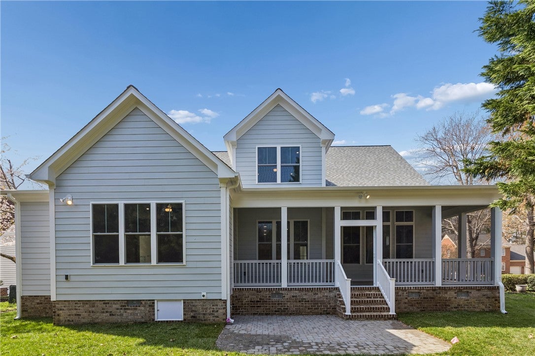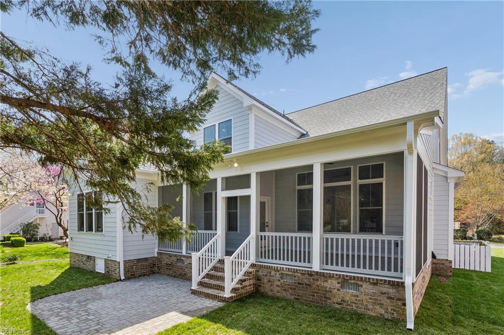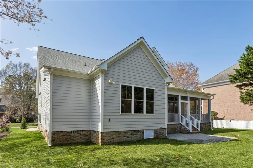 An elegant blend of southern ambiance & timeless architecture...an exceptional lifestyle awaits in the private golf & marina community of Governor’s Land. This Cape-Cod style home with its inviting front veranda is ideally located near the scenic walking trail bordering the James River. The rear veranda serves as a peaceful sanctuary, offering idyllic views of the large fenced yard framed by wooded privacy, with glimpses of the golf course & seasonal views of the James River. Inside showcases light filled freshly painted rooms, beautiful millwork, effortless flow, & gracious 1st floor living. The spacious kitchen provides multiple workspaces, a casual dining area, & opens to the sunroom for easy entertaining. The 1st floor primary suite features a luxurious bath, a remodeled walk-in closet, & access to the veranda. The 2nd floor includes 3 en-suite bedrooms, a bonus room with wet-bar and back stairs, a multipurpose space with potter sink, and great conditioned storage space! For peace of mind: New roof, encapsulated & conditioned crawl space, carpet, paint, trim, custom closet system in primary bedroom, landscaping, water filtration system!