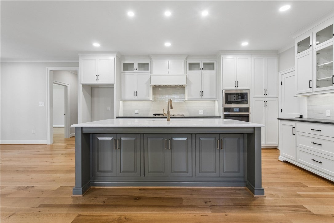 Where elegance meets comfort, this stunning home is designed for those who appreciate the finer things in life & want a welcoming, luxurious sanctuary. Upon entering, youre greeted by a grand foyer and an open floor plan that immediately makes you feel at home. The main level features a spacious in-law suite with a separate kitchen & lounge area, providing privacy and comfort for extended family or guests. The inviting family room, with its cozy gas fireplace & built-in cabinets, flows effortlessly into a gourmet kitchen. Youll find granite countertops, modern appliances, and a wine fridge ideal for family meals and entertaining friends. This beautiful home has plenty of space with four additional bedrooms, including a versatile finished room over the garage. Whether you need a guest suite, home theater, or kids playroom, this room offers flexibility to suit your needs. The formal dining room, adorned with elegant chair rail molding and large windows, is perfect for enjoying meals with loved ones. Imagine sipping your morning coffee on the charming front porch or hosting summer barbecues on the patio & screened back porch, minutes to the county club, swim center, tennis, and walking trails.