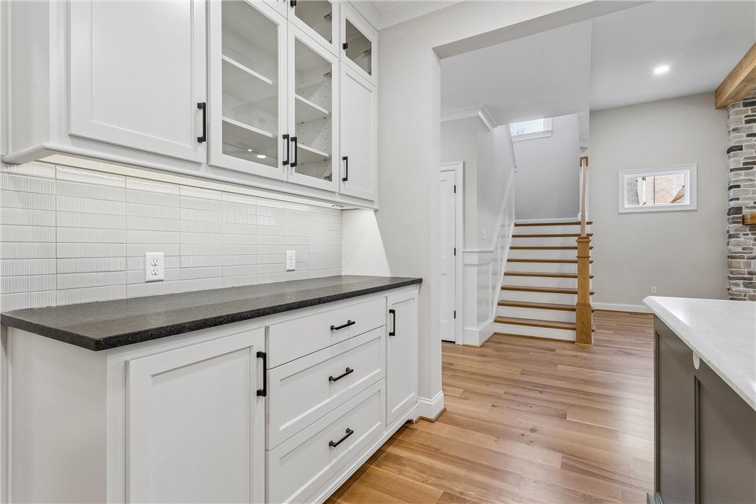 Discover a private sanctuary offering tranquil pond views and extensive updates completed since September! This light-filled masterpiece boasts soaring 10 ceilings on all three levels and floor-to-ceiling windows that welcome the outdoors in. Meticulous improvements include a new roof with 40-year shingles, fresh interior/exterior paint, new decking, and gleaming refinished hardwood floors. The chefs kitchen, complete with a butlers pantry, flows seamlessly into open living spaces and a serene year-round sunroom. Escape to the luxurious, remodeled primary suite or entertain on the massive 1,000 sq ft deck overlooking park-like grounds. The impressive 1,400 sq ft walk-out basement features a full bath and wet bar rough-in, offering limitless potential for recreation or expansion. With a temperature-controlled wine closet and a secluded feel near everyday amenities, this home is the total package. Schedule your tour today to experience this rare retreat!