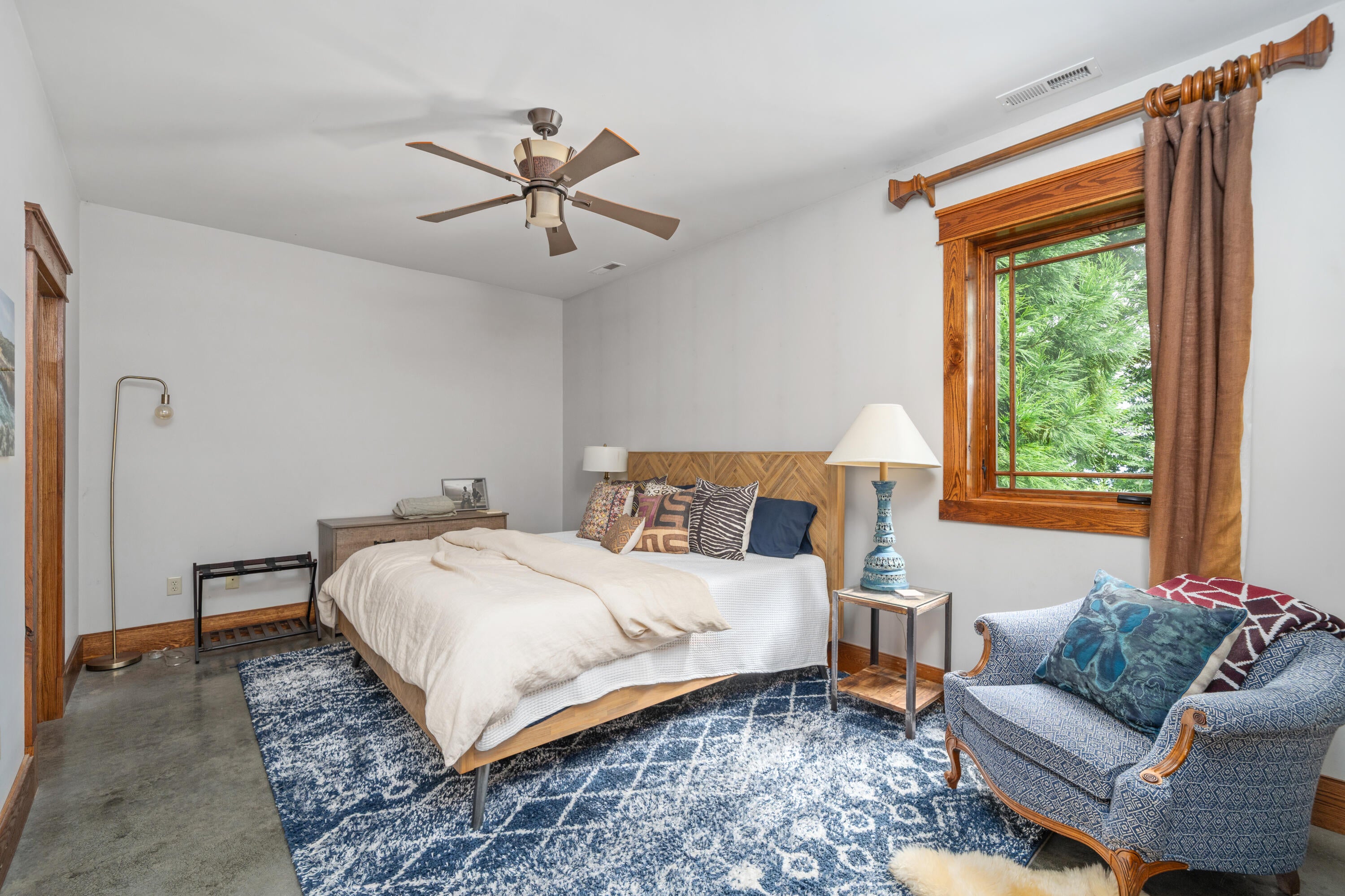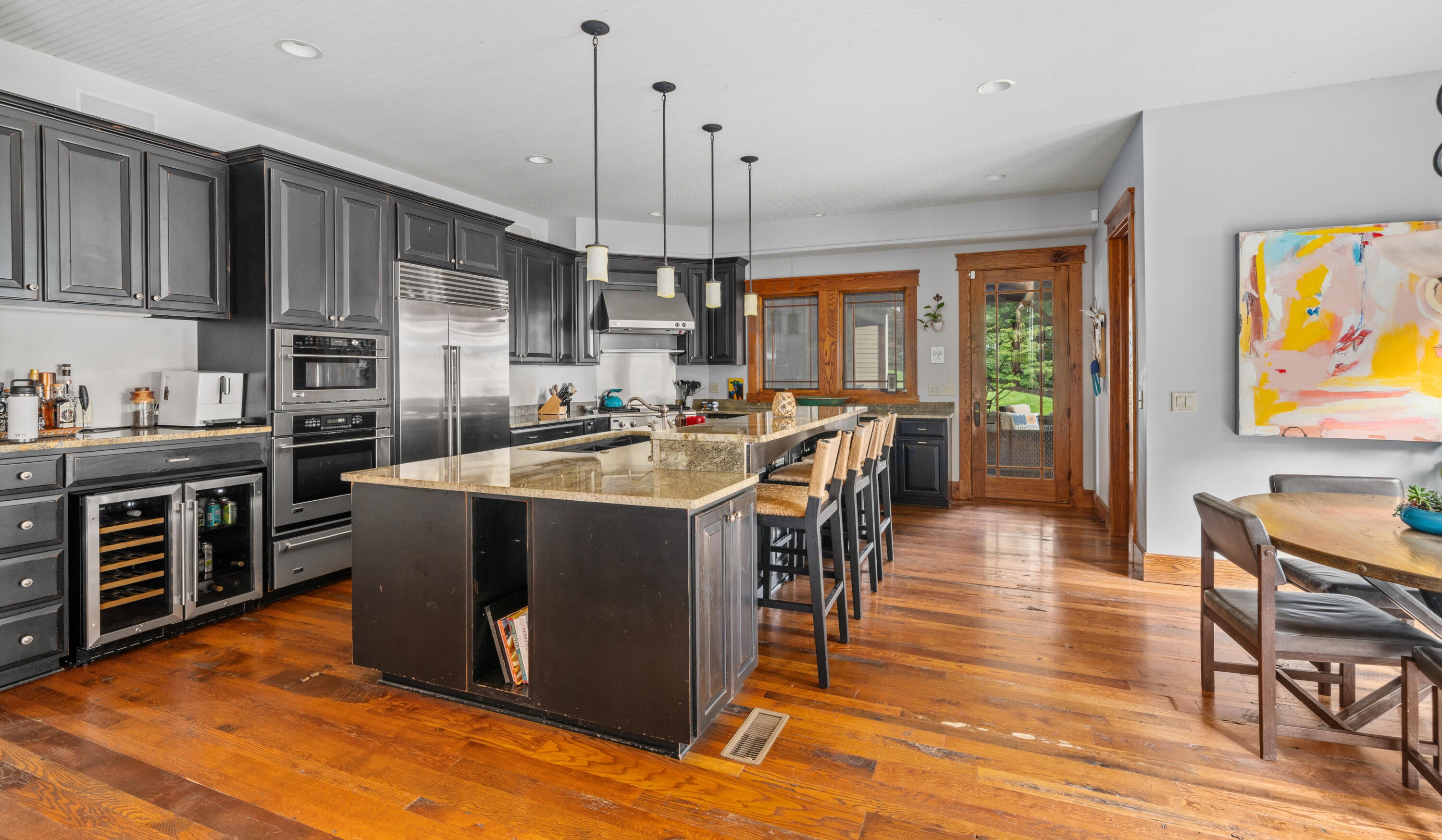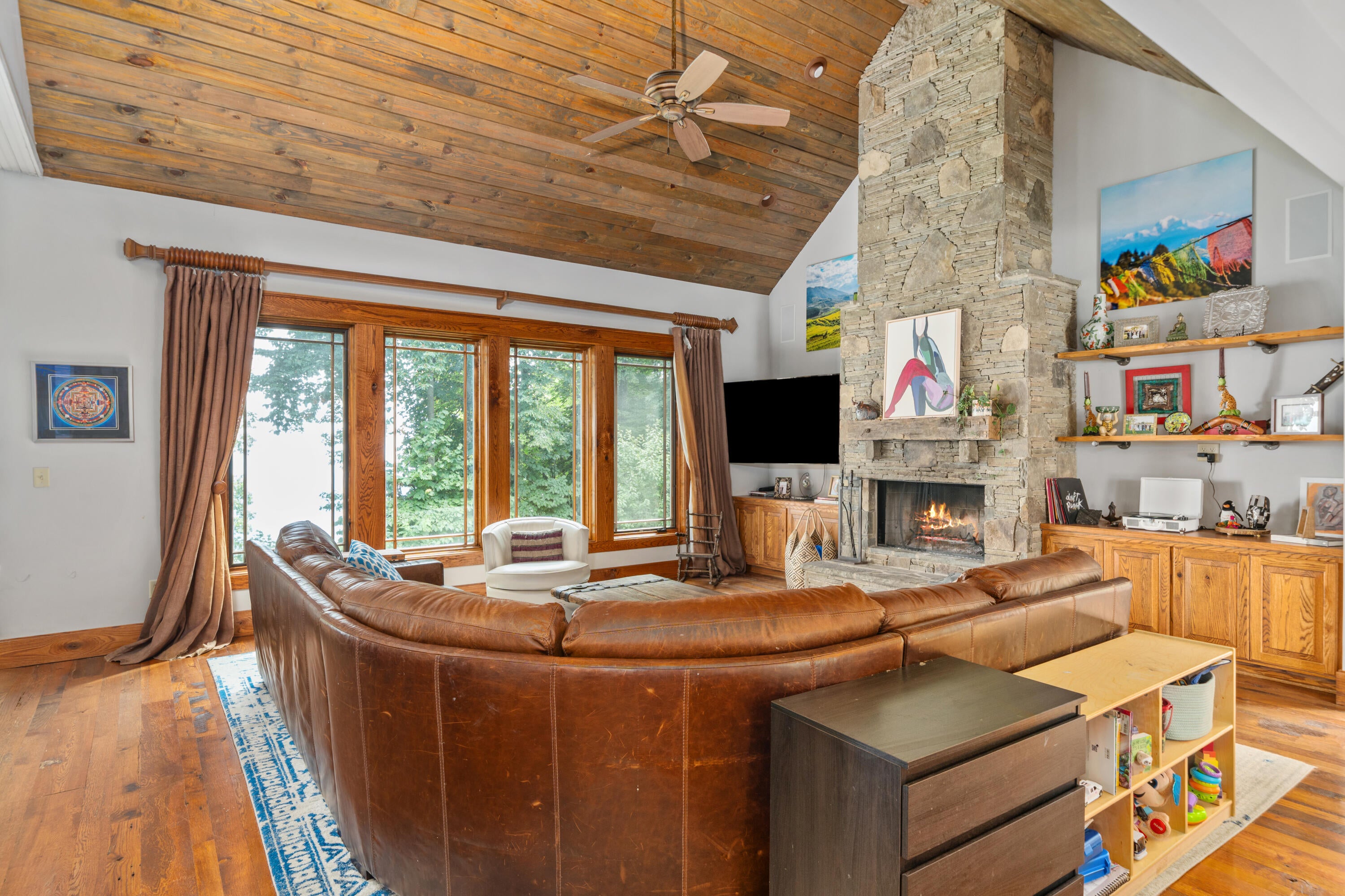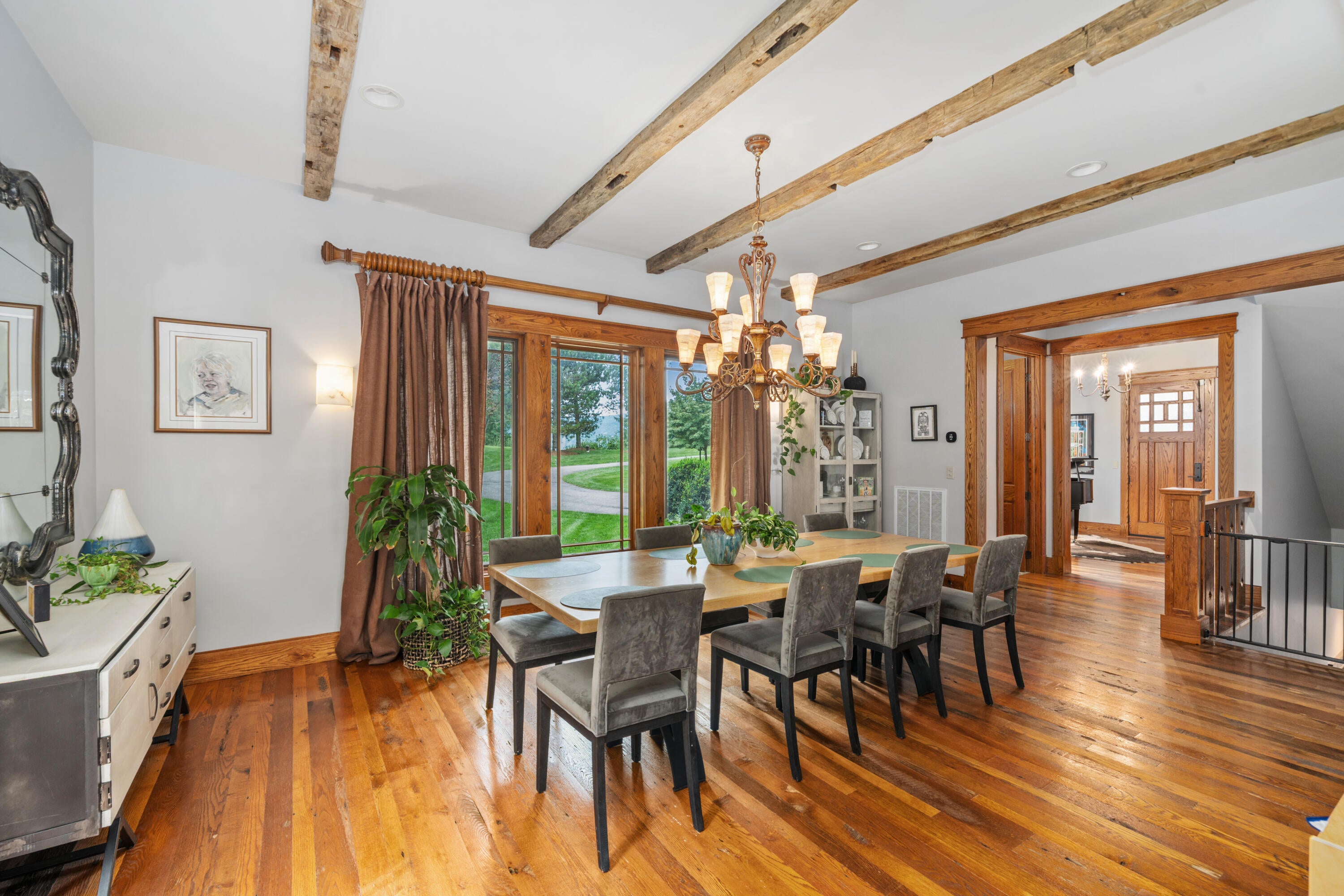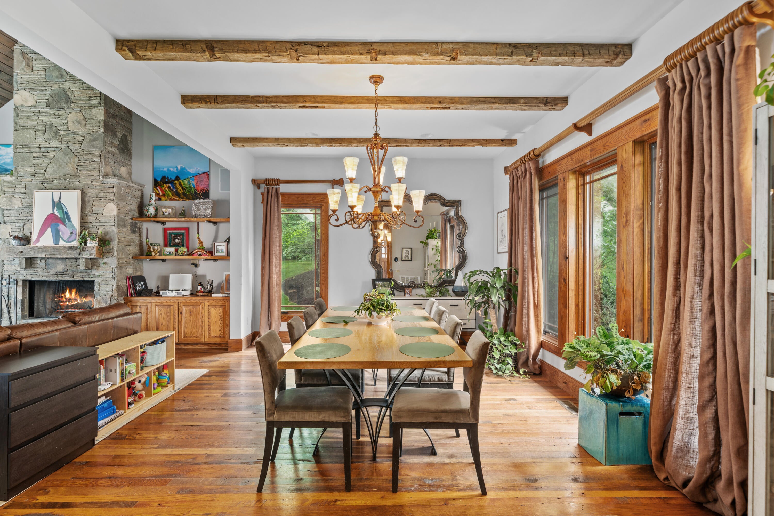 Architect-designed and originally built as his personal home, this custom mountain retreat now spans 26.5 acres with panoramic Roanoke Valley views. Interior highlights include reclaimed wood floors, solid oak doors, vaulted ceilings, and Pella windows/doors. The gourmet kitchen offers a massive island, granite, Subzero fridge (2023), and excellent deep-well water.
