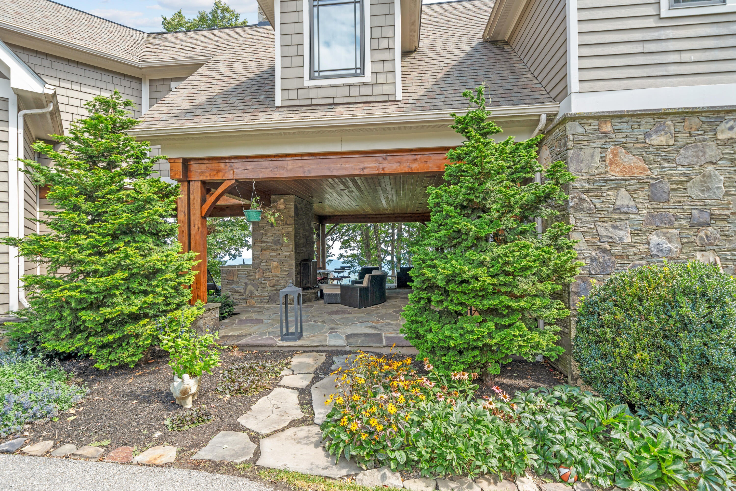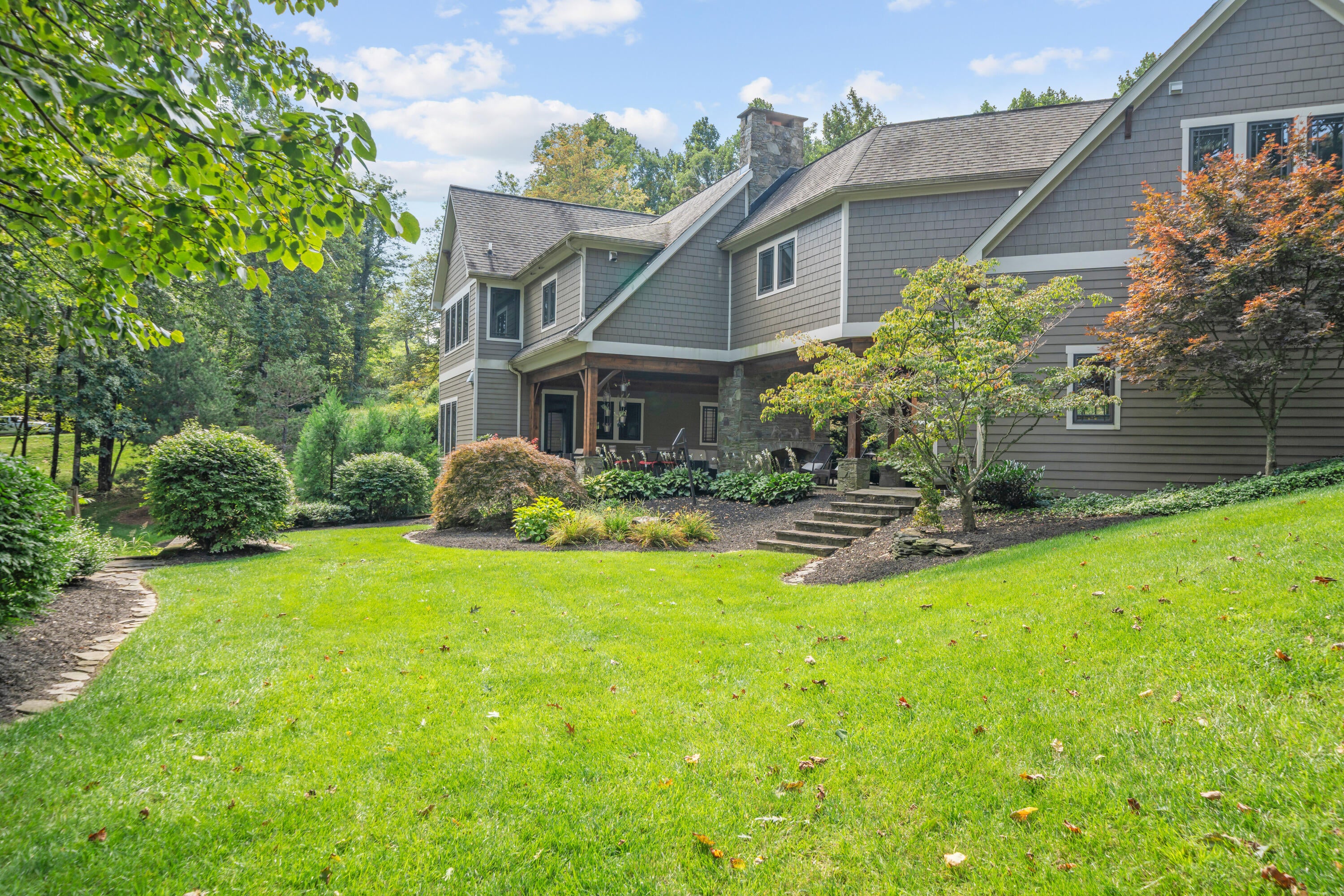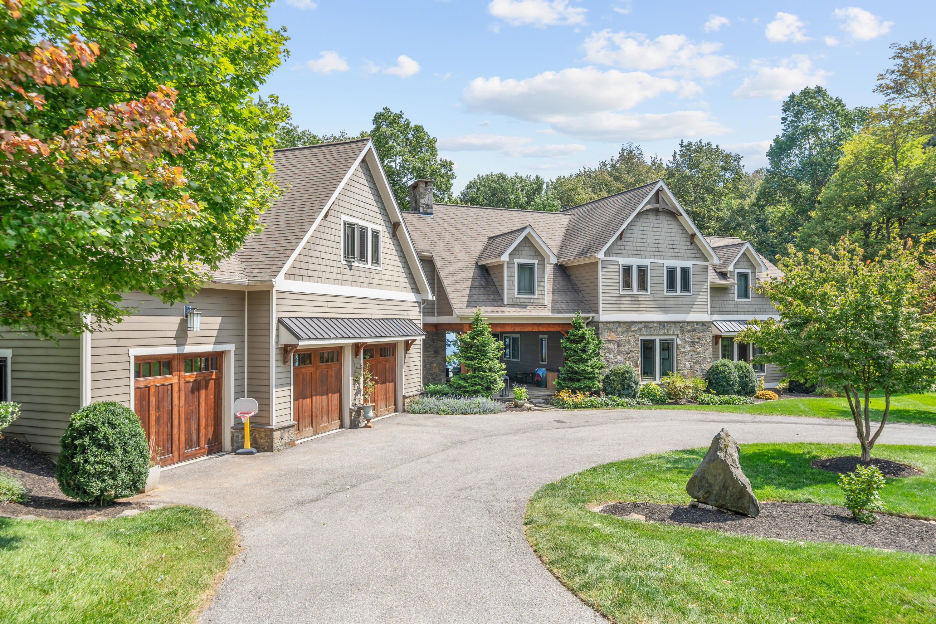 Panoramic mountain views and 23 acres of usable land make this Craig County estate a standout. The main home offers 5,550 square feet of living space with cherry cabinetry, granite countertops, cathedral ceilings, hardwood floors, and stone fireplaces crafted from materials sourced on-site.