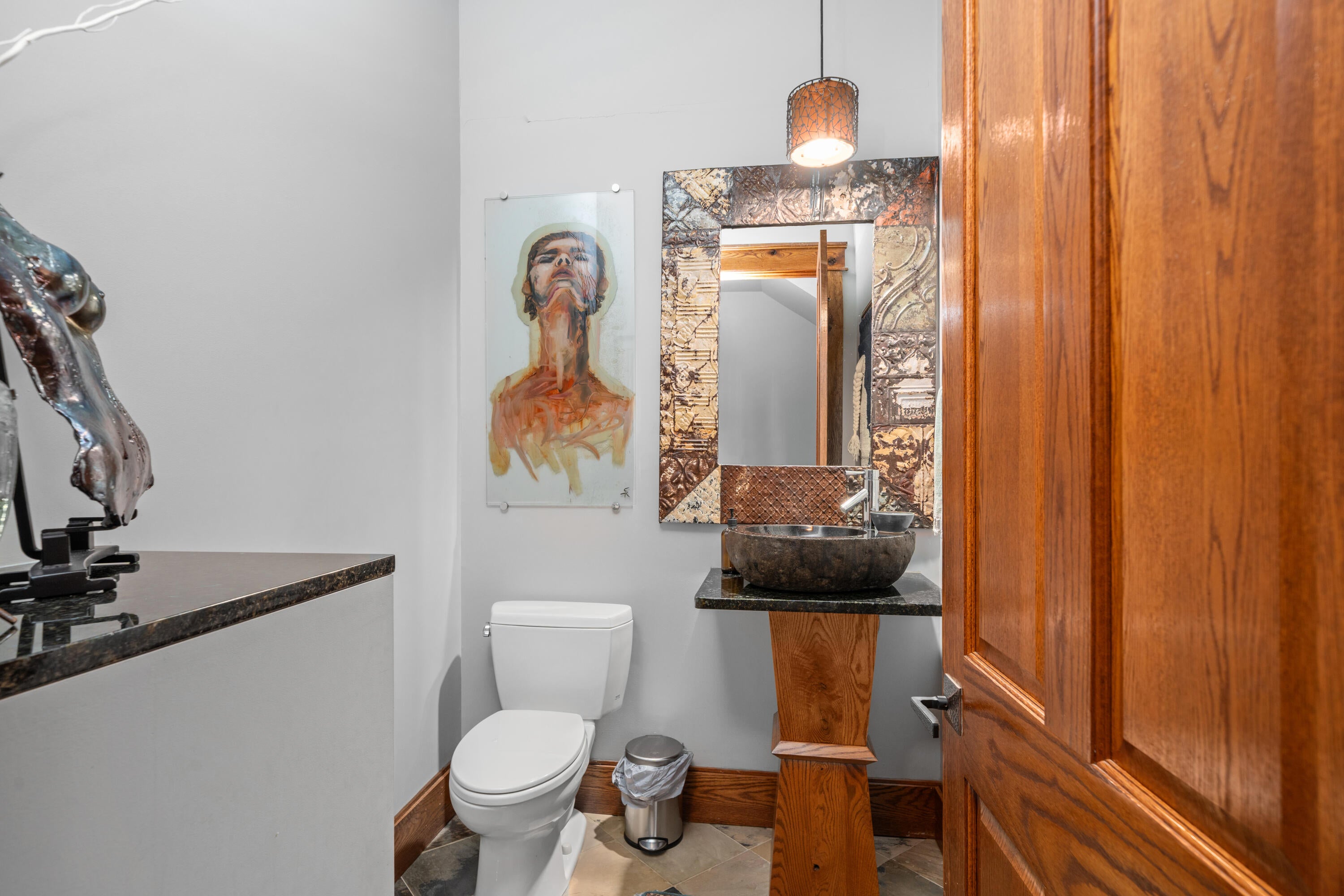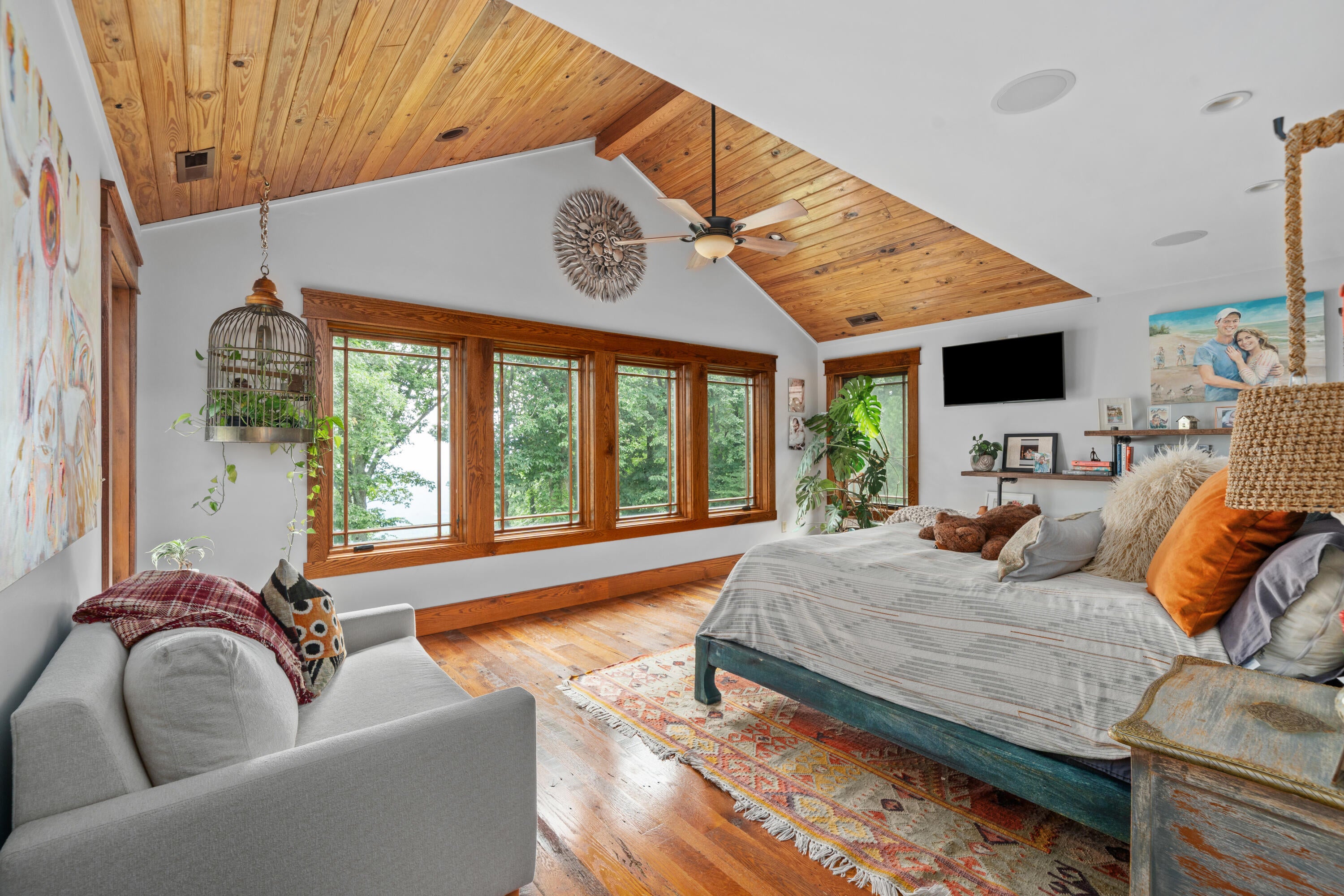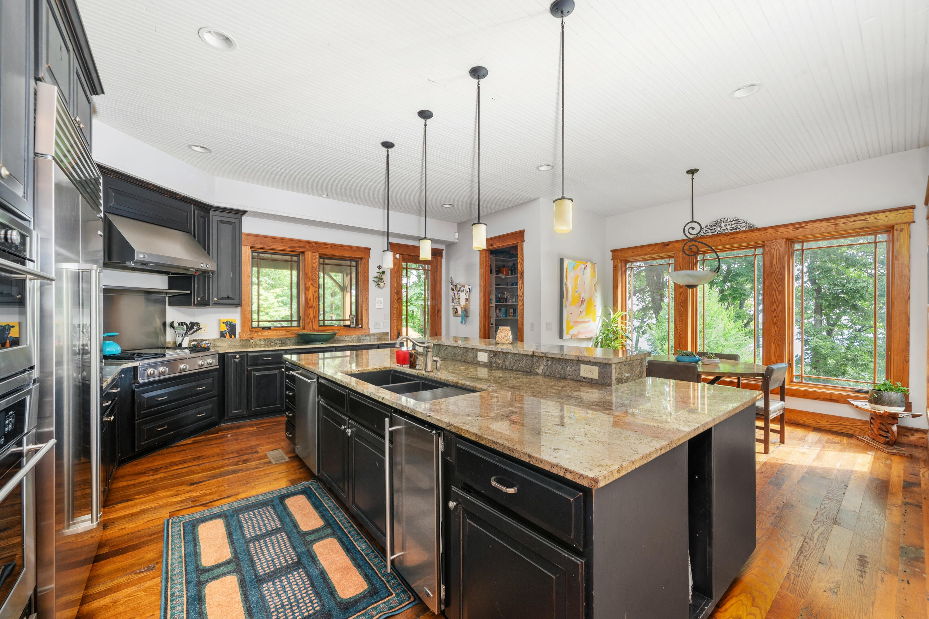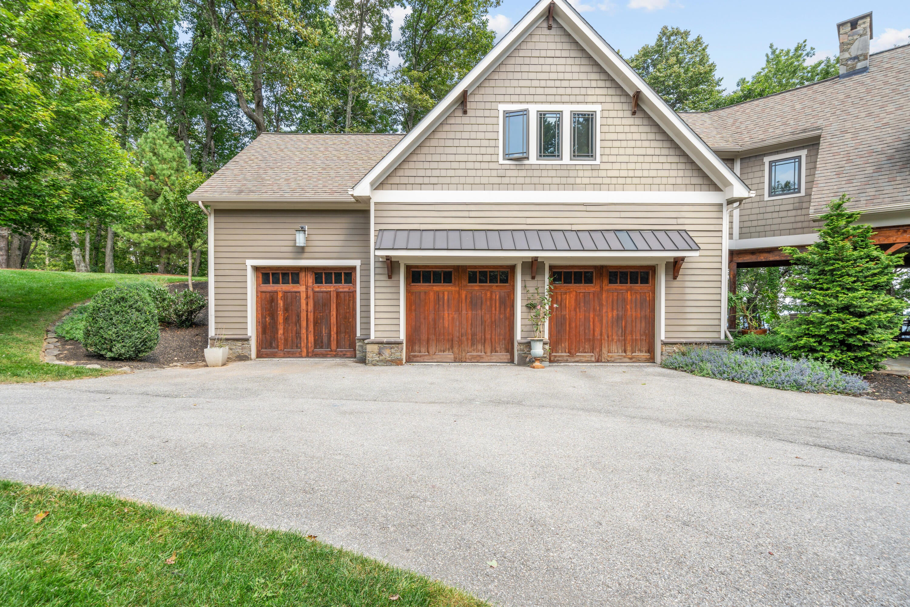 Panoramic mountain views and 23 acres of usable land make this Craig County estate a standout. The main home offers 5,550 square feet of living space with cherry cabinetry, granite countertops, cathedral ceilings, hardwood floors, and stone fireplaces crafted from materials sourced on-site.