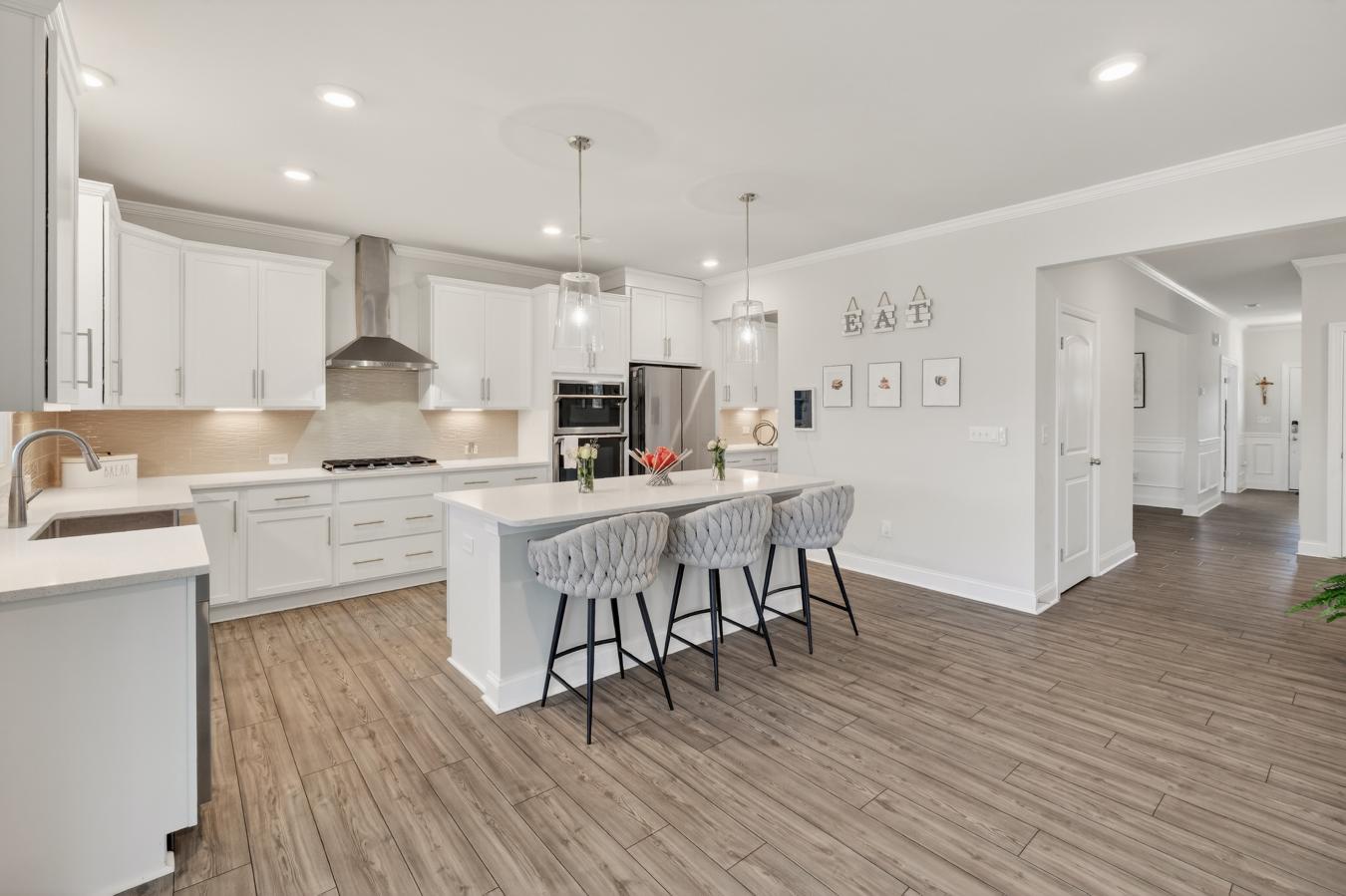 Our largest home in Moore Farm with convenient access to Indian Trail, Waxhaw, Matthews, Ballantyne, & South Charlotte. Established amenities incude a resort-style pool, playground, pickleball courts, grills, walking trails, and yard maintenance included through the HOA! This York home features a bedroom with a full bath on the main level, a perfect spot when guests come to stay. The open kitchen includes a huge island, 42 cabinetry, quartz countertops, stainless steel GE appliances, and a walk-in pantry. The owner's bedroom features a tray ceiling, 2 walk-in closets and an en suite bath with an extended dual vanity & tiled walk in shower. Call today to schedule your appointment to learn more!