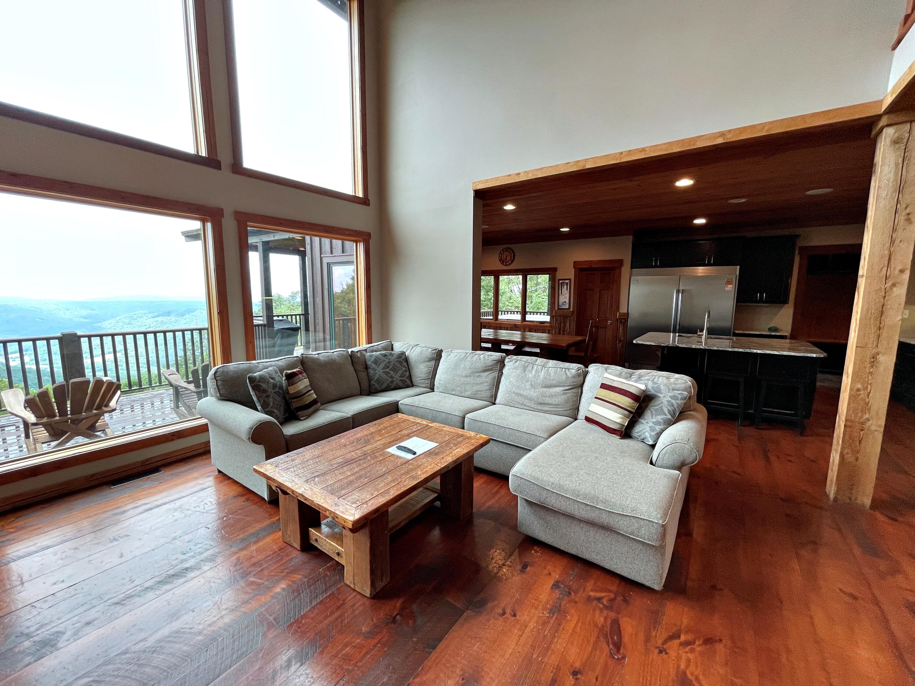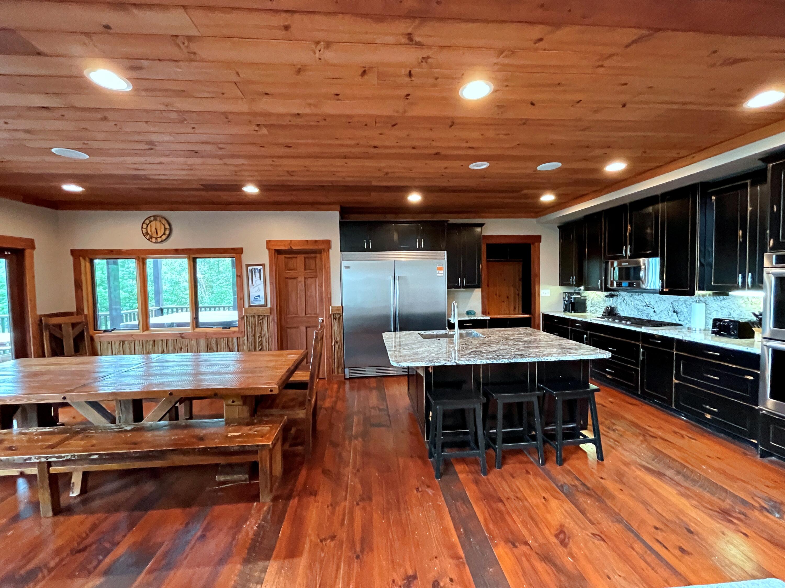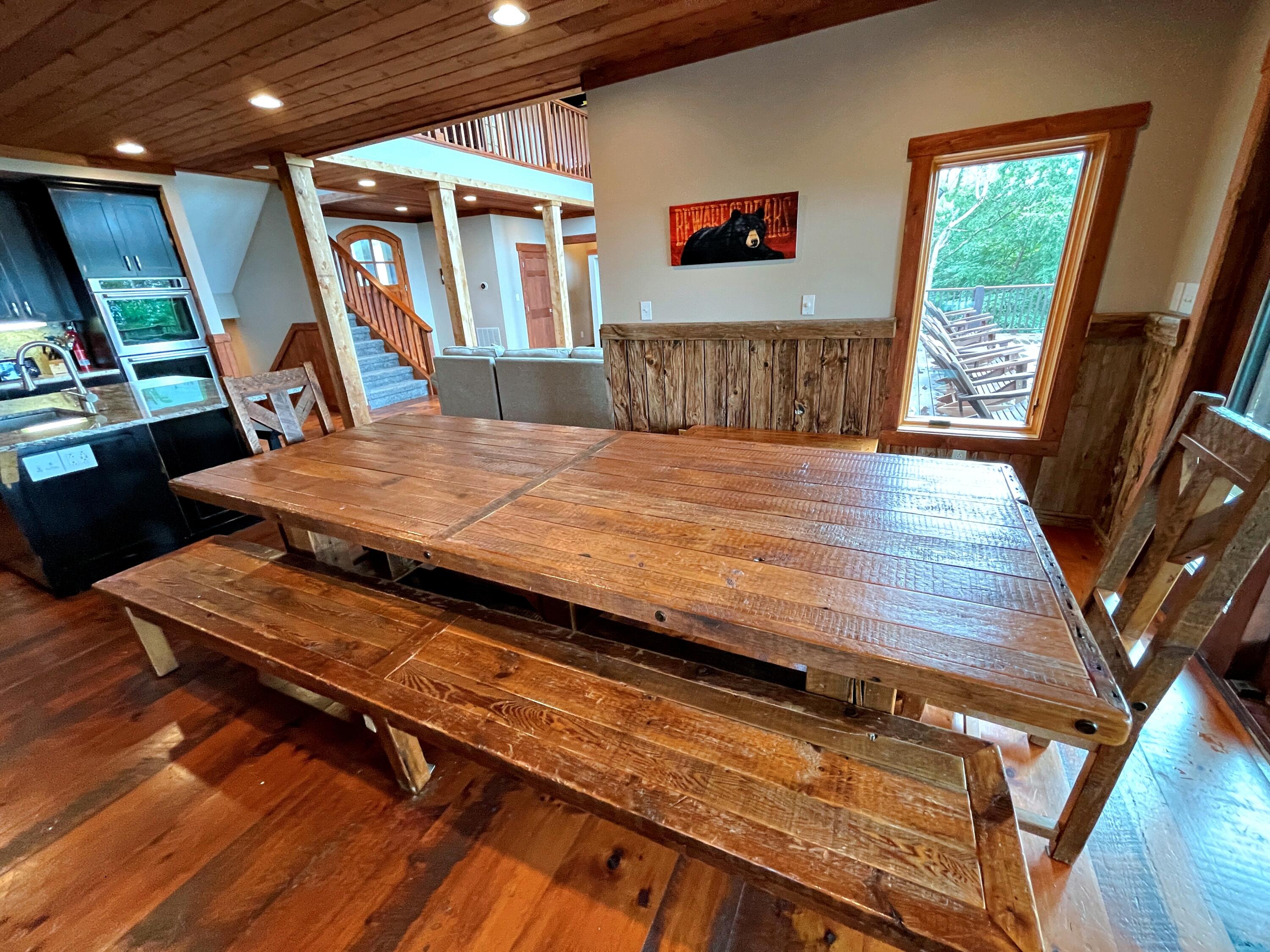 Welcome to Loggers Rest a custom-built, luxury mountain retreat in the heart of Snowshoe, WV. Designed by the original owner with high-end finishes and thoughtful details throughout, this expansive 7-bedroom, 5-bath home offers over 3,900 square feet of fully furnished living space across three levels, comfortably accommodating up to 27 guests. The gourmet kitchen is a chefs dream, featuring a 66 wide fridge/freezer, double oven, gas cooktop, oversized island, & a brand-new dishwasher, perfect for hosting large gatherings. The custom barnwood dining table seats 16 with ease. Classic, rustic pine flooring, the stunning stone-faced gas fireplace in the great room is perfect for apres ski time, having guests enjoy game night, movies, or watch the beautiful sunsets. Click on More