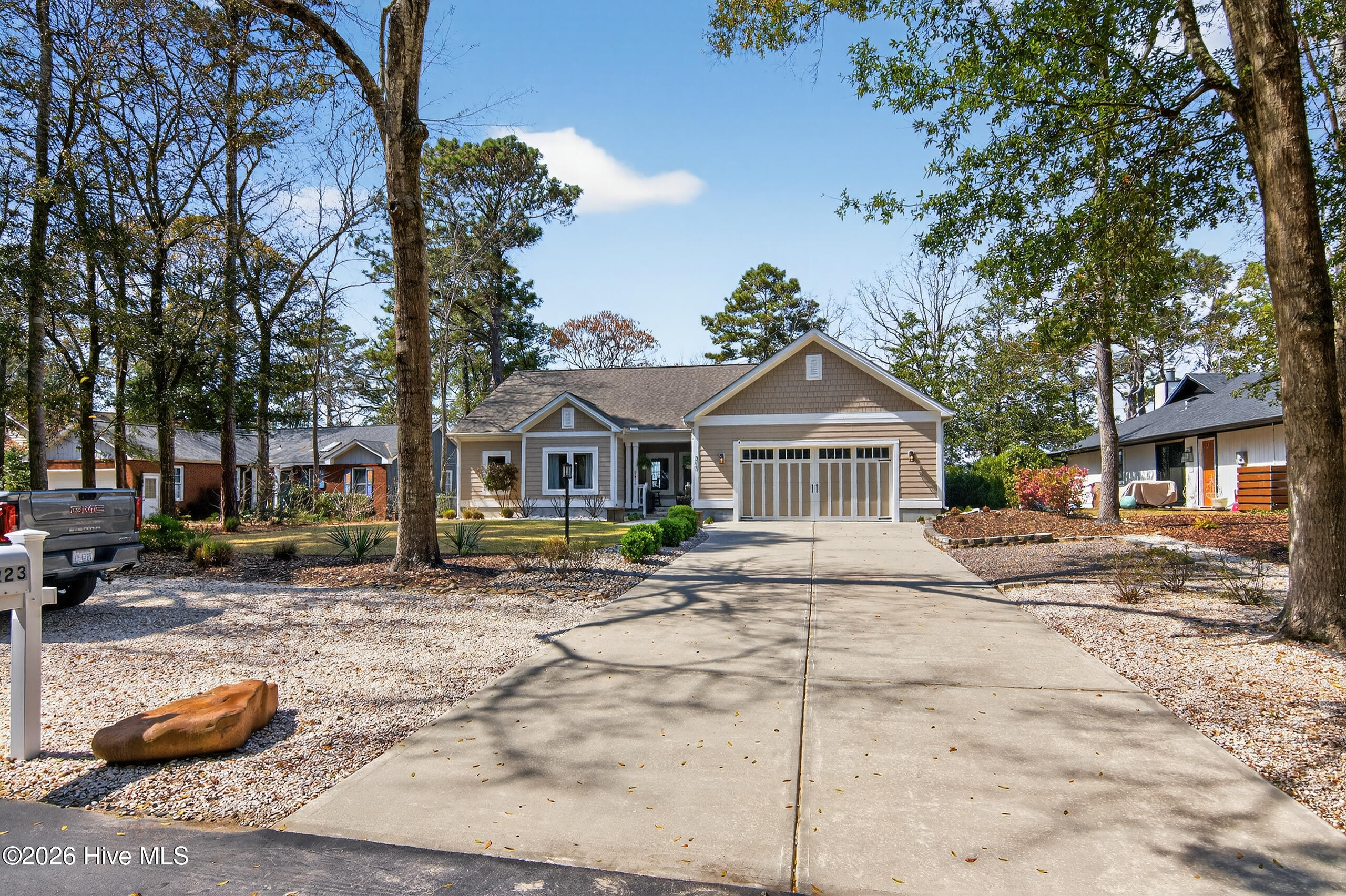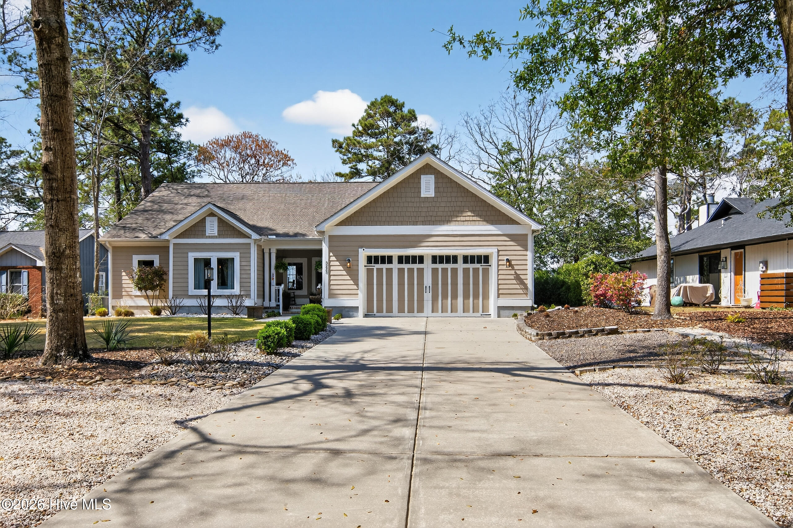 This charming coastal home offers 3 bedrooms, 2 full bathrooms, and 1,762 sq ft, set on a spacious .42-acre homesite (120 x 150) just a short stroll from the heart of Carolina Beach. Hardwood floors run throughout the main living areas, while the expansive 12 x 23-ft sunroom with tile flooring offers flex space as a home office, playroom, or additional gathering space. The kitchen features a double sink plus prep sink, gas range, newer dishwasher (2025), bar overhang seating, and an eat-in dining area. An adjacent scullery/laundry room offers ample storage. The primary suite includes an en suite bathroom with a walk-in shower, while two other bedrooms provide comfortable accommodations for family or guests. Additional highlights include recently painted exterior (2025), new roof (2024), newer water heater (2022), and whole-house gutters. Outside, the large detached two-car garage and separate shed provide excellent storage. The wraparound driveway offers generous parking for guests, boats, or recreational vehicles. Enjoy cookouts with friends and family on the patio or relax in the large fenced backyard. An outdoor shower makes rinsing off after beach days easy. For buyers or developers looking for additional possibilities, the spacious homesite may also present a future development opportunity. If the detached garage were removed, the backyard would allow for the creation of an additional 50 x 120 homesite. Under current R-3 zoning, this would meet the 6,000 sq ft requirement. Located just a short golf cart ride from the beach and directly across from Carolina Beach State Park, this home offers easy access to miles of nature trails, boating, and outdoor recreation. You're also just minutes from local breweries, dining, shopping, and only eight blocks from the iconic Carolina Beach Boardwalk. Call today to make this yours!
