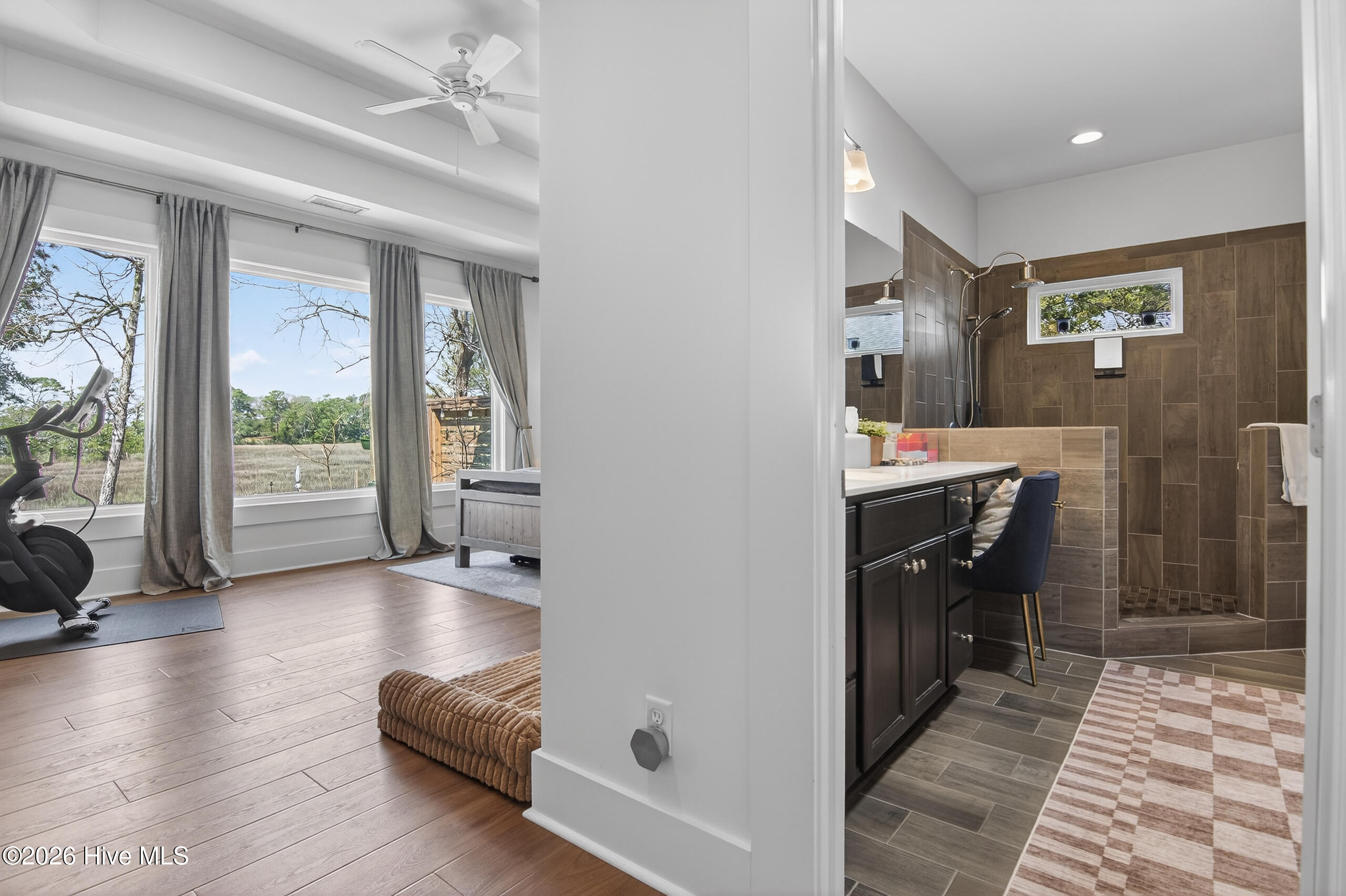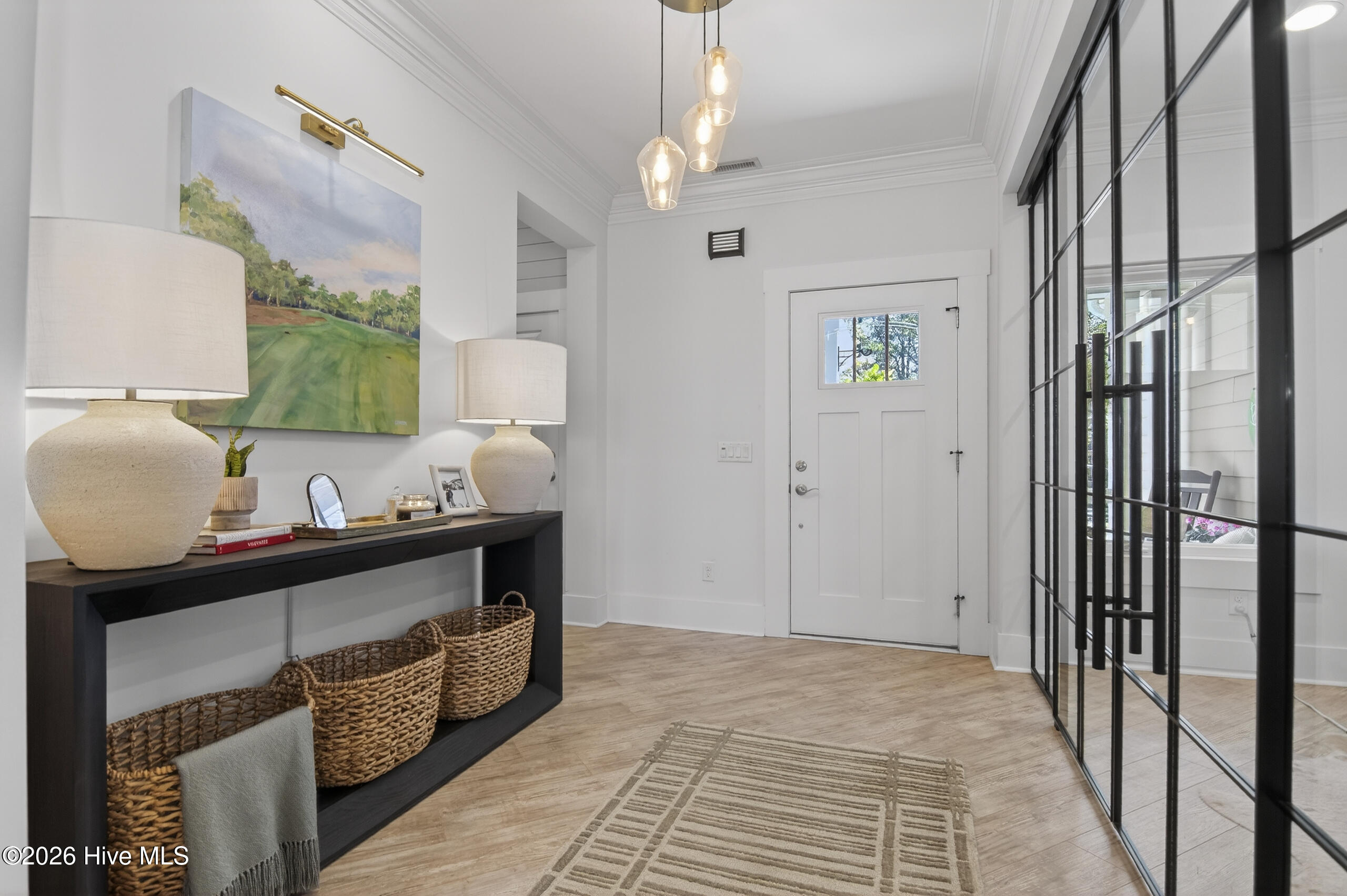 Welcome to luxury living in the coveted Marsh Landing Place! Situated on a beautiful .21-acre lot, this new construction home offers 3,251 sq ft of stunning space. Step inside to enjoy an open floor plan, gorgeous luxury vinyl plank floors, exposed wood beams, and a sleek linear electric fireplace that frames picturesque views of your private, wooded backyard. The chef's kitchen showcases quartz countertops, soft-close cabinetry, 48'' craftsman cabinets with stacked uppers and crown molding, stainless steel appliances, an expansive island, and a custom butler's pantry. The first-floor primary suite offers a serene retreat, complete with a board-and-batten accent wall and private access to the covered porch. The spa-like en suite bathroom is designed for relaxation, featuring dual vanities, a soaking tub, a fully tiled walk-in shower, with access to the spacious walk-in closet. Upstairs, a large sitting area is perfect for a media room or playroom, with sliding doors to the covered porch. A second primary suite boasts a luxurious bathroom with a zero-entry, fully tiled shower. Two additional bedrooms are strategically placed for maximum privacy, while the fourth bedroom enjoys easy access to the third full bathroom. Designed with versatility in mind, this home includes a dedicated office space, perfect for remote work or a home gym, plus a bonus bunk bedroom for extra guests. On the ground level, you'll find two garage bays, a mudroom, and optional elevator access to all levels, ensuring convenience at every turn. The private backyard overlooks the lush tree line, offering a peaceful natural setting to unwind. Living in Marsh Landing Place means access to resort-style amenities, including walking trails, a swimming pool, and a clubhouse. Plus, you're just minutes from Mayfaire shopping center, Wrightsville Beach, and some of the area's best dining and entertainment options. Please note some website feeds are displaying an error, the HOA dues are 120/month.