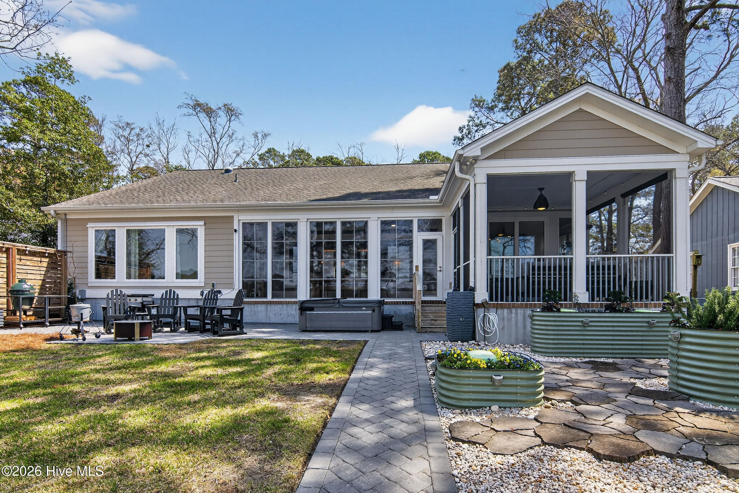 This charming coastal home offers 3 bedrooms, 2 full bathrooms, and 1,762 sq ft, set on a spacious .42-acre homesite (120 x 150) just a short stroll from the heart of Carolina Beach. Hardwood floors run throughout the main living areas, while the expansive 12 x 23-ft sunroom with tile flooring offers flex space as a home office, playroom, or additional gathering space.
