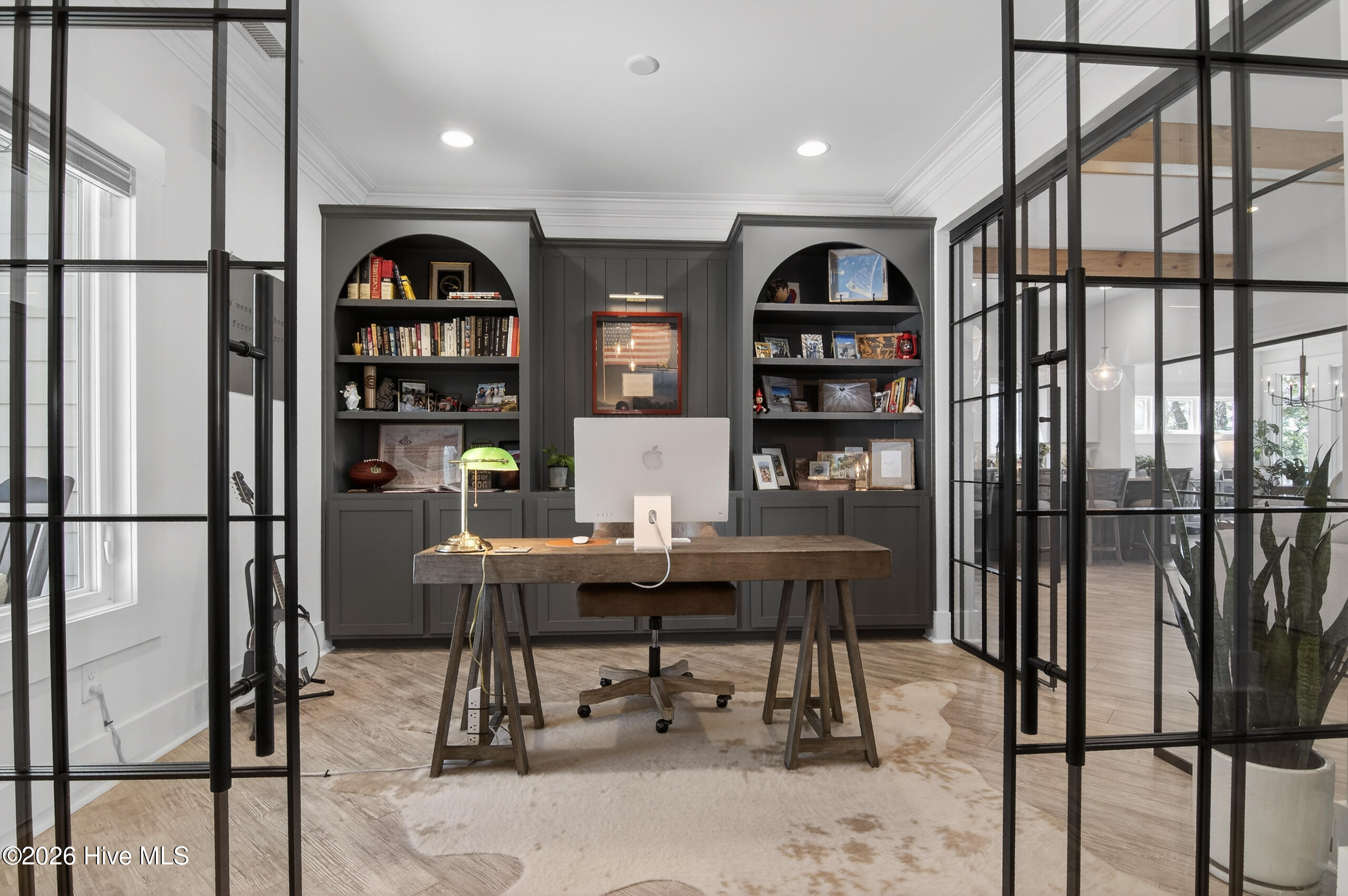 Gorgeous coastal home in the desirable community of Anchors Bend. Offering 4 bedrooms, 4.5 bathrooms, office, sunroom, bonus room, and upstairs family room, this home delivers both comfort and convenience across 3,708 sq ft on a .23 acre lot.A welcoming covered front porch leads into a two-story foyer, flanked by a spacious office with French doors and a formal dining room with tray ceiling, crown molding, and wainscoting. The open-concept living room impresses with a coffered ceiling, gas fireplace, and seamless flow into the kitchen. Here, granite counters, an oversized island, LG refrigerator, GE Profile gas range with hood, LG ThinQ dishwasher, craftsman-style cabinetry, and walk-in pantry create a stylish and functional heart of the home. Just beyond, a light-filled sunroom with quad sliding doors opens to an expansive fenced backyard complete with playground, travertine patio, and professionally designed landscaping.The first-floor primary suite is a retreat, with tray ceiling, dimmable lighting, motorized roller shades, and a fully renovated spa-like bathroom (2024) featuring a freestanding tub, dual vanities with lighted mirrors, and a fully tiled walk-in shower.Upstairs, three additional bedrooms each include their own private bath, while bonus rooms offer flexible space for work or play, plus walk-in conditioned storage.Added upgrades include continuous hardwood flooring, a Briggs & Stratton whole-house generator (2023), landscape lighting, and a renovated garage with epoxy floors, extensive built-ins, and a connected mudroom and laundry room.Anchors Bend residents enjoy top-notch amenities: a neighborhood pool, clubhouse, open-air pavilion, and 2 acres of recreation space-all just steps from the Intracoastal Waterway and Anchors Bend Marina. With day boating to Rich's Inlet, proximity to Mayfaire and Wrightsville Beach, and no city taxes, this home captures the best of coastal Carolina living.
