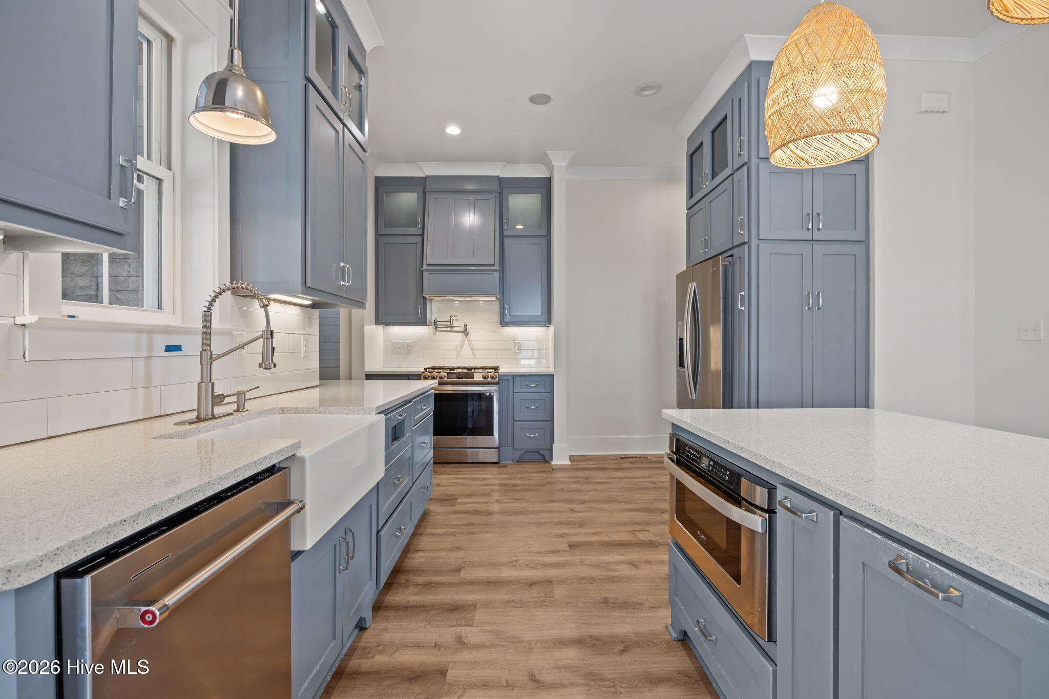 This absolutely breathtaking coastal home and deeded boat slip with lift embodies the very best that Emerald Isle living has to offer. The open floor plan, 10-foot ceilings and huge windows make the house feel absolutely grand. The attention to detail and uncompromising craftsmanship make every room special. The professional-grade gas range, cabinets galore, and farm sink will spoil any chef, and on those beautiful warm summer nights, grill outside on the custom outside kitchen on the screened-in porch. Friends, kids, dogs bring them all. There are four bedrooms, an extra playroom, and a gigantic fenced-in backyard. Walking distance to your boat perched on its lift or the growler for a cold cocktail, this oasis is central to everything you could want to do.