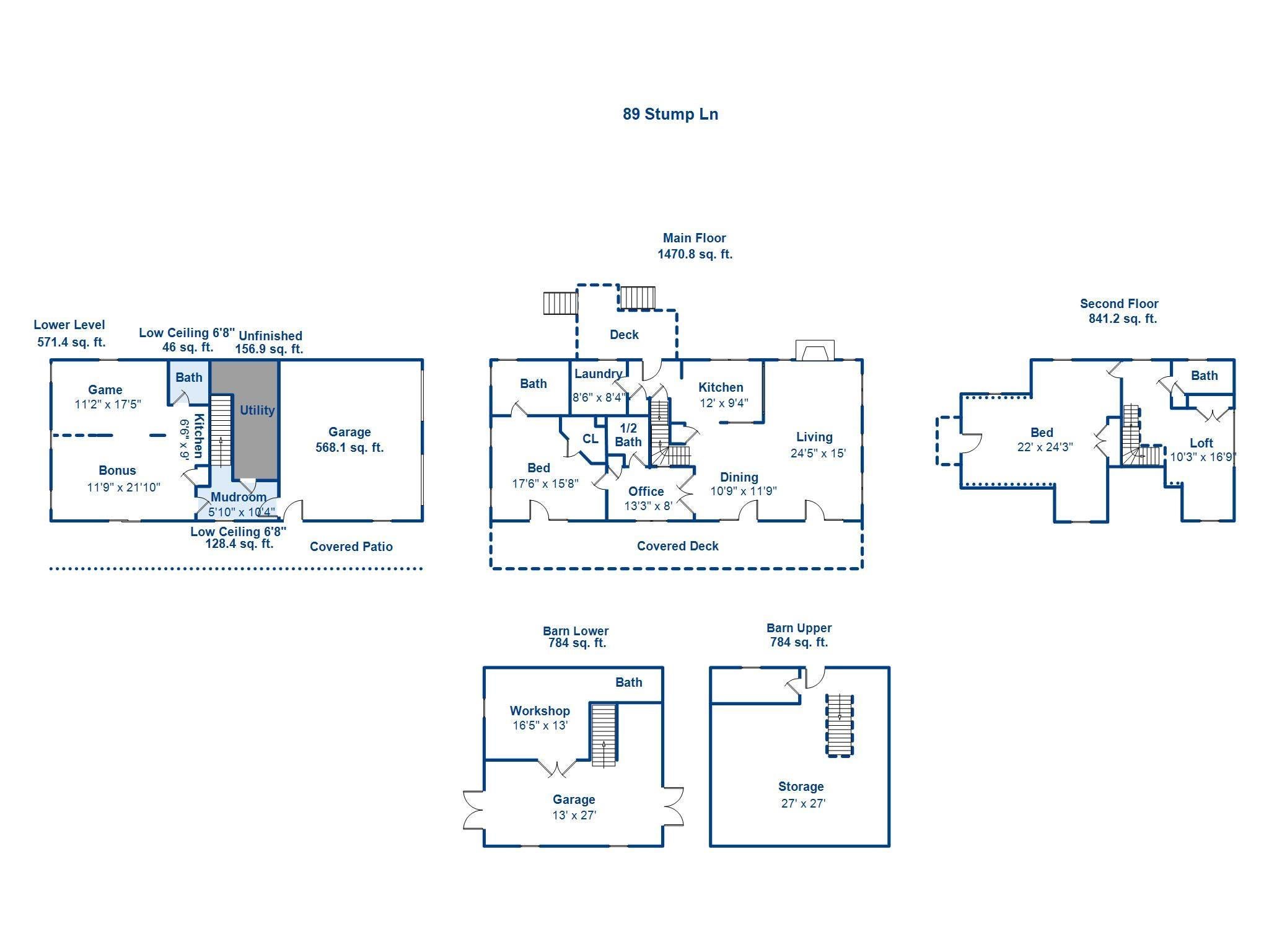 Four homes, a barn, mountain views, and the peaceful sounds of Johnson Branch Creekall on 2.47 beautifully maintained acres at approximately 3,300 feet in elevation. This unique mountain property offers flexibility, privacy, and strong income potential, making it ideal as a private retreat, family compound, or investment opportunity. Short-term rentals are allowed, and the setting provides a cool summer escape surrounded by natural beauty. Main House: The main home features 3 bedrooms and 3.5 baths, highlighted by a dramatic two-story great room with tongue-and-groove ceilings, hardwood floors, and access to a full-length covered porch with hot tub. The kitchen includes convenient pass-throughs to the dining and living areas. The main level also offers a large laundry room with pantry space, office area, and spacious primary suite with ensuite bath. Upstairs includes a bedroom, full bath, and large loft overlooking the great room. The lower level offers a walk-out apartment with covered deck, kitchen, full bath, and approximately 22x20 open living/sleeping area, plus a mudroom, utility room, and two-car garage. 41 Stump Ln (1/1), 46 Stump Ln (2/2), 26 Stump Ln (1/1.5)
