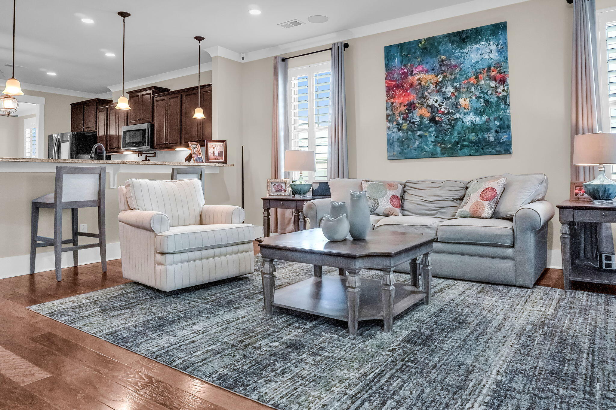 Welcome home to 208 Springrise Lane -- a true showstopper nestled in the highly sought-after Brighton Park Village section of Nexton, one of the Lowcountry's most celebrated master-planned communities. Set on a premier corner lot, this Charleston-inspired beauty makes a lasting first impression with its iconic wrap-around porch overlooking a serene pocket park -- the kind of curb appeal that stops people mid-stroll.Step inside and you'll immediately notice the craftsmanship that sets this home apart. Custom crown molding, designer ceiling fans, smart lighting, and plantation shutters throughout speak to a level of finish rarely found at this price point. Hardwood floors flow through the main living areas, where a formal dining room and a private first-floor office -- complete with customglass doors -- offer the flexibility today's buyers demand. A striking custom-designed staircase anchors the heart of the home.The kitchen is nothing short of a chef's dream -- featuring a massive island, farm sink, pot filler, custom pantry, pull-out drawers, and soft-close cabinetry, all finished with rich countertops and fixtures that elevate everyday living. The open layout flows seamlessly into the family room, making this a natural gathering space for entertaining.The primary suite on the main floor is a true retreat, boasting a spa-worthy bath with a freestanding soaking tub, oversized walk-in shower with dual shower heads, and a professionally designed custom closet system. Upstairs, a spacious loft with a game closet serves as a second living area, flanked by two bedrooms sharing a well-appointed Jack-and-Jill bath and a third bedroom with its own private ensuite. Every secondary bath has been upgraded with tile surround, and every bedroom features professionally installed custom closet systems and upgraded carpet and pad.The tech and comfort details are just as impressive: a whole-home speaker system wired to every bedroom, the office, dining room, family room, and porch; an extra-gig network; dedicated line EV charger along with dedicated line outlets in the garage, low-voltage wiring throughout; and spray foam insulation around all windows and doors for maximum efficiency. The spacious laundry room offers custom cabinetry, and the epoxied garage floor adds that final touch of polish.Out back, a screened porch with two ceiling fans, a TV, and power drops leads to a large fully fenced yard complete with a grilling patio and irrigation system -- your own private oasis.Just minutes from the award-winning dining and retail of Nexton Square, and with easy access to Brighton Park Boulevard and I-26, this home delivers the full Nexton lifestyle -- pools, parks, playgrounds, and miles of walking trails -- all at your doorstep. Homes with this level of finish and this floor plan do not last. Schedule your private showing today.