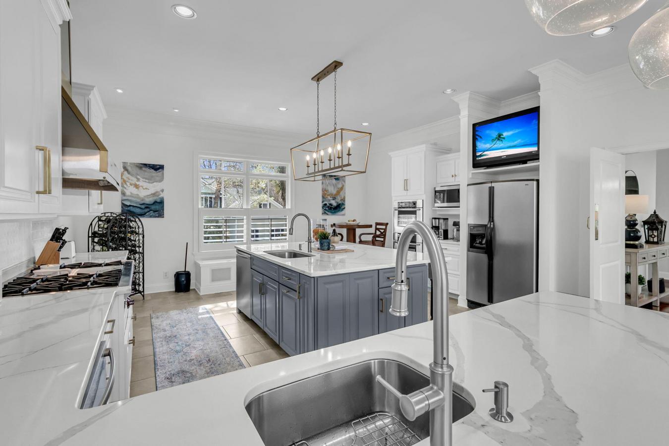 Set along the banks of Toomer Creek, this beautifully crafted waterfront home offers a rare blend of thoughtful design, quality craftsmanship, and effortless Lowcountry living. This stately custom-built home, originally constructed by a builder as his personal residence, showcases exceptional attention to detail, quality materials, and meticulous upkeep throughout. A timeless, low-maintenance brick exterior and elevated construction with an extra-deep slab add both durability and peace of mind, while recent updates ensure modern comfort. What truly sets this property apart are the long-range water views. With no docks or homes directly across the creek as it winds, the setting feels incredibly private and serene. The homes placement was intentionally designed to maximize the views, creating a unique perspective where the water feels close and immersive while providing a beautiful, ever-changing backdrop from nearly every angle. The main level is thoughtfully designed for those who love to entertain. Step inside to a light-filled living area where expansive windows frame the views. The great room features a gas fireplace and flows into an elegant dining room, creating a natural gathering space. The beautifully renovated gourmet kitchen serves as the heart of the home-featuring custom cabinetry, quartz countertops, dual sinks, double Bosch dishwashers, double wall ovens, a 6-burner Wolf gas cooktop, a custom stainless and gold hood, a wine cooler, and an oversized island with plenty of seating. Just off the kitchen, a large screened porch creates a seamless indoor-outdoor living experience-perfect for dining, relaxing, and enjoying peaceful water views. This is a space designed to be used year-round and one that truly enhances the way the home lives. Upstairs, the primary suite offers a private retreat with a flexible sitting area, three walk-in closets, and direct access to a screened porch overlooking the creek-ideal for morning coffee and sunrise views. The adjoining sitting room also presents a unique opportunity to be enclosed and accessed from the hallway, creating a private office, nursery, or additional bedroom if desired. The primary bathroom was updated in 2022 with quartz countertops, fresh paint, updated lighting, and a new shower door. Two additional guest bedrooms are also located on this level, each with their own private en suite bath, offering comfort and privacy for family and guests. The ground level functions beautifully as a private mother-in-law suite or hangout space, complete with its own kitchen, living area, bedroom, and full bath. With direct access to the covered patio and backyard, this level creates an ideal setup for entertaining-whether hosting friends after a day on the water or enjoying a relaxed evening at home. The downstairs kitchen, along with the main kitchen, was updated in 2022 with new countertops, lighting, and finishes. Outside, the property features a lush yard, brick patio, fire pit area, and inviting gathering spaces designed for both everyday enjoyment and entertaining. From floating in the creek to evenings around the fire, this home is designed for making memories. For boating enthusiasts, the lifestyle here is unmatched. Enjoy direct access to Toomer Creek with a shared dock, private ramp, floating dock, boat lift, and Ipe decking. An outdoor shower and sink make it easy to rinse off after a day on the water, and the shorter dock allows for quick and convenient access back to the home. Conveniently located, this home is approximately 15 minutes from the heart of Mount Pleasant, 20 minutes from the areas beautiful beaches, and about 30 minutes from historic downtown Charleston. Mount Pleasant offers an incredible variety of dining, shopping, and recreation just minutes away-allowing you to enjoy everything you need close to home, with the option to venture to the beaches or downtown whenever you choose. This is more than a home-its a Southern coastal retreat designed for living, entertaining, and making memories on the water.