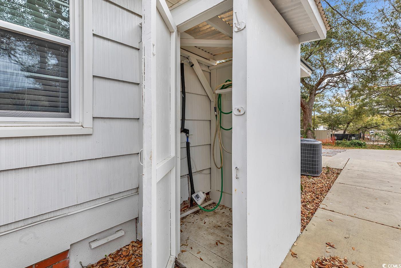 THE LOCATION! Steps to the beach, No HOA! Furnished! Located in the Long Bay Extension area of Myrtle Beach, between Grande Dunes and Golden Mile. You are within walking distance to Starbucks, River City Café, Dunkin Donut, plus tons of shops and restaurants. This adorable beach cottage was recently renovated and sits on high ground nestled under gorgeous sprawling shaded oak trees, surrounded by azaleas, with tons of southern charm. This rare to find 2 BR/2BA has a large sun porch with NEW Windows and climate control HVAC. Many upgrades were done in 2020, including a large detached 2.5 car garage with attic space plus 2nd door exiting to a back paved alley. More upgrades include: NEW windows in Sun Room (Replaced in 2025), Metal Roof, HVAC, duct work, electrical, plumbing, added an extra bathroom with walk in tile shower, laundry, (washer and dryer convey), tank less instant hot water heater, all new SS appliances, natural gas range, garbage disposal, butcher block, paver walkway and banisters, new windows, new doors, propane hook up in LR to add a gas fireplace, painted walls and smooth ceilings, back concrete patio and walkways, plus you have tons of parking! Need to park an RV and boat it's no problem! There's an outdoor shower! This is a rare find, with a large lot, so close to the beach! This charming beach bungalow will get snatched up real fast! All upgrades are listed in the associated docs. OWNER FINANCING AVAILABLE