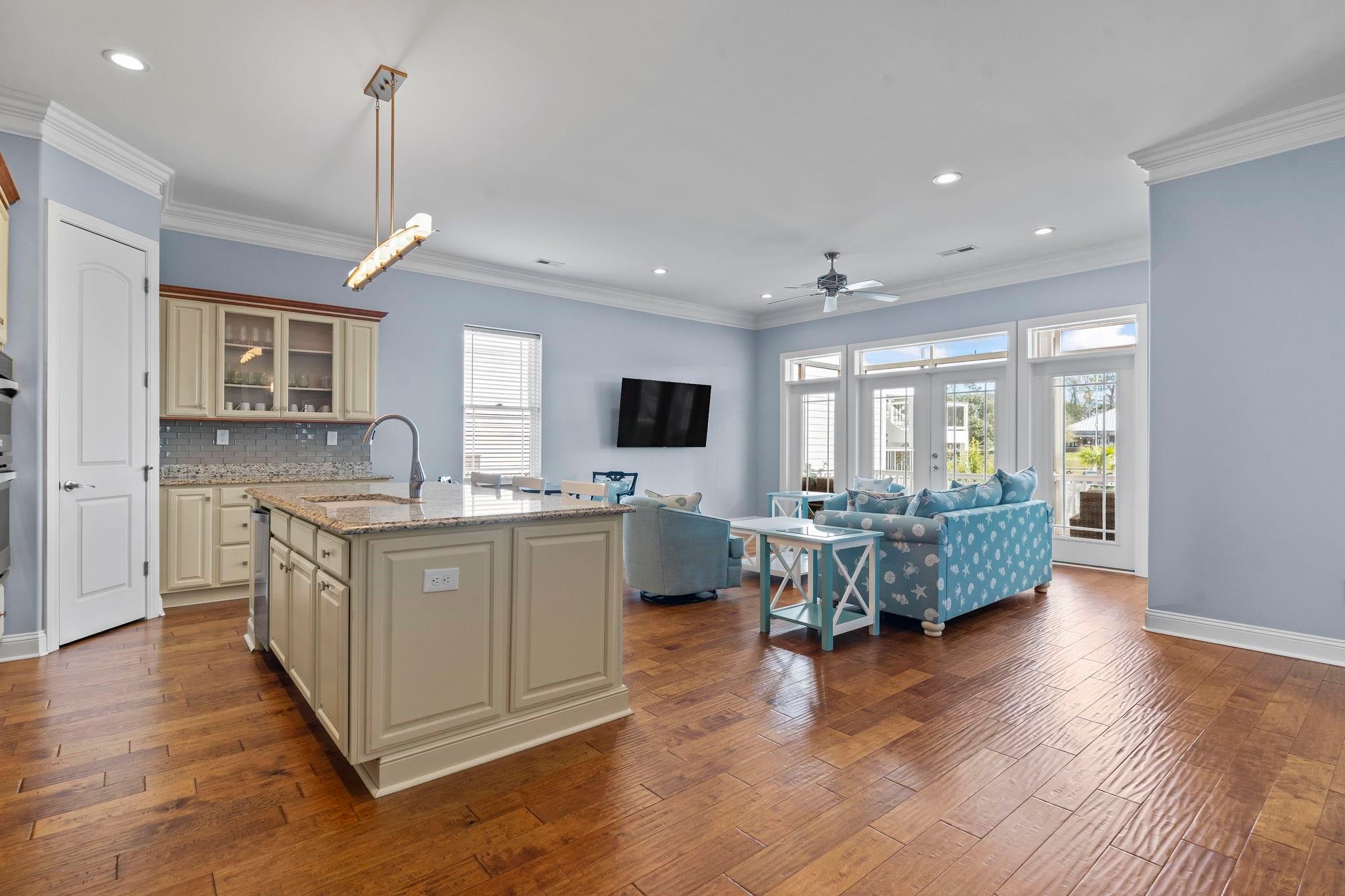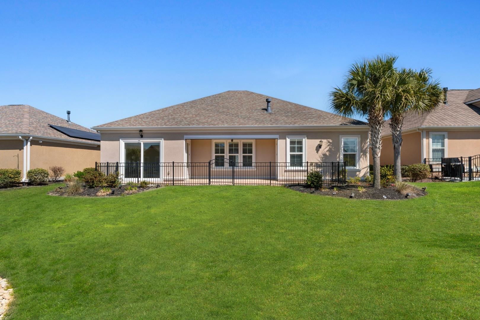 If you've been dreaming of a home that feels like a private retreat but still keeps you close to everything that makes North Myrtle Beach special, this one delivers in all the right ways. Located in the highly desirable Barefoot Resort community in North Myrtle Beach, this custom Mediterranean-style home is full of thoughtful upgrades that make everyday living feel just a little more elevated. From the moment you walk through the door, you're welcomed by an open, airy layout with 10-foot ceilings, solid 8-foot doors, and beautiful oak hardwood flooring that runs throughout the home---no carpet, just clean, timeless style. The kitchen is truly the heart of the home, designed for both cooking and connection. You'll find upgraded stainless steel appliances, granite countertops, a gas cooktop, custom cabinetry with a built-in wine rack, and a spacious island that naturally becomes the gathering spot when friends and family come over. It opens seamlessly into the living and dining areas, complete with a fireplace, plantation shutters, and a mounted 60 smart TV with surround sound---perfect for relaxing or entertaining. The primary suite offers a peaceful escape with private access to the patio, making it easy to start your day with fresh air or wind down in the evening. The en-suite bath feels like a spa, featuring a large walk-in shower with dual shower heads and separate vanities. Throughout the home, sound barrier insulation in bedrooms and bathrooms adds an extra layer of quiet and comfort. One of the standout spaces is the sun-filled Carolina room overlooking the pond---an ideal spot to relax, read, or simply enjoy the view. Step outside and you'll appreciate the beautifully maintained landscaping, complete with lush zoysia grass, irrigation, lighting, and a resurfaced driveway that adds to the home's polished curb appeal. Hurricane shutters provide peace of mind, while the outdoor patio with motorized solar screen makes it easy to enjoy coastal living year-round. This home also shines when it comes to behind-the-scenes upgrades. A Trace HVAC system with new ductwork, overflow switch, and germicidal UV light helps keep the air clean and efficient. The Rinnai tankless water heater, underground gas service, and security system add convenience and reliability. Even the garage has been upgraded with a slide-lok polyaspartic floor coating with decorative chips, giving it a clean, finished look. And the location ties it all together---you're just a short walk to the driving range, marina, and local favorite Putters Pub, and only a quick golf cart ride to the beach and the shops and restaurants at Barefoot Landing. This is more than just a place to live---it's a home that's been carefully upgraded, beautifully maintained, and ready to be enjoyed.