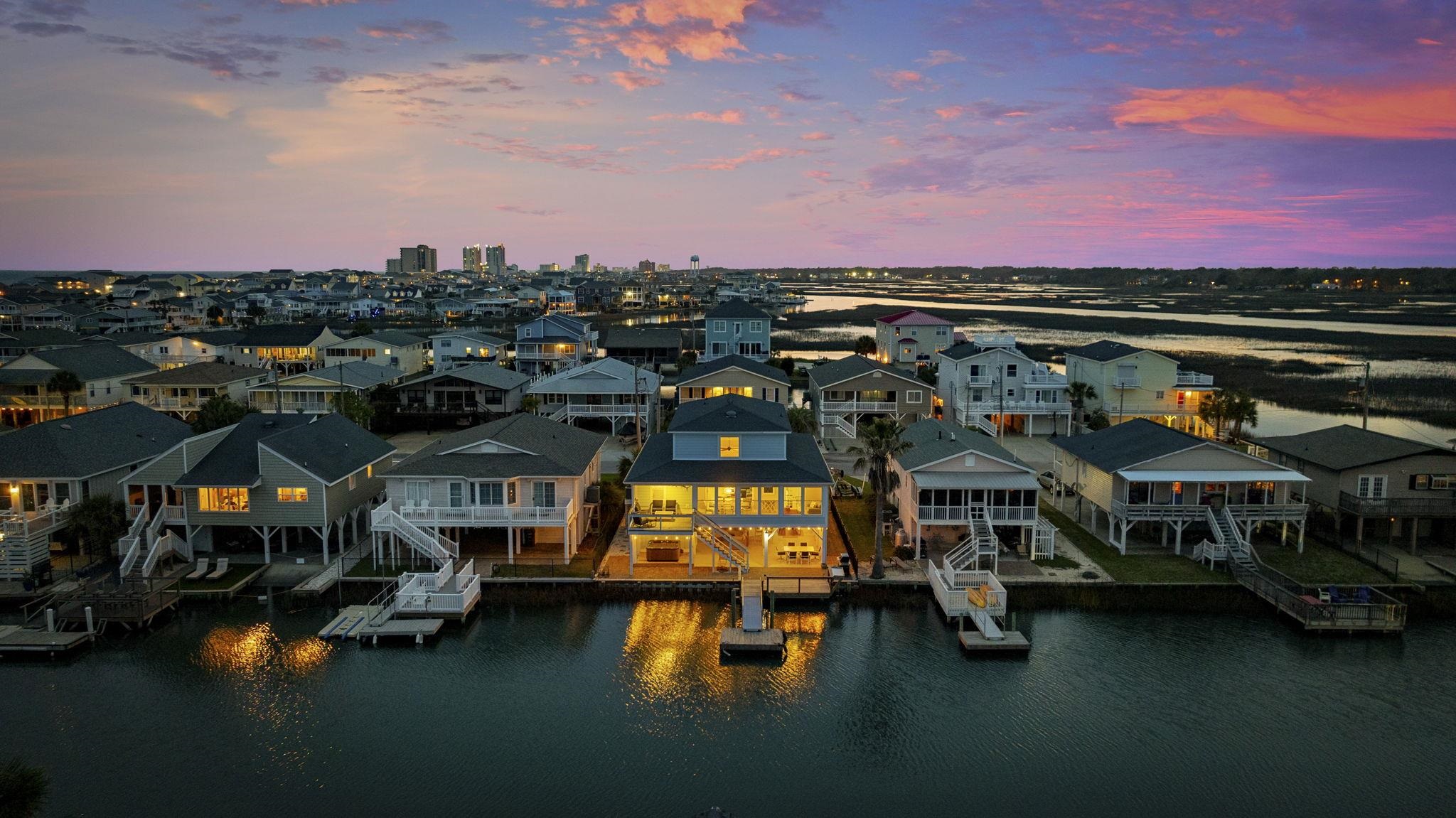 Experience the pinnacle of coastal living in this impeccably renovated 4-bedroom, 3.5-bath channel home in the heart of Cherry Grove. Reimagined from the studs up between late 2018 and 2019, this residence offers the rare peace of mind that comes with having all heated living space situated safely above the flood zone.