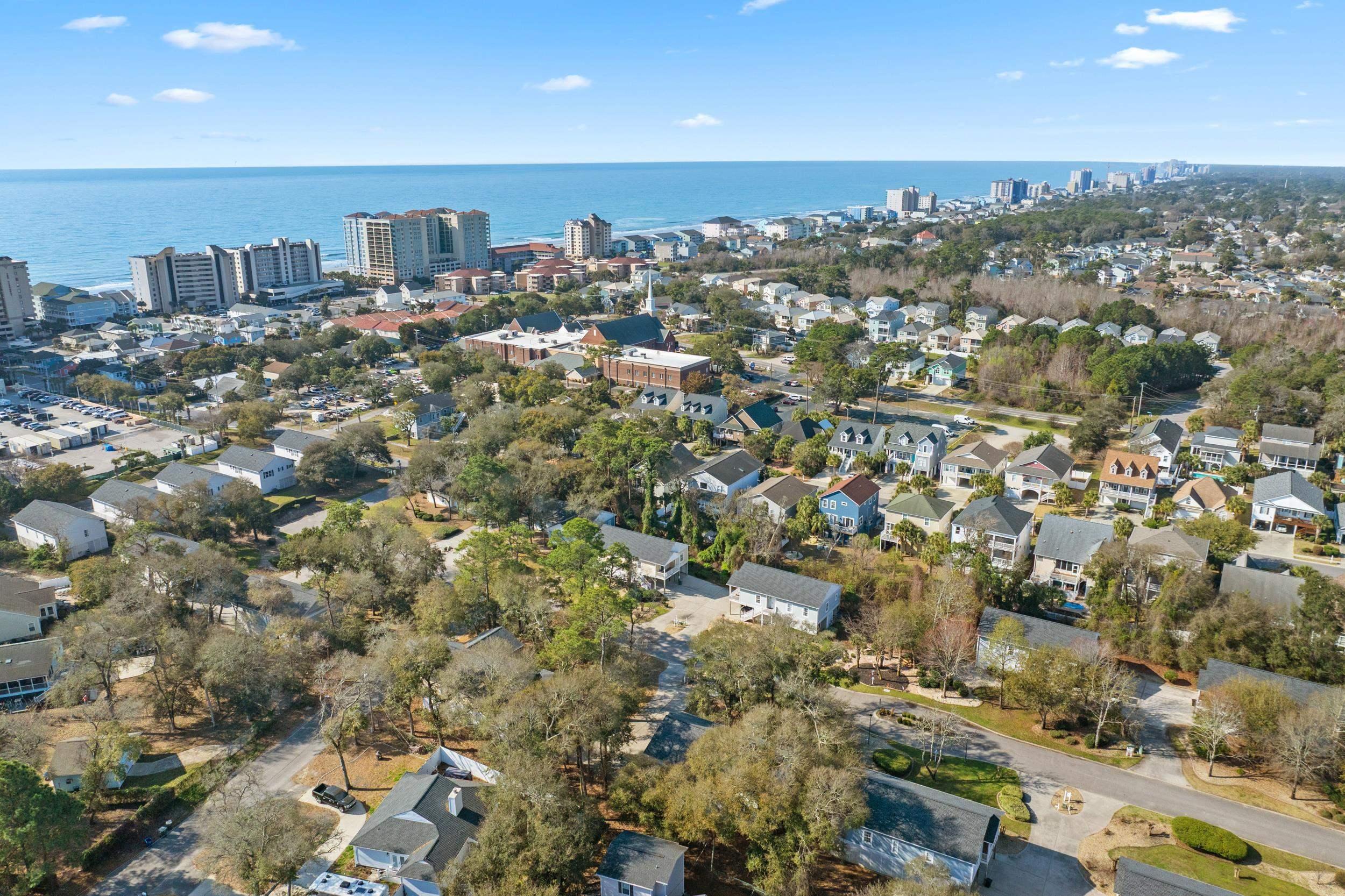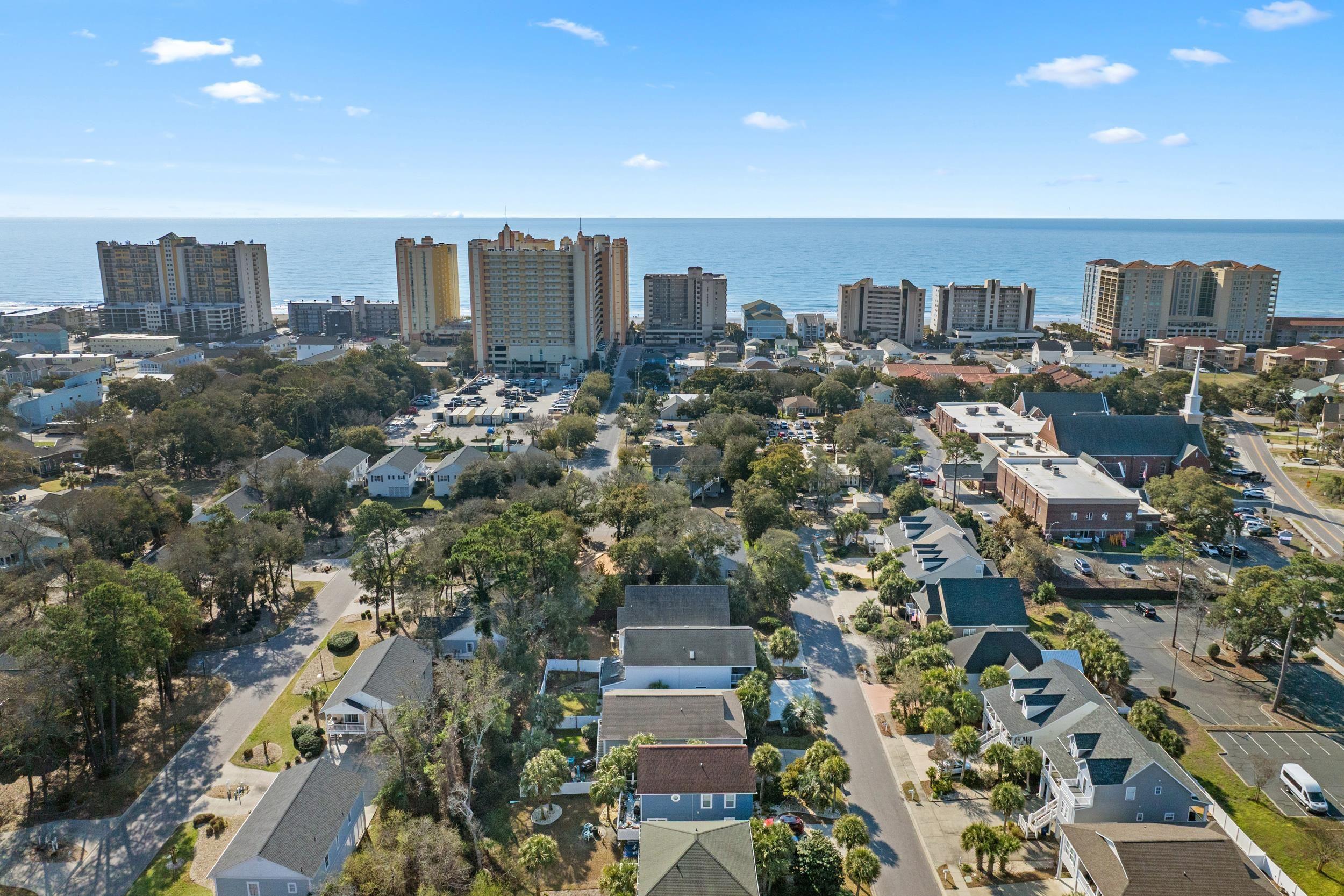 Location, location, location! Approximately .3 mile (three tenths!) walk or golf cart ride to the beautiful Atlantic Ocean! Main Street OD with various shops, night life, SOS events, eateries, holiday parades & fun activities is just 5 blocks to the North. Only 3 blocks away is McLean Park with tennis & pickleball courts, playground, picnic area, lake, walking trails & city events! Hop on Robert Edge Parkway & Hwy 31 to venture South to Myrtle Beach proper or North to the historic Little River SC fishing riverfront for fresh seafoood or try your luck on the Big M Casino Boat! This unique raised beach house has 4 bedrooms, 3 upstairs and 1 downstairs on ground floor which is a completely separate entity with large bathroom & walk-in closet. Great for teens, in-laws, guests, game room or whatever your needs would be! Heated storage room downstairs is large enough for golf cart storage & houses the utility box and a special water manifold system. Upstairs as you enter from the cozy covered front porch, the bamboo flooring, high tray ceilings with recessed lighting, specialty orange peel wall finishings throughout catch your eye right away! The 11x14 primary bedroom located to the left of family room has ensuite bath with double vanities, jetted tub, separate shower & large walk-in closet. This split bedroom plan places the other two bedrooms & separate bath to the right of the living area. The huge 11.5 x 18 kitchen with stainless steel appliances is a cooks delight with 42-inch cabinets, breakfast bar & adjacent dining area with its separate tray ceiling & lovely lighting. The laundry room with full size washer & dryer is just off kitchen but hidden from view by pocket door. The large screened back porch allows you to breathe in the fresh ocean air or to sit and relax as you view your nicely shaded & private back yard with irrigation to water your flower or vegetable garden or if you prefer, there is room to construct a pool! More than ample concrete parking area under the house provides room for outdoor seating & grilling and an outdoor shower at rear of storage room provides hot & cold water for rinsing off that lovely beach sand! Prime central location & well maintained, this gem of a beach house is ideal for the second home or primary residence! This area is highly sought after so dont delay in making appointment to view!