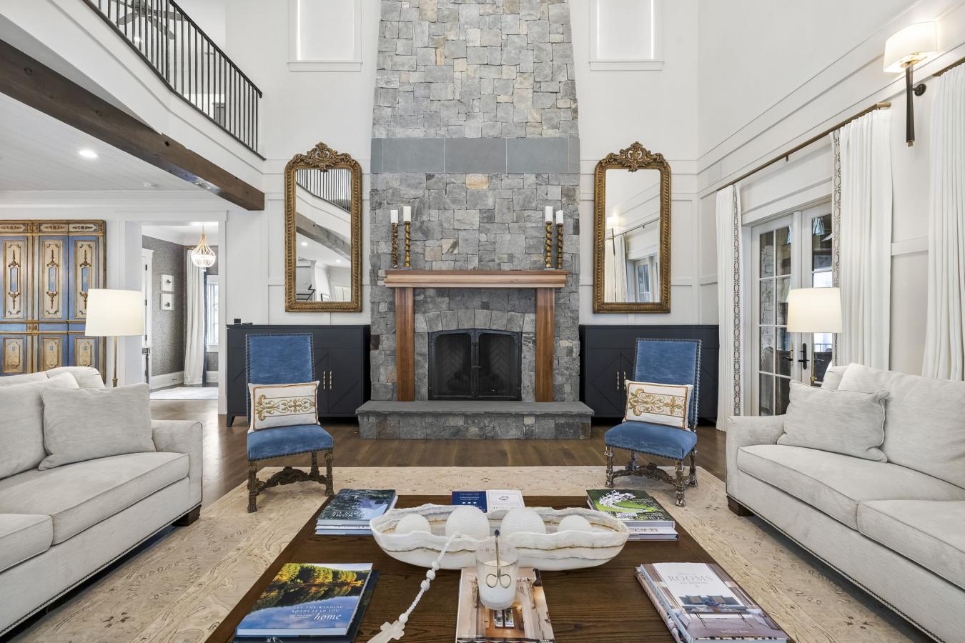Perched atop 40 acres of pristine South Carolina countryside, The Castle on the Hill is a breathtaking architectural masterpiece inspired by a historic Italian castle. Every inch of this one-of-a-kind estate has been thoughtfully crafted to deliver luxury, grandeur, and timeless beauty. This majestic stone residence spans approximately 8,000 square feet and greets you with an unforgettable presence-stately stone columns, a slate tile roof, and double mahogany doors set the tone for what lies within. Upon entry, youre welcomed by a soaring 28-foot-tall foyer crowned with an Italianate dome and anchored by a stunning limestone staircase. The entire home is a study in custom craftsmanship, from the hand-selected Utah stone exterior to the reclaimed North Carolina barnwood flooring that flows throughout. The Grand Room features a floor-to-ceiling limestone fireplace-also 28 feet in height-one of five fireplaces that grace the home, creating a warm and regal ambiance throughout. With five bedrooms and five luxurious bathrooms (three en-suites), this residence is designed for both family living and lavish entertaining. Theres a spacious two car detached garage with direct access to the house as well as additional space within the barn for storing five or more additional vehicles is desired. The chefs kitchen is nothing short of extraordinary, outfitted with a natural gas Viking cooktop, Sub-Zero refrigerator, wine chiller, refrigerated drawers, dishwasher drawers, and rich custom wood cabinetry. Dual kitchen islands feature striking marble countertops, while the surrounding cabinetry is finished in durable, leathered granite. Entertainment and comfort abound in the homes custom theatre room, complete with coffered ceilings and built-in wood cabinetry. Spa-inspired bathrooms feature marble and hand-laid tile, delivering the utmost in relaxation and style. Nearly every room is designed to frame sweeping, panoramic views of the Blue Ridge Mountains-spanning South Carolina, North Carolina, and Georgia. Outside, the grounds offer even more to explore: a stocked pond, acres of pastureland, forest trails, and a serene creek. A 5,000-square-foot barn with caretakers quarters completes this remarkable estate. The Castle on the Hill is not merely a home-its a legacy property, where Old World inspiration meets modern luxury in a setting that is nothing short of spectacular.