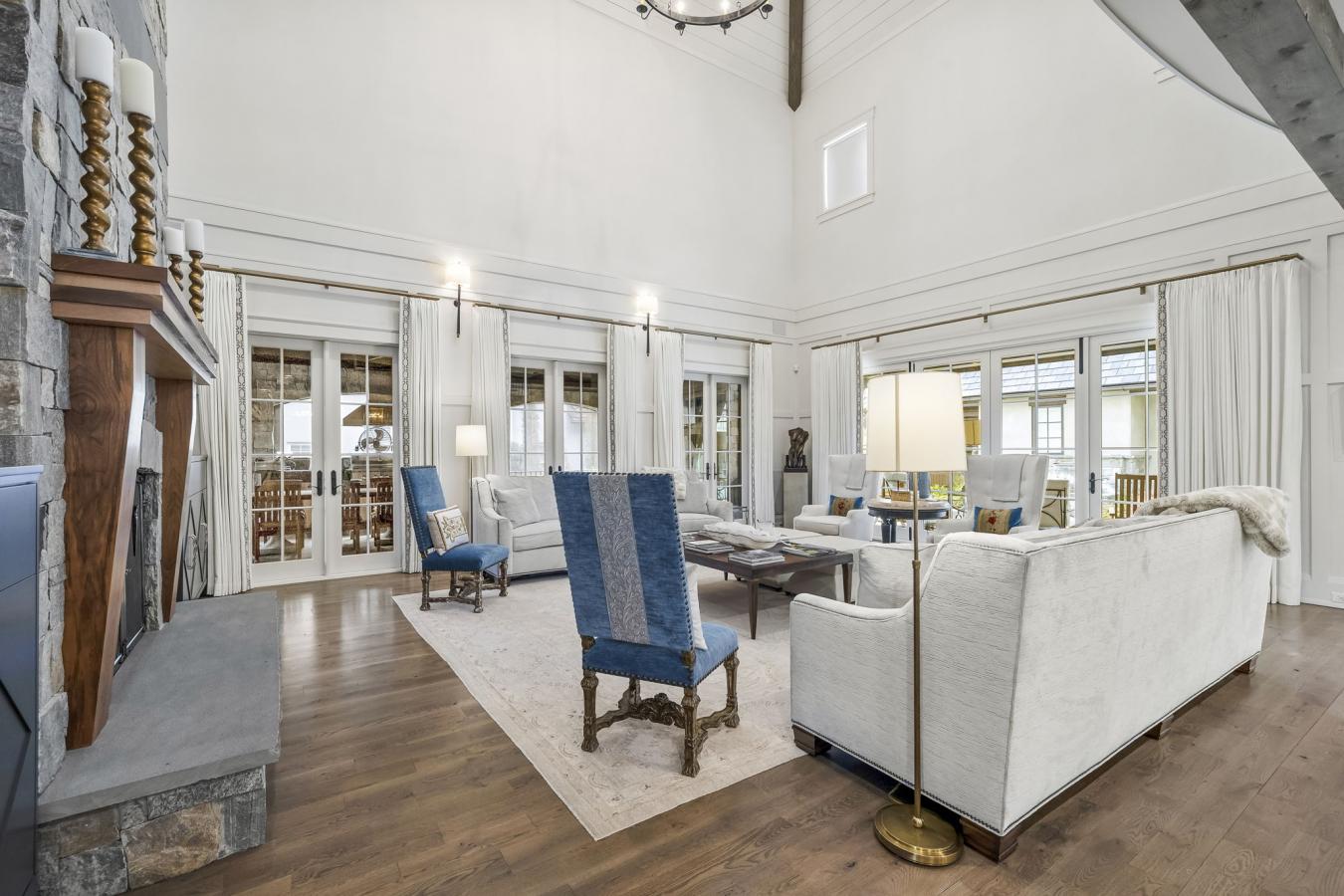 Life at the Old Edwards Reserve at Lake Keowee unfolds at a different pace-one defined by light on the water, long views of the Blue Ridge Mountains, and days that move easily between recreation and relaxation. Set on one of the lakes most extraordinary point lots, this mountain-modern retreat captures that rhythm effortlessly. From its 1.6-acre setting, 180-degree vistas stretch across open water and layered peaks, creating a constant backdrop that shifts with the time of day and season. The home balances clean architectural lines with natural materials that feel grounded in the landscape. Nearly 6,000 square feet of living space inside and out is both expansive and inviting-vaulted, beamed ceilings draw the eye upward, while natural stone walls and wide-plank white oak floors bring warmth and texture. Four Isokern fireplaces create intimate gathering spaces throughout, perfect for quiet mornings or evenings spent with friends after a day on the lake. The experience extends seamlessly outdoors. Screened porches with retractable openings blur the line between interior and exterior living, while multiple terraces invite dining, lounging, and conversation under open skies. Just beyond, a private cove with a gentle, south-facing beach and a mountain-facing dock-complete with lift, power, and lighting-makes lake life immediate and effortless. An outdoor spa and shower complete the setting, offering a place to unwind beneath the stars. The kitchen is designed for both everyday living and entertaining at scale, anchored by Thermador Commercial Series appliances, a 48-inch dual-fuel range, and thoughtful details like a hammered copper sink, dual dishwashers, and a fully equipped pantry and butlers pantry. Guests are welcomed with ease, whether in the private suites, the bunk room, or the separate apartment above the garage-each space offering comfort and independence. Ownership here also connects you to a broader, curated lifestyle. As part of the Reserve, residents enjoy access to a Jack Nicklaus Signature golf course, a full-service marina, lakeside dining, fitness and wellness facilities, hiking trails, and a vibrant community life centered around the water. Just a short, scenic drive away, Old Edwards Inn and Spa in Highlands extends that experience even further, offering a celebrated spa, award-winning dining, and the charm of one of the Southeasts most beloved mountain towns. For a change of pace, the cultural energy of Greenville is within easy reach. Its thriving arts scene-galleries, live performances, and a nationally recognized downtown-adds depth and variety, making it just as natural to spend an evening at the theater as it is to spend the day on the water. Offered fully furnished, this home is more than a retreat-it is an invitation to live beautifully, where thoughtful design, natural surroundings, and an exceptional community come together in a way that feels both elevated and entirely at ease.