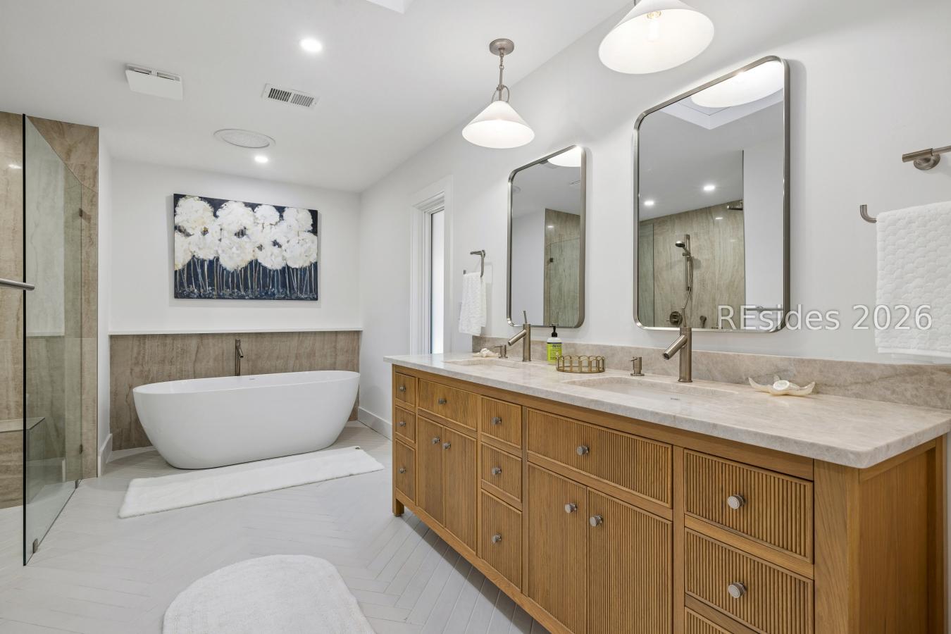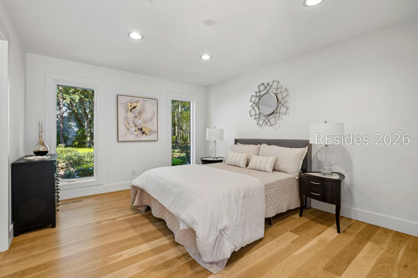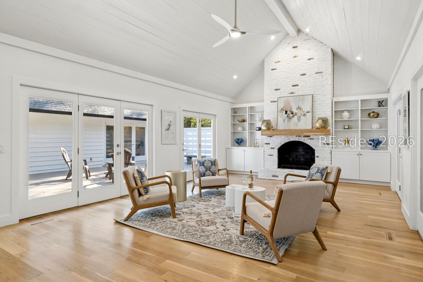 Welcome to this beautifully reimagined luxury residence in the sought-after deep-water community of Spanish Wells, where timeless coastal elegance meets modern sophistication. This home was completely renovated in March 2026, showcasing exceptional craftsmanship & thoughtful design throughout. Upon entering, you are greeted by gorgeous solid white oak flooring that flows throughout the main level, creating a warm and refined atmosphere. The spacious living room, highlighted by a tray ceiling and natural light from newly installed windows, offers an inviting yet elegant setting for everyday living. At the heart of the home is the stunning chefs kitchen, beautifully appointed w/granite countertops, stainless-steel appliances & a professional-grade 6-burner double oven w/pasta filler faucet. A generous pantry & additional storage ensure both beauty & functionality. The kitchen opens seamlessly to the expansive great room, where vaulted ceilings & a striking brick wood-burning fireplace w/custom built-ins create a dramatic yet comfortable gathering space. Designed for effortless entertaining, the home also offers a private courtyard on one side & a large screened Carolina room on the other, perfect for enjoying the coastal climate year-round. A formal dining room just off the kitchen provides an elegant setting for hosting memorable dinners & celebrations. The open-concept layout blends modern luxury w/relaxed coastal living, making this home ideal for both entertaining & everyday comfort. The luxurious primary suite is a private retreat featuring an oversized walk-in closet w/a built-in closet system. The spa-inspired primary bath includes a freestanding soaking tub, separate shower, dual vanities, & a private water closet, offering a serene sanctuary. There are sliding doors that lead to the private courtyard. Also on the first floor is a newly constructed guest bedroom with a full bath, ideal for guests or multi-generational living. A laundry room & stylish half bath are conveniently located down the hall from the kitchen. Upstairs, two additional bedrooms w/new carpeting share a beautifully updated full bath, providing comfortable accommodations for family & visitors. This 4-bedroom, 3-bath residence sits on an expansive lot of just over one acre, offering privacy & space to enjoy Lowcountry living. The property features a circular driveway, a spacious two-car garage & additional parking. See list of additional features