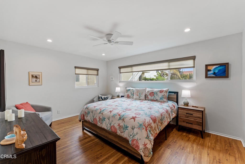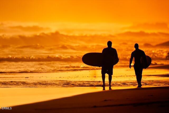 Welcome to Leilani Breeze House, a rare slice of paradise at Hollywood By The Sea, set on one of the three most beautiful stretches of beach in Ventura County. Enjoy rooftop island views, dazzling sunsets, and the Pacific Ocean just half a block away, creating a backdrop for memories that last a lifetime. Perfectly positioned above Channel Islands Harbor--gateway to Channel Islands National Park--and ideally located halfway between Malibu and Santa Barbara, this home places the best of the coast at your fingertips.Days are filled with wave play, kayaking, boating, paddle boarding, harbor cruises, visits to yacht clubs, wine tasting, championship golf, boutique shopping, and exceptional dining. This classic two-story beach house blends timeless coastal charm with extensive modern upgrades and generous living space.The home offers four exceptionally large bedrooms. The lower level features two spacious bedrooms with private guest quarters and a separate entrance--ideal for guests or multigenerational living. Upstairs, two oversized bedrooms share a beautifully appointed bathroom and open to an expansive rooftop deck designed for unforgettable entertaining, sunset gatherings, and star-filled evenings.The open living and dining area showcases vaulted ceilings with exposed wood beams, oversized glass windows, and sliding doors opening to a breezy balcony where ocean air flows freely. A raised brick fireplace with a rich wood mantle anchors the space, perfect for cozy nights after long beach days. The kitchen includes bar seating, ample cabinetry, stainless steel appliances, filtered water with dispenser, and a pass-through view to the balcony beyond.Additional highlights include an interior laundry and utility room ideal for sandy towels, a two-car garage with space for bikes and water toys, an oversized driveway with rare beachside guest parking, and a lockable electric vehicle charger. Extensive upgrades include high-efficiency double-pane windows and sliders, luxury plank flooring throughout, custom blinds, recessed and accent lighting with dimmers, ceiling fans in all bedrooms, a new gas fireplace, updated water heater, washer and gas dryer, motorized garage doors, exterior lighting, a built-in security system, keypad entry, and TVs with elevated electrical in every bedroom.Whether a full-time residence, vacation retreat, or investment opportunity, Leilani Breeze House delivers a lifestyle defined by sun, surf, and coastal living.
