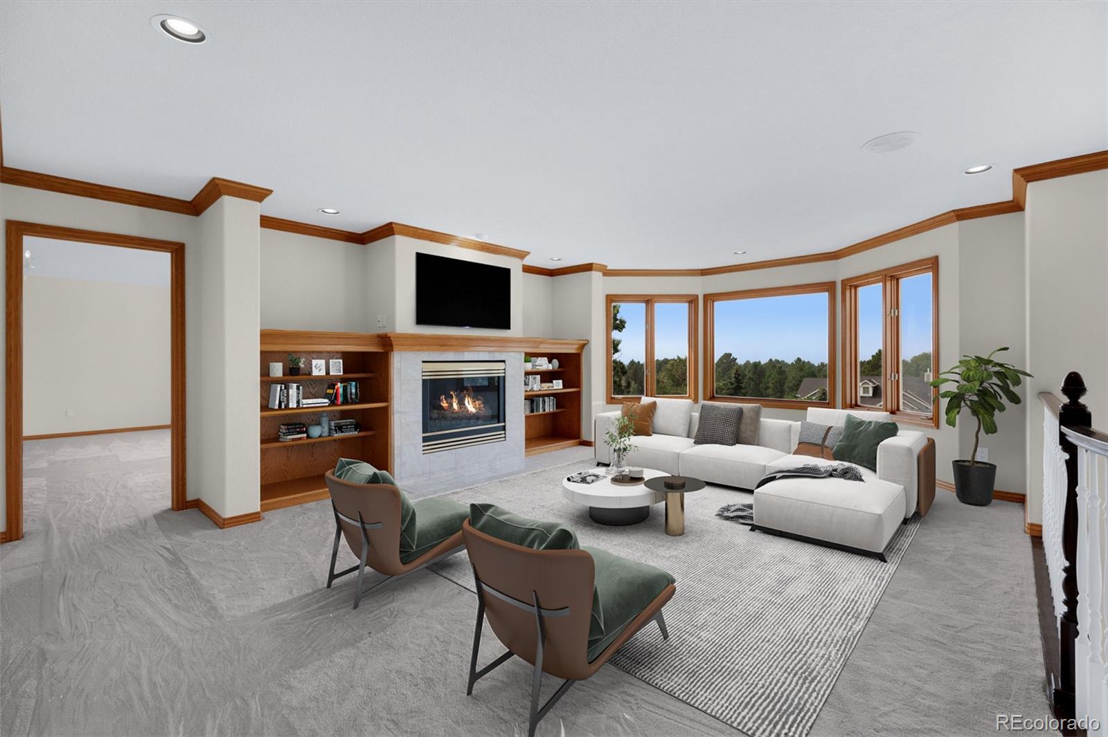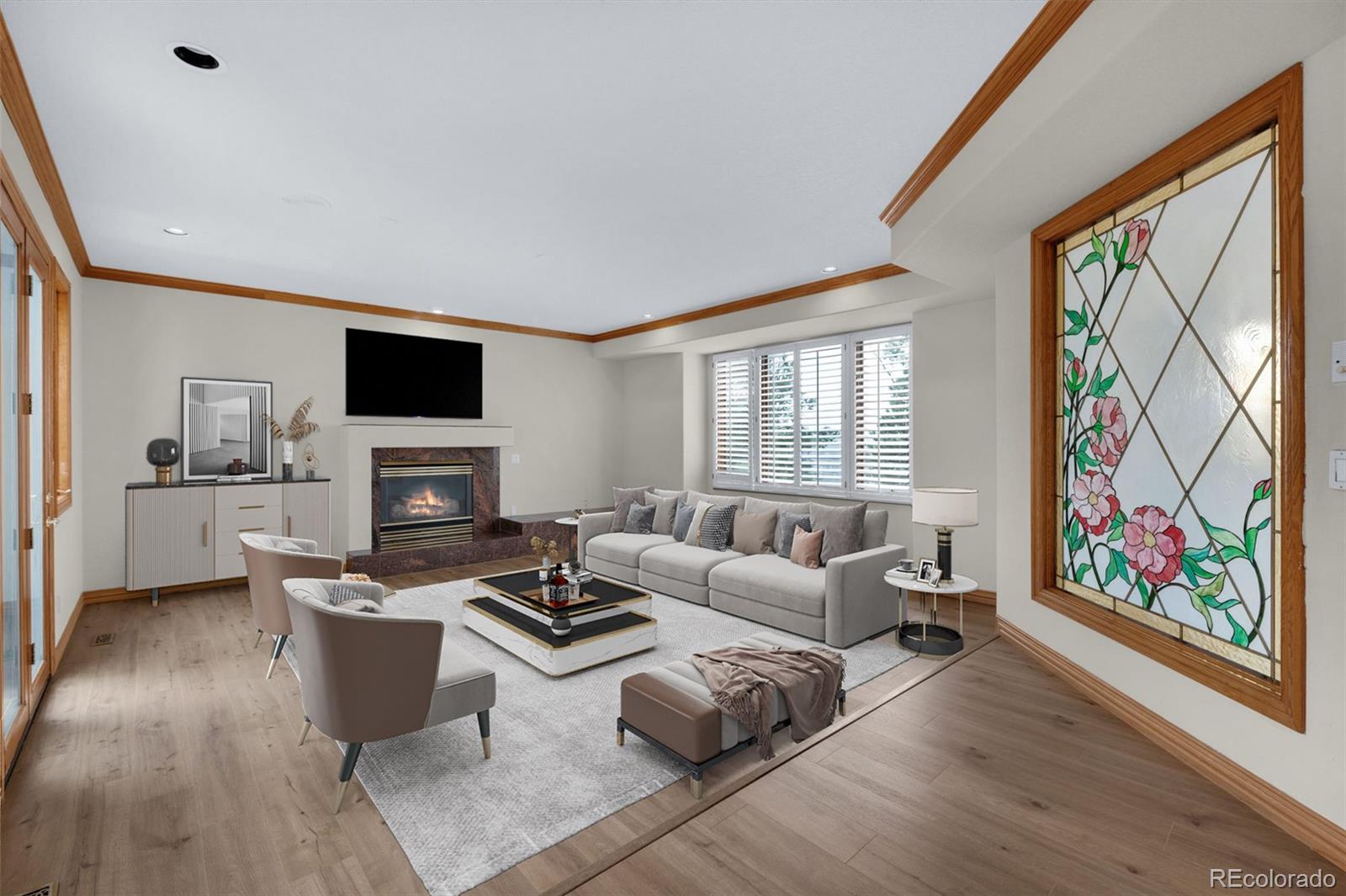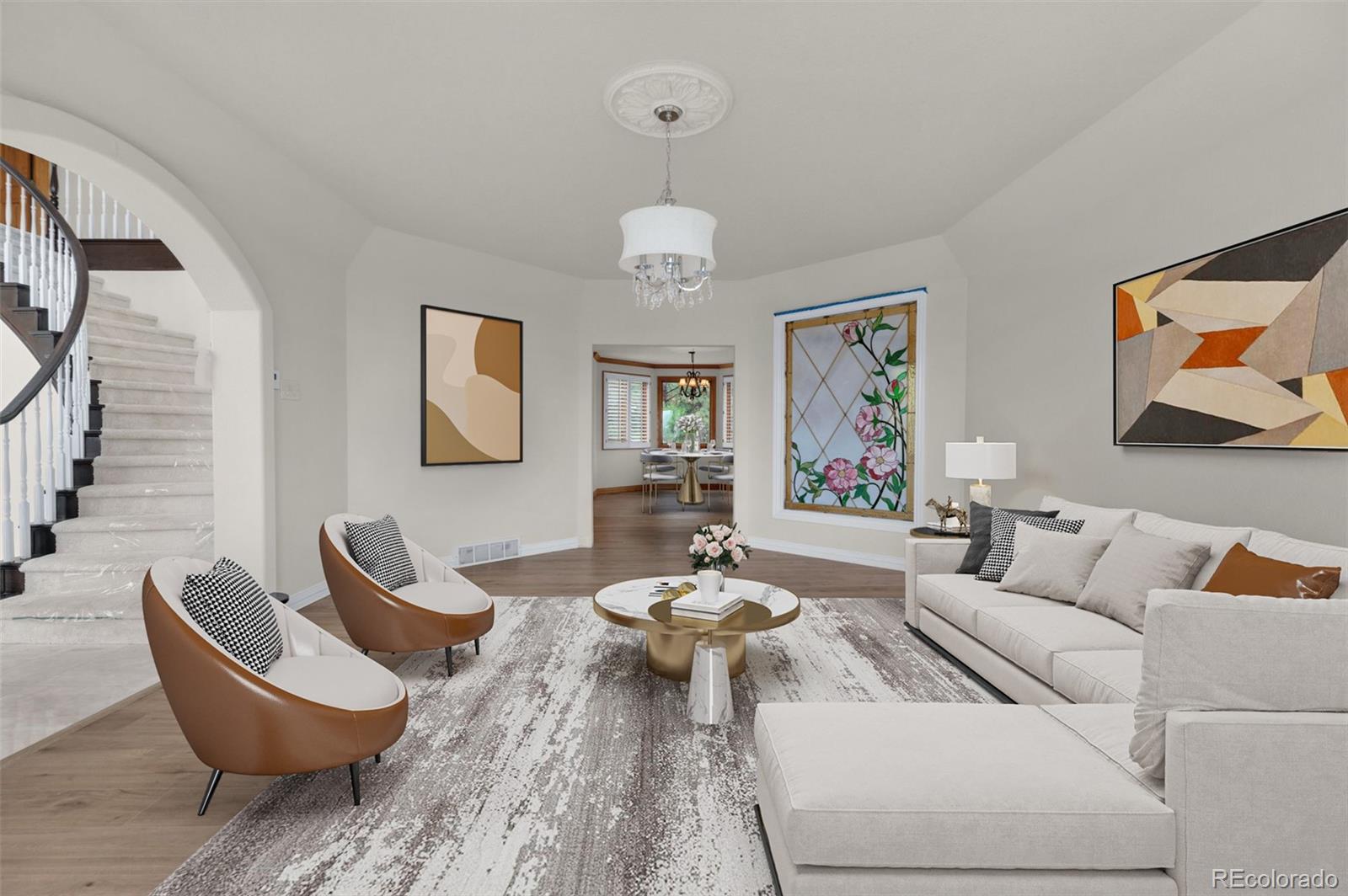 Majestic custom home in Woodmoor Highlands II with breathtaking Pikes Peak views from nearly every room! Step into a grand marble-floored entry with a sweeping circular staircase & dramatic window framing the mountains. Formal living and dining rooms offer elegant finishes and panoramic vistas. Formal Living Room Is Carpeted, Formal Dining Enjoys Beautiful Marble Floor.