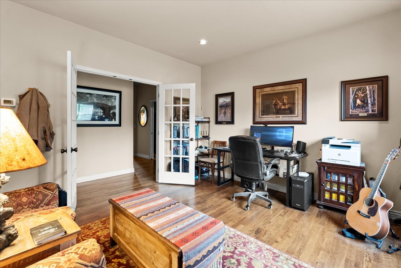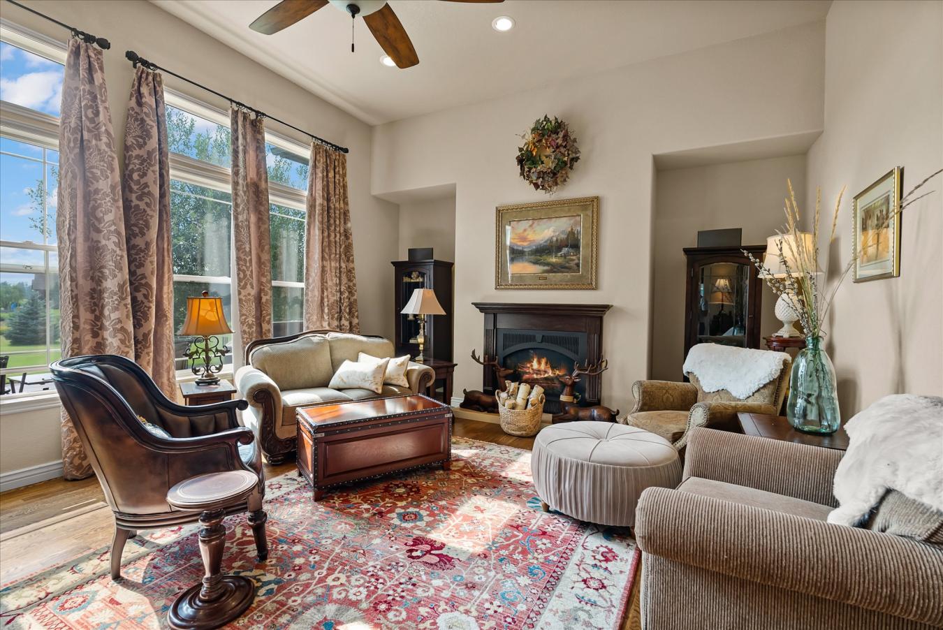 Discover comfortable luxury and captivating mountain views with this custom-built residence, a masterpiece of design nestled in the fabulous Quail Ridge subdivision. This exquisite home offers a harmonious blend of elegance and comfort, designed with a thoughtful open floor plan that seamlessly integrates indoor and outdoor living spaces. As you step through the grand entrance, youre greeted by an impressive entryway that sets the tone for this remarkable property. The main floor is a testament to luxury living, featuring a primary suite that serves as a tranquil retreat, complete with a well appointed ensuite bathroom. Soaring ceilings throughout the home amplify the sense of space and light, while the main floor office, adorned with elegant French doors, provides a sophisticated space for productivity and creativity. The heart of the home is the great room, a cozy yet spacious area highlighted by a vaulted ceiling, large picture windows and easy access to the deck. Here, the beauty of the surrounding landscape is brought indoors through expansive windows, offering breathtaking views of the majestic mountains and the lush territorial expanse. The living room, with its cathedral-style ceiling, further enhances the homes grandeur and is the perfect setting for entertaining guests or enjoying quiet moments with family. Culinary enthusiasts will delight in the gourmet kitchen, boasting granite countertops and a design that facilitates both intimate family meals and large gatherings. Ascending to the upper level, youll find three beautifully appointed bedrooms, each offering unique details and sharing a full bath. The homes versatility is showcased in the partially finished basement, a space that surprises and impresses. It features a vast family room, a massive fifth bedroom (doesnt have a closet) transformed into an extraordinary theater room for the ultimate entertainment experience, and extensive storage rooms, awaiting your personal touches to fulfill any desire. Situated with a backdrop against a common area, this home promises privacy and tranquility, all while providing easy access to town amenities and a plethora of outdoor activities. With its luxurious finishes, thoughtful design, and idyllic location, this home is not just a residence but a sanctuary. A must-see for those seeking luxury, comfort, and the beauty of nature combined.
