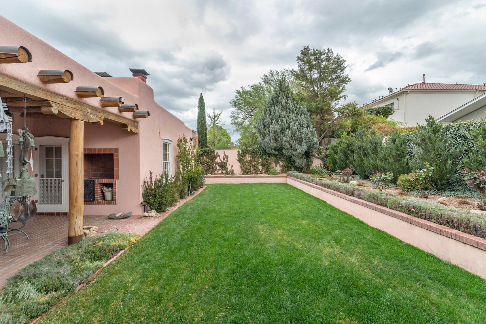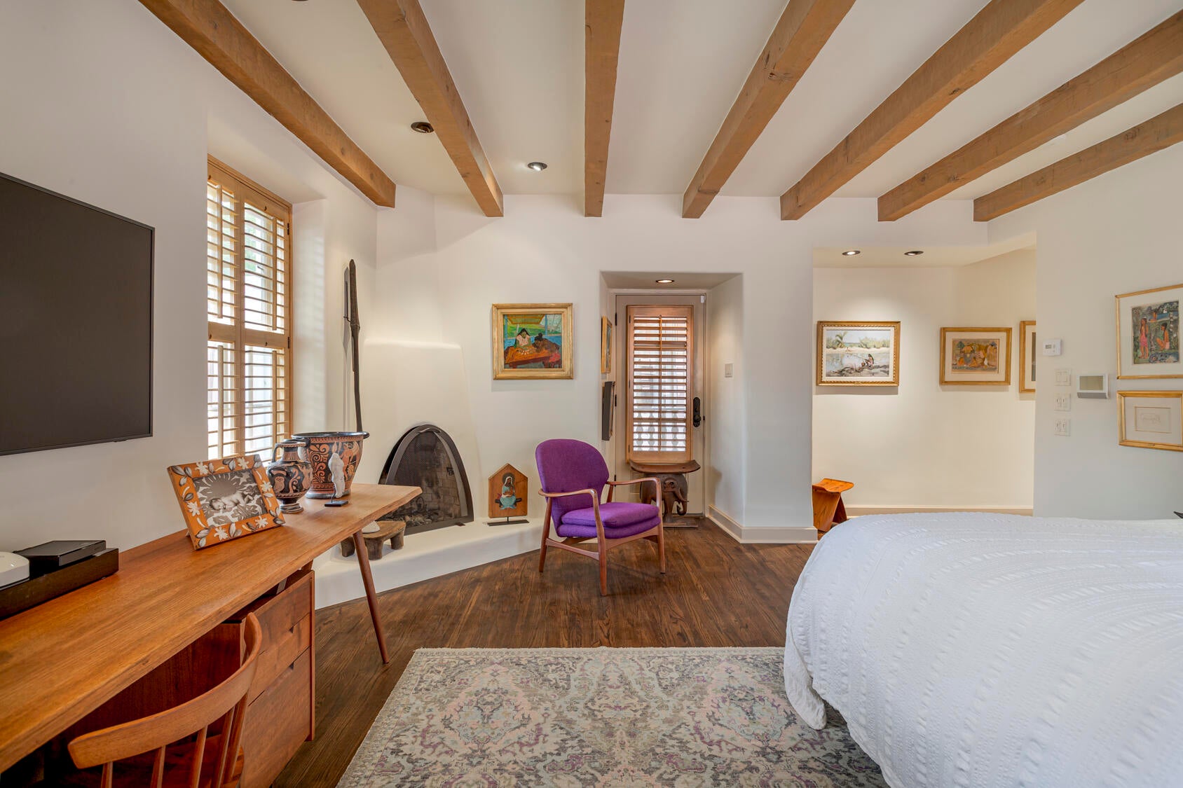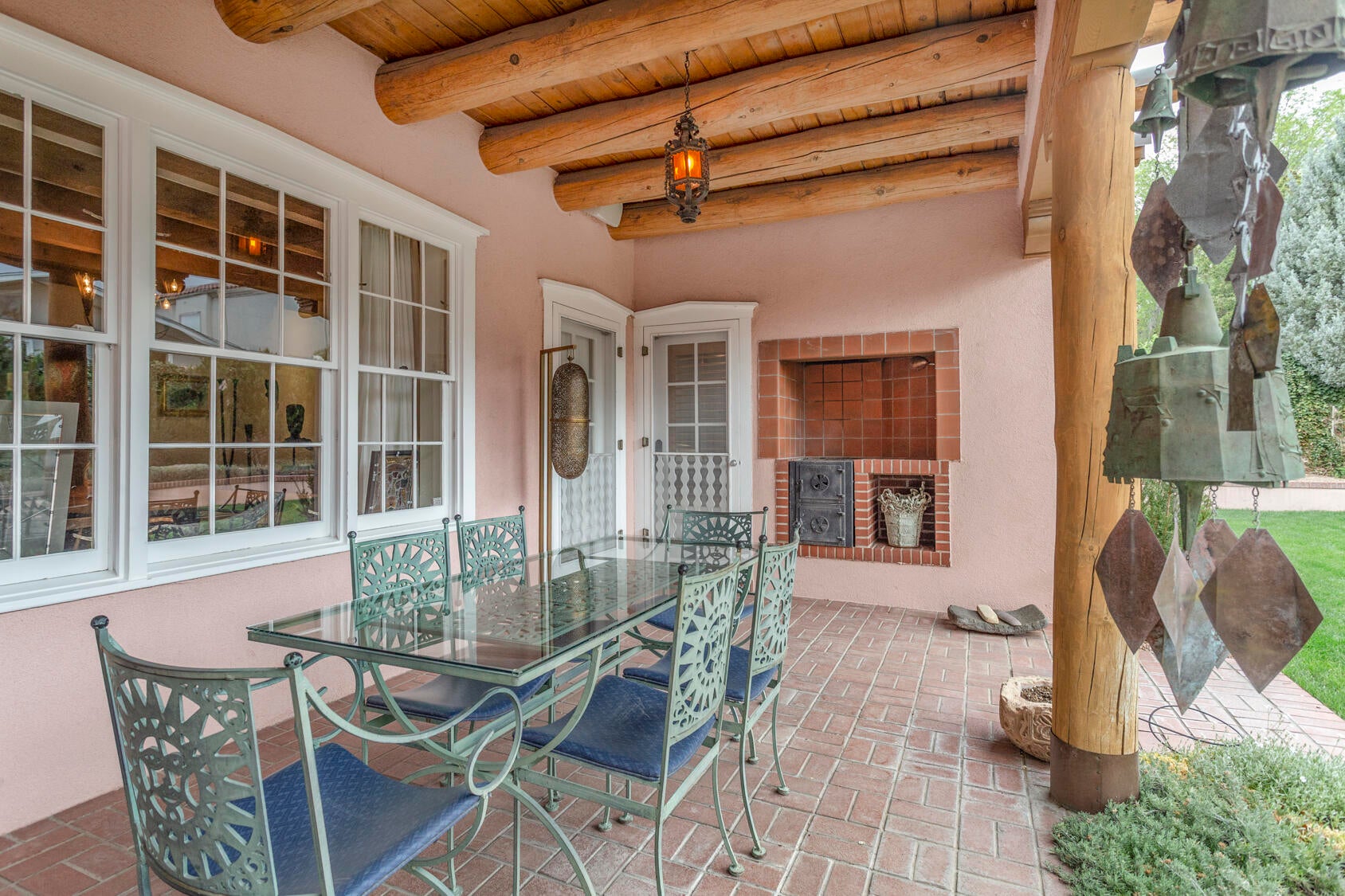 Envisioned by legendary local architect John Gaw Meem, here is a rare opportunity to own a part of New Mexican history - a private residence designed by legendary local architect John Gaw Meem and meticulously constructed by master craftsmen. The floorplan is highly functional, eminently livable and approachably luxurious; whether formal or casual, this home has the gathering space suitable to the occasion, including wine cellar on the lower level. Oak flooring with a rich patina provides the stage for gracious living. Bedrooms are comfortable and agreeably oversized, most notably the primary suite with marble bath and kiva fireplace. Impressive hand-crafted custom-carved woodwork is found in abundance throughout. Numerous fireplaces offer warmth and multiple windows look out to manicured