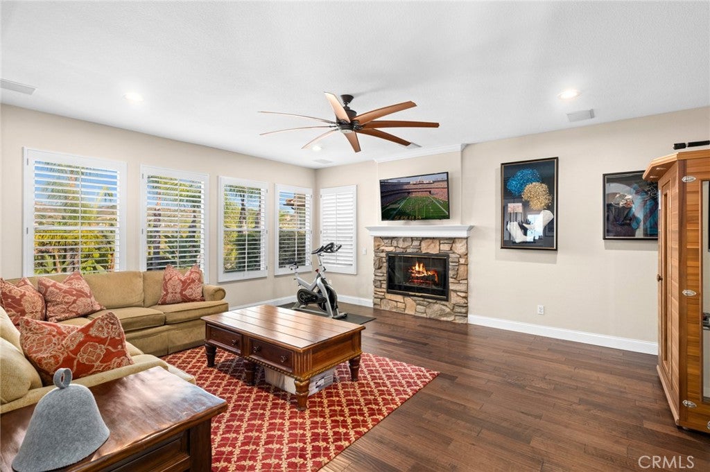 Welcome to 4 Golden Poppy in the prestigious guard-gated community of Coto de Caza, a beautiful home that offers an exceptional backyard oasis and a thoughtfully design floor plan that includes a large bonus room, together creating the ideal Southern California lifestyle. The main level is designed for both everyday comfort and effortless entertaining, featuring a gourmet kitchen with a massive center island, walk-in pantry, an abundance of cabinet space, and stainless steel appliances including a double oven. The kitchen opens seamlessly to the inviting family room, complete with a built-in entertainment center, creating the perfect gathering space. A formal living room with fireplace and an elegant dining room connected to the kitchen provide additional areas for hosting. A desirable main floor bedroom with en-suite bath offers flexibility for guests or multi-generational living. Upstairs, the expansive primary suite is a true retreat, offering a private sitting area ideal for a home office, nursery, or fitness space. Dual oversized walk-in closets and a spacious primary bath enhance the suites luxurious feel. Two additional secondary bedrooms include one with its own en-suite and walk-in closet, along with a full hallway bathroom. A large bonus room with fireplace provides endless possibilities as a media room, game room, or additional living space. Step outside to your private backyard oasis, where a resort-style rock pool and spa, built-in BBQ center, fire pit, and pergola create the ultimate setting for relaxation and entertaining year-round. This exceptional home offers the perfect blend of functionality, scale, and indoor-outdoor living in one of Coto de Cazas most sought-after neighborhoods. Enjoy award-winning schools nearby, the renowned Golf & Racquet Club, scenic sports parks, and miles of hiking, biking, and equestrian trails as well as the Coto Pickleball Cluball just moments from your doorstep.