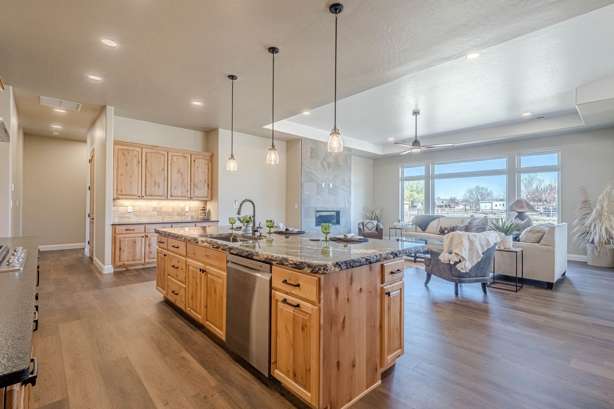 OPEN HOUSE SAT. APRIL 11TH 12P 2P Step inside this beautifully crafted new construction ranch style home just minutes from downtown Fruita! 4-bedroom, 3-bathroom, sprawling open concept home offering just over 3,100 sq. feet of living space, a split floor plan, an attached 3 car garage and situated on a 1.16-acre corner lot with RV parking plus an attached RV garage.