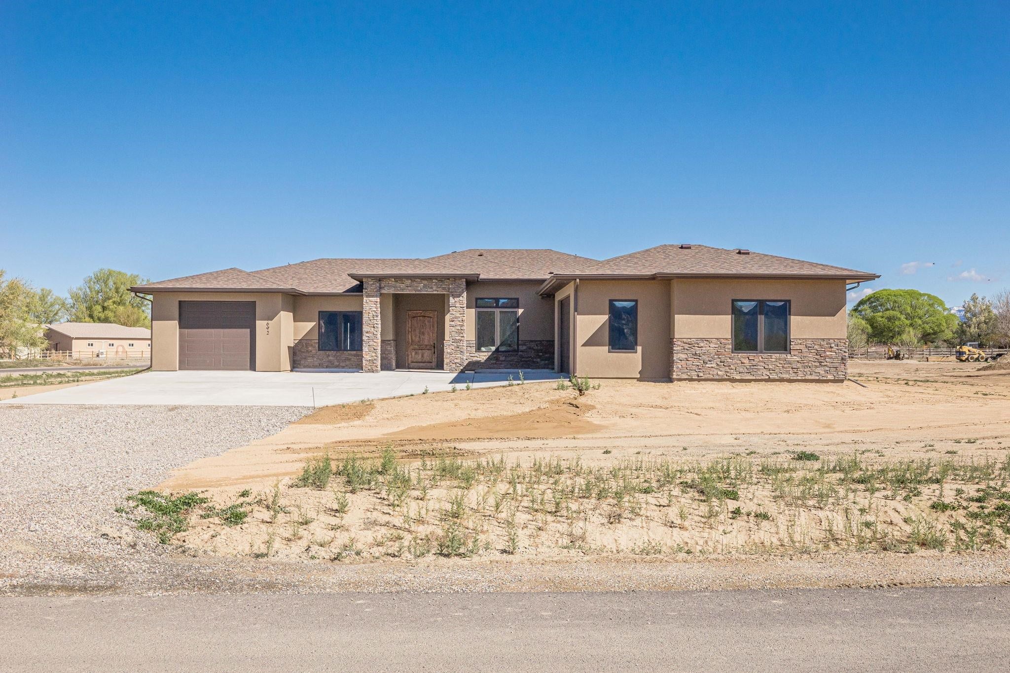 OPEN HOUSE SAT. APRIL 11TH 12P 2P Step inside this beautifully crafted new construction ranch style home just minutes from downtown Fruita! 4-bedroom, 3-bathroom, sprawling open concept home offering just over 3,100 sq. feet of living space, a split floor plan, an attached 3 car garage and situated on a 1.16-acre corner lot with RV parking plus an attached RV garage. Interior features high-end finishes with double oven, granite counter tops, custom cabinetry and a gas fireplace in the living area. The chef-inspired kitchen flows seamlessly into the dining and living areas, ideal for entertaining. The spacious primary suite offers a 5-piece bath with garden tub and a spa-like feel. Dont wait, schedule your showing today!