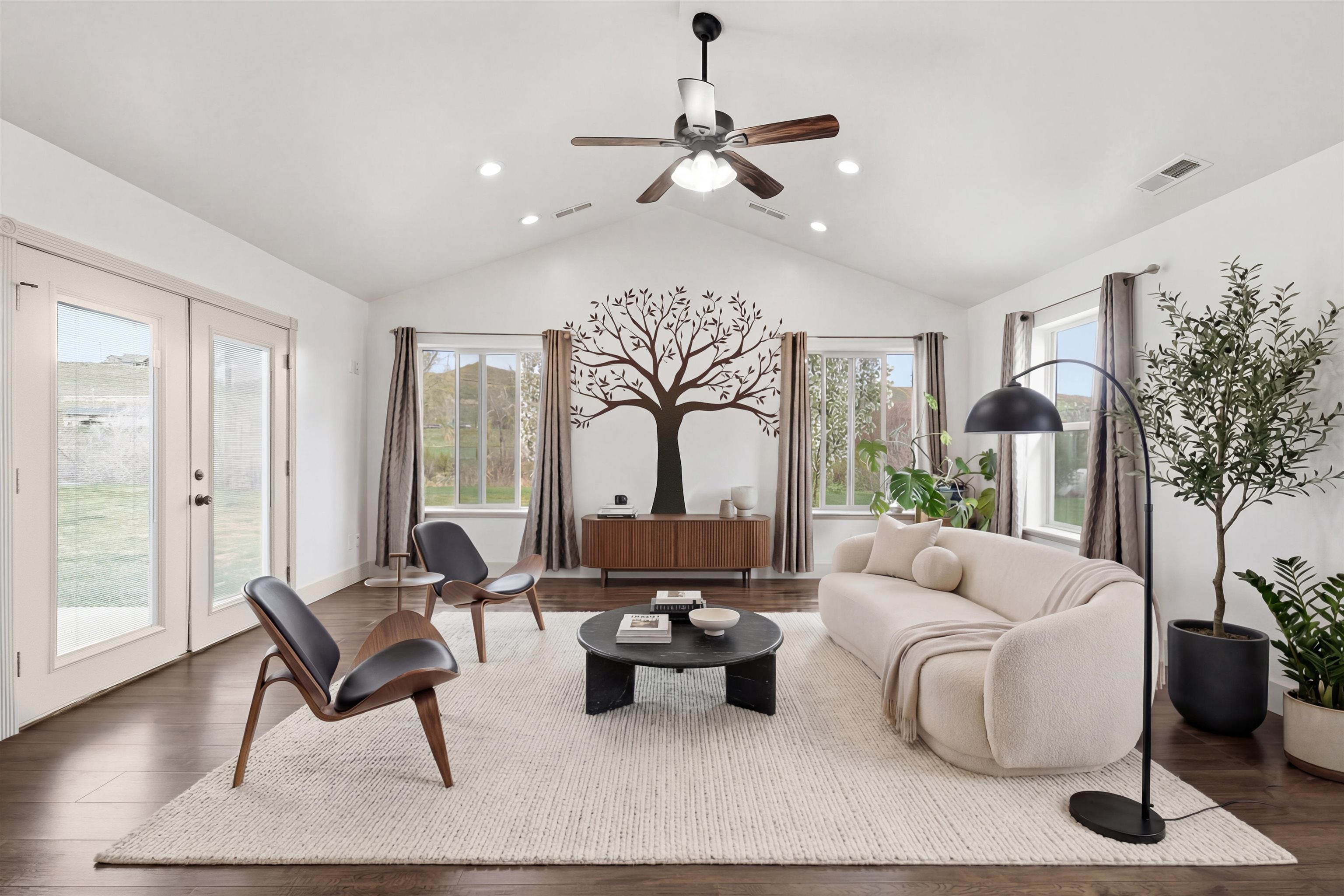 Welcome to this lovely Post Modern Cape set on just under half an acre of beautifully maintained property. Designed with both comfort and entertaining in mind, the open-concept main level features a spacious eat-in kitchen with a striking two-level center island, seamlessly flowing into a formal dining room and an expansive living room.