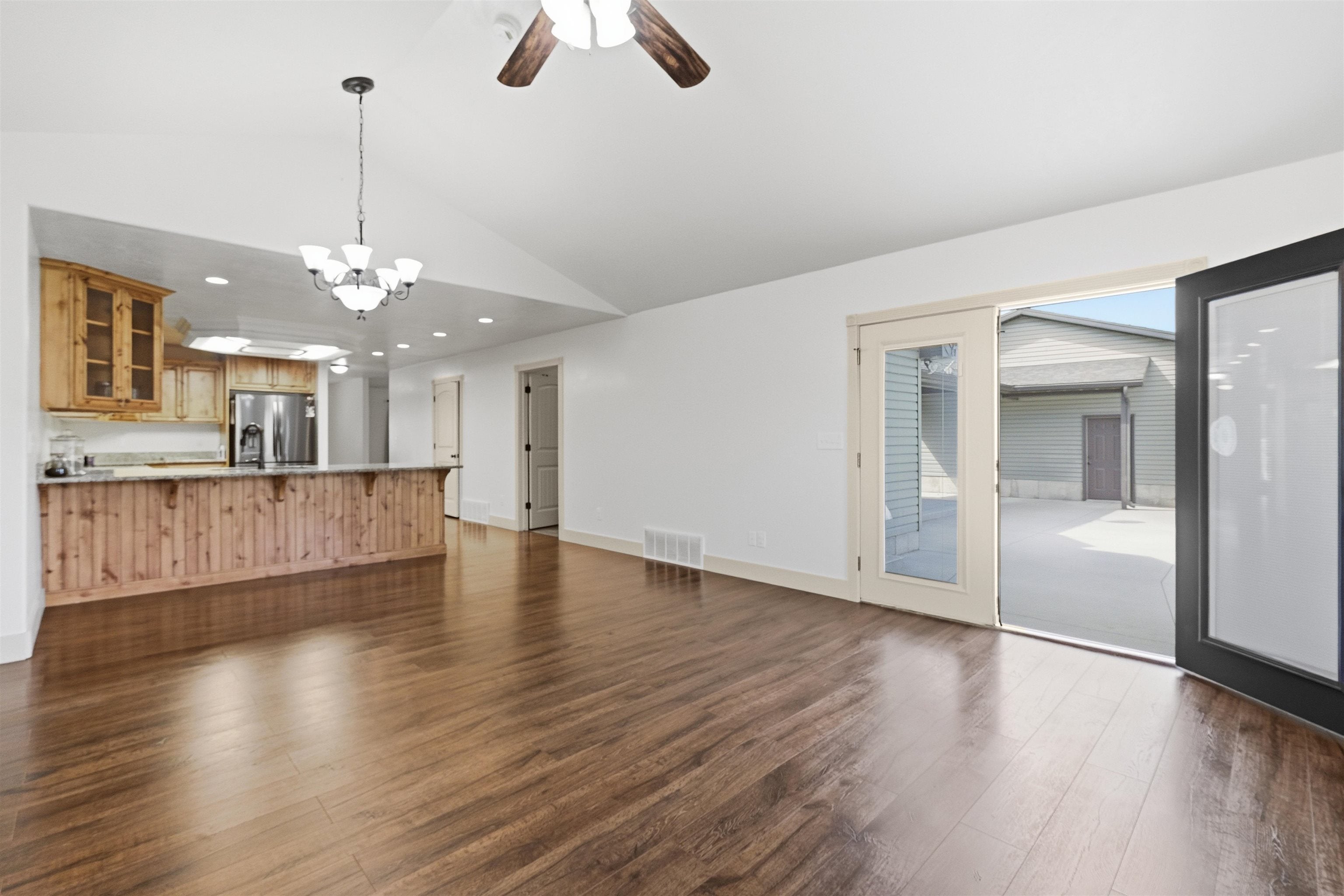 Welcome to this lovely Post Modern Cape set on just under half an acre of beautifully maintained property. Designed with both comfort and entertaining in mind, the open-concept main level features a spacious eat-in kitchen with a striking two-level center island, seamlessly flowing into a formal dining room and an expansive living room. The living area impresses with vaulted ceilings, exposed wood beams, hi-hats, and a stunning stone wood-burning fireplace, while French doors lead out to a backyard oasis.Step outside to a thoughtfully designed stone patio complete with a built-in barbecue station and a charming stone firepit—perfect for gatherings year-round. The main floor also offers two bedrooms and 1.5 baths for convenient living.Upstairs, you’ll find a versatile loft area along with two additional bedrooms, including a generous primary suite boasting vaulted ceilings, a skylight, walk-in closet, and a luxurious en-suite bath featuring a separate shower, Jacuzzi tub, additional skylight, and hi-hats. The second level also includes an unfinished bonus space with endless potential—ideal for creating another primary suite or a large recreation room.Additional highlights include hardwood and laminate flooring, custom moldings, a separate laundry room, a two-car garage, and a fully fenced backyard complete with a charming dollhouse.This home offers space, style, and flexibility—perfect for today’s lifestyle.